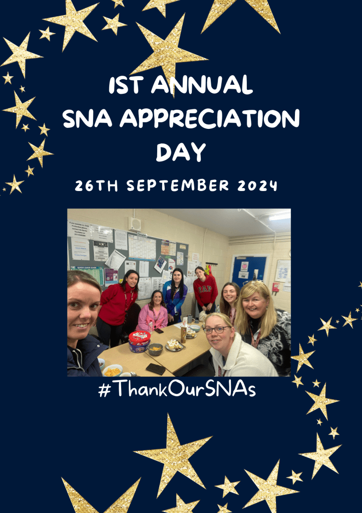In the words of our Principal Laura Walsh, “As a school, we appreciate our staff every day, but we are organising a special thanks tomorrow(Thursday 26th September) for our SNA team to support this new event.