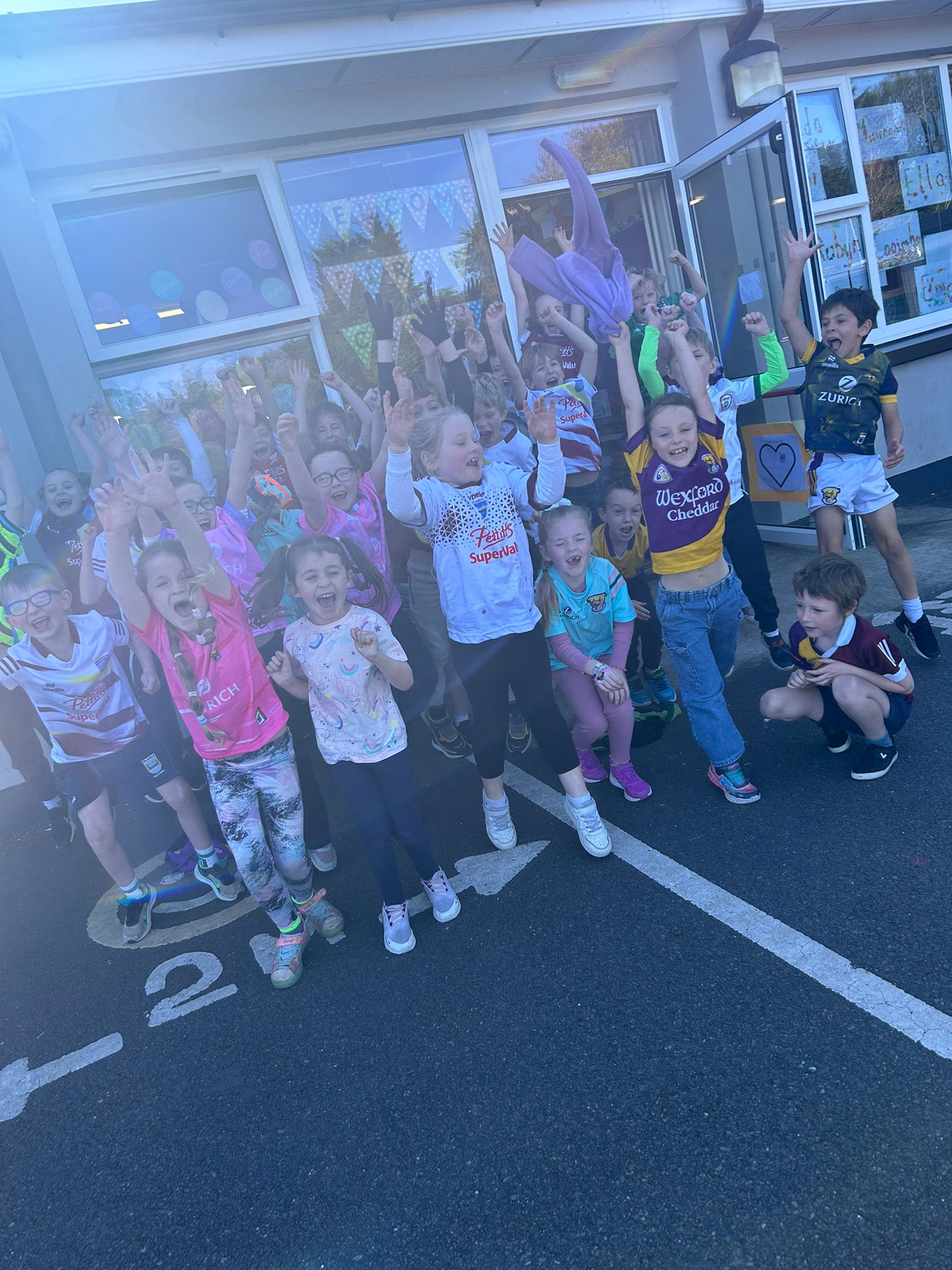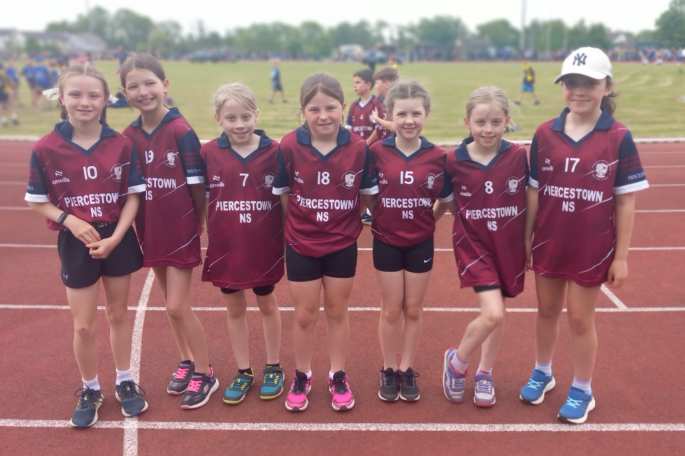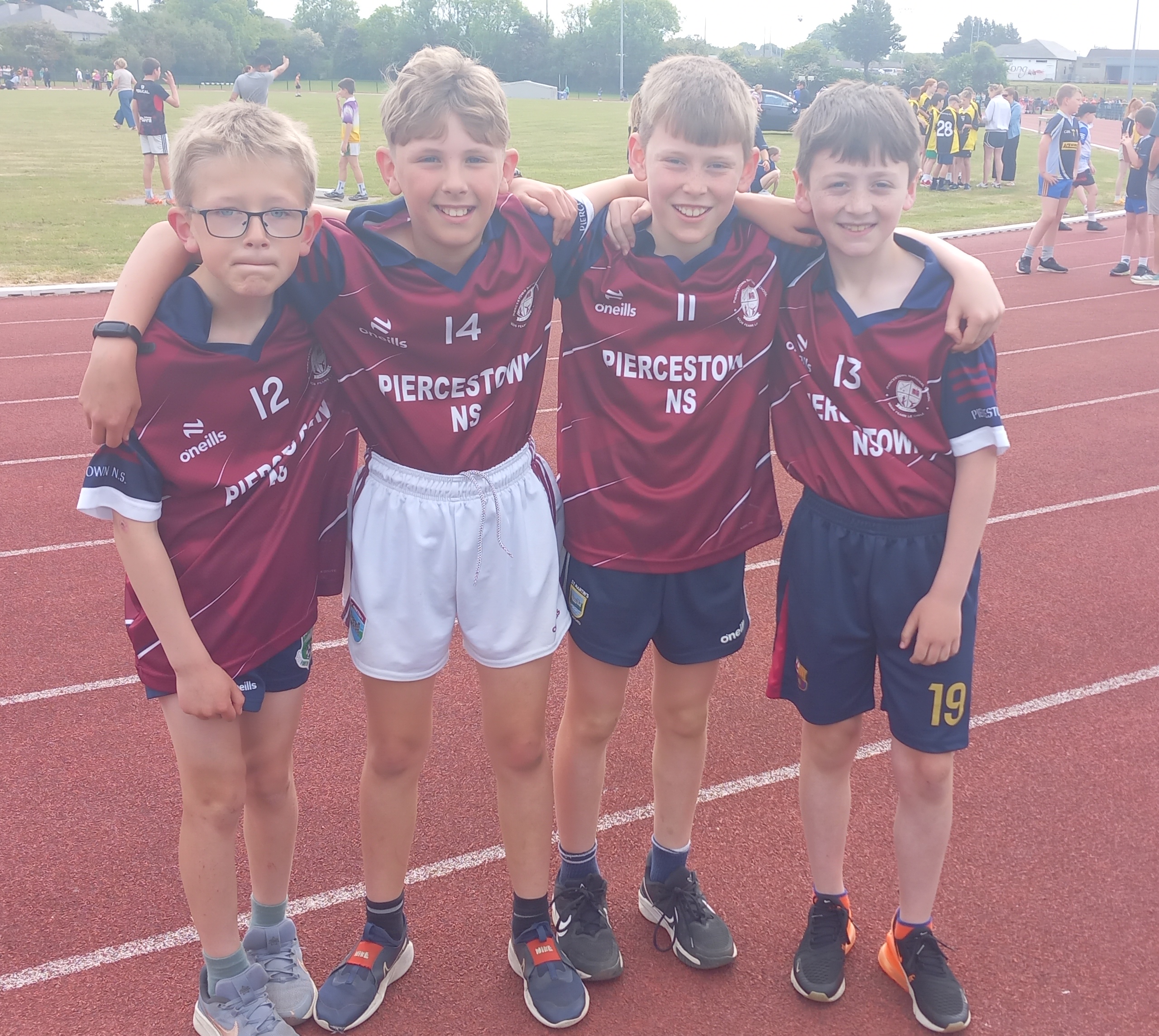 The emphasis of the day was on participation and inclusion, with about 2,000 young primary school pupils competing and representing their schools. We were well represented this year, with one of our students EVEN making it to the final stages in their events. We were glad to give the new jerseys an airing and the students wore them with pride. HUGE congratulations to all those who participated, some for the last time prior to heading off to Secondary School. Special shout out to Kate in 3rd class winning gold in the long jump, Bobby in 2nd class winning silver in the sprints and ALL of our relay teams for qualifying for the finals with the under 10 boys relaying bringing home gold medals, and under 12 boys and mixed relay teams bringing home bronze medals. Go Piercestown! Special shout out to ALL the parents for ensuring the children could attend and to Ms. Lyttleton and Mrs. Newport for ensuring everyone was safe, happy and present at the starting whistle for all events.