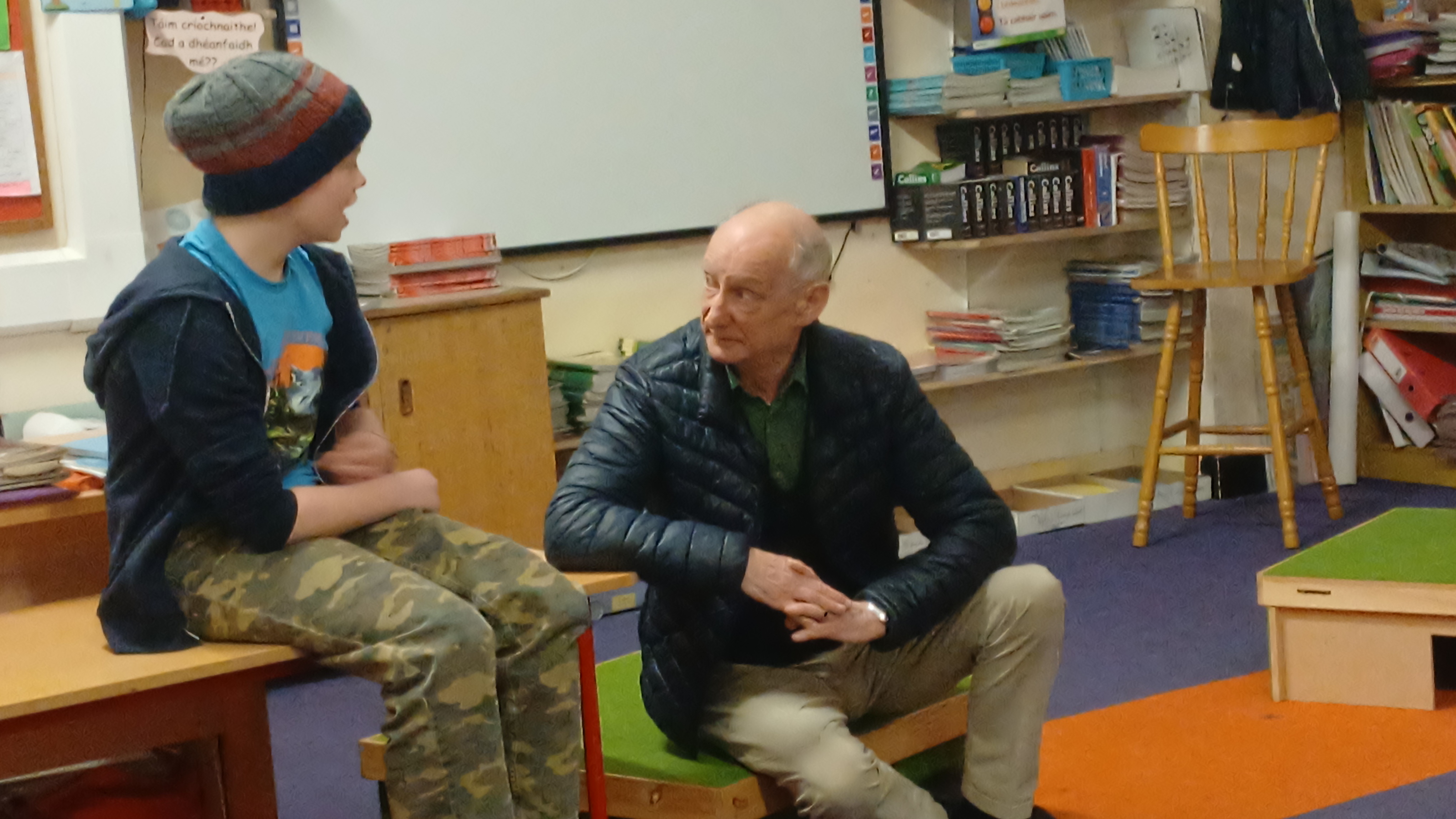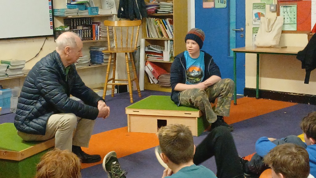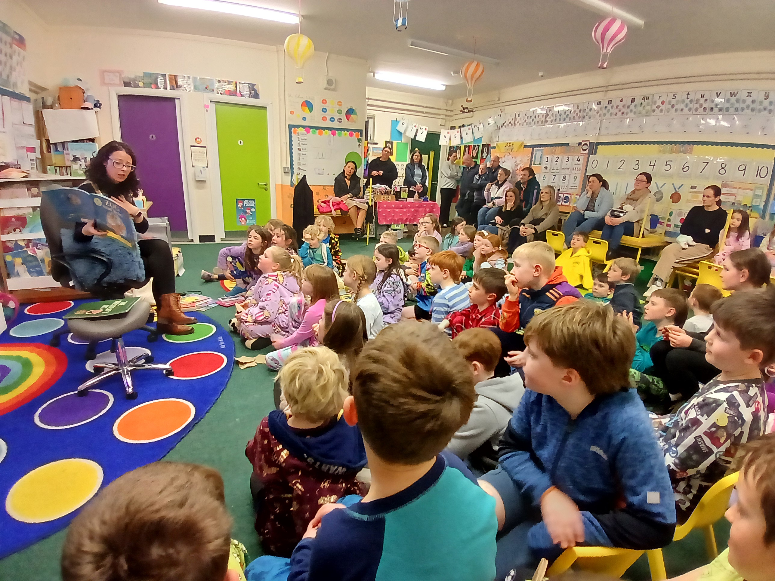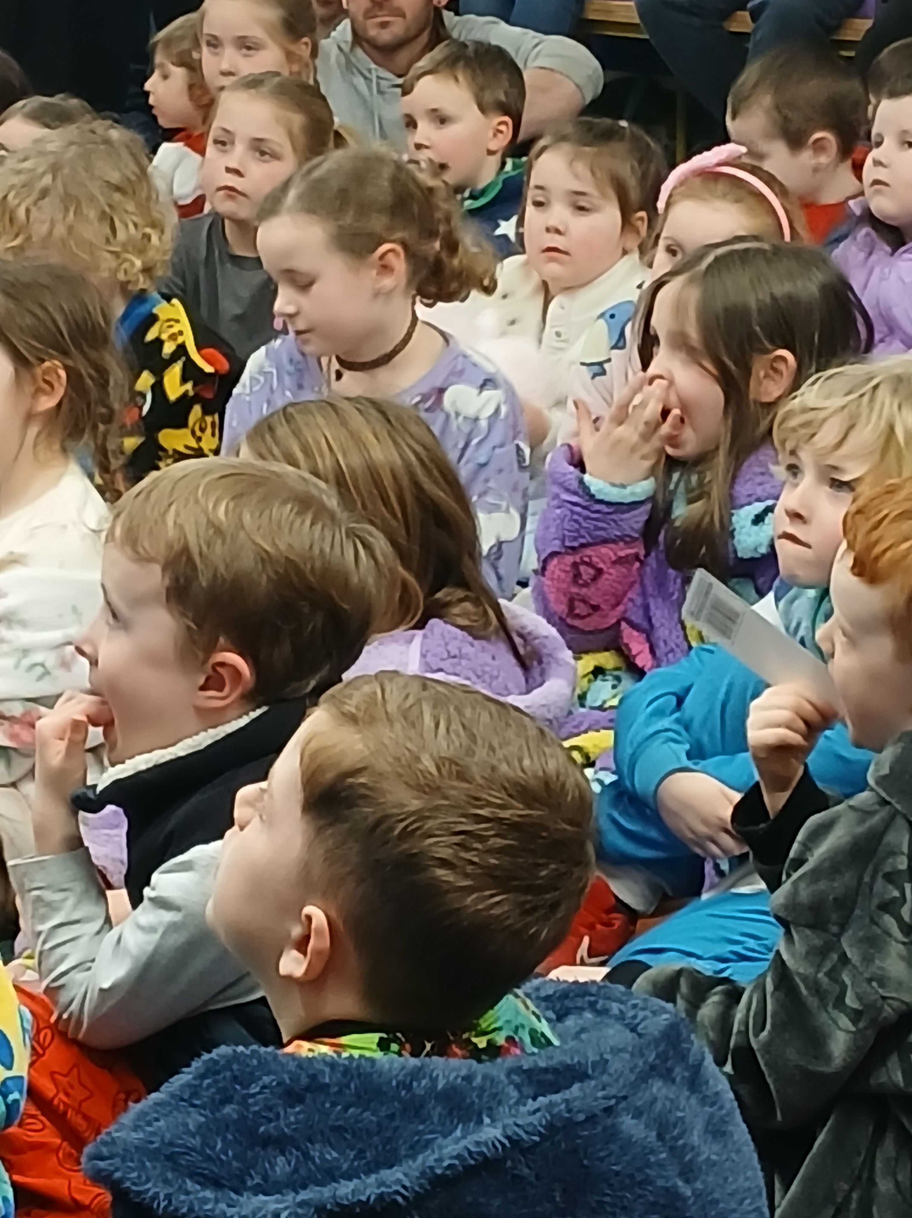 One of the most enchanting parts of the night was the storytelling sessions. What an absolute treat it was to have the children turn up, ready for bed, in their pyjamas and to have the wonderful Olga Conway read them their bed-time stories and Billy Roche to entertain them with his magical words! Ms. Walsh greeted everyone and presented them with their lucky envelopes, four of which contained the golden tickets! Jack in Junior Infants was thrilled for brother Harry and Nora in 2nd class, Cara in 4th, Ciara in 5th were delighted with their wins. Then it was over to Olga. Her ability to captivate an audience with a simple story is truly a gift. The students were enthralled and the parents were happy to hand over the hard work to her for a night…although they might have to up their story telling game going forward. The senior classes were also treated to a snippet of the wonderful play ‘Belfry’ that was brought to life by Billy Roche himself and his equally talented grandchild, and our very own, Lily Fox. Lily’s peers watched on in awe and their wasn’t a dry eye amongst the adults and staff present.