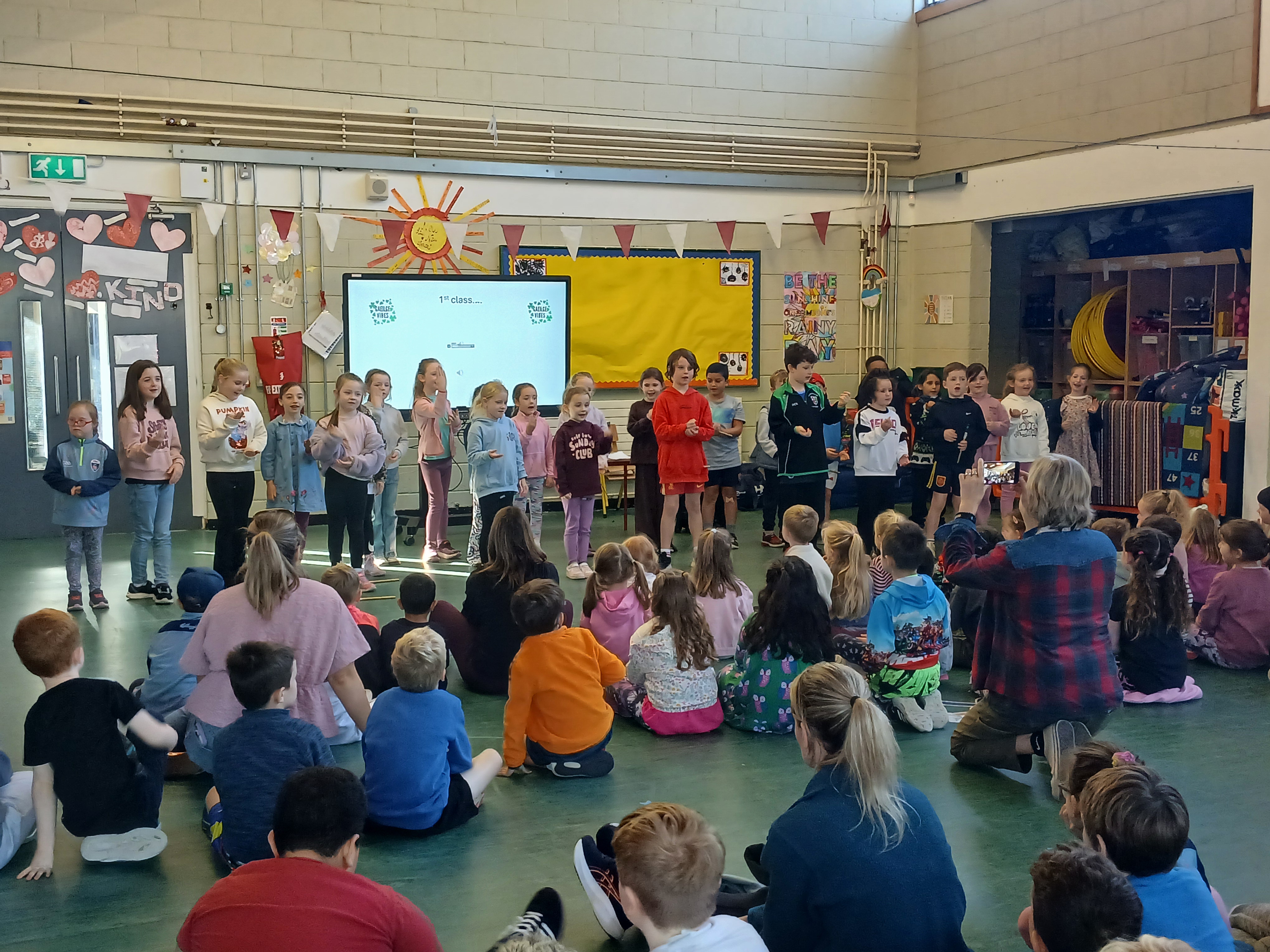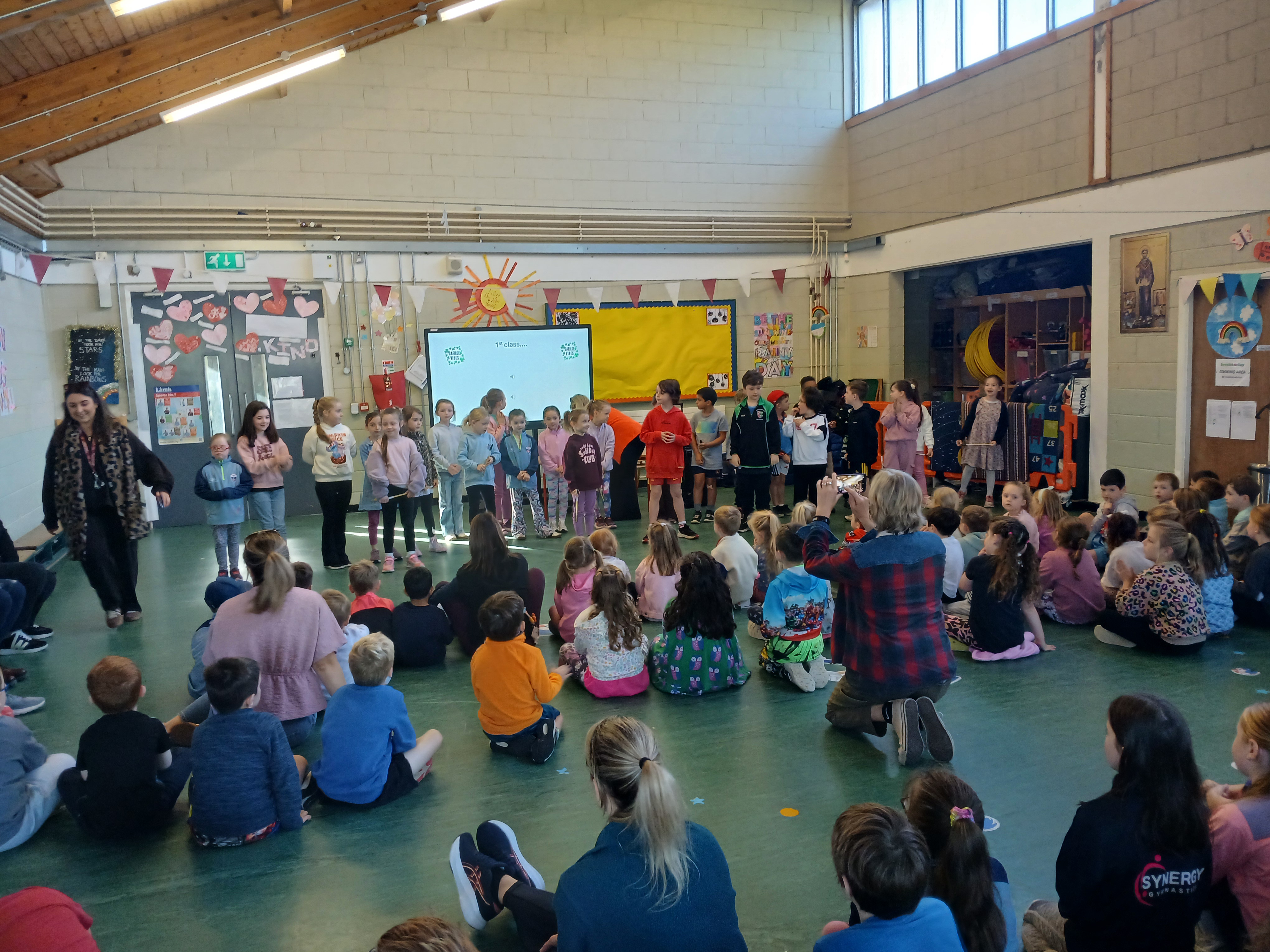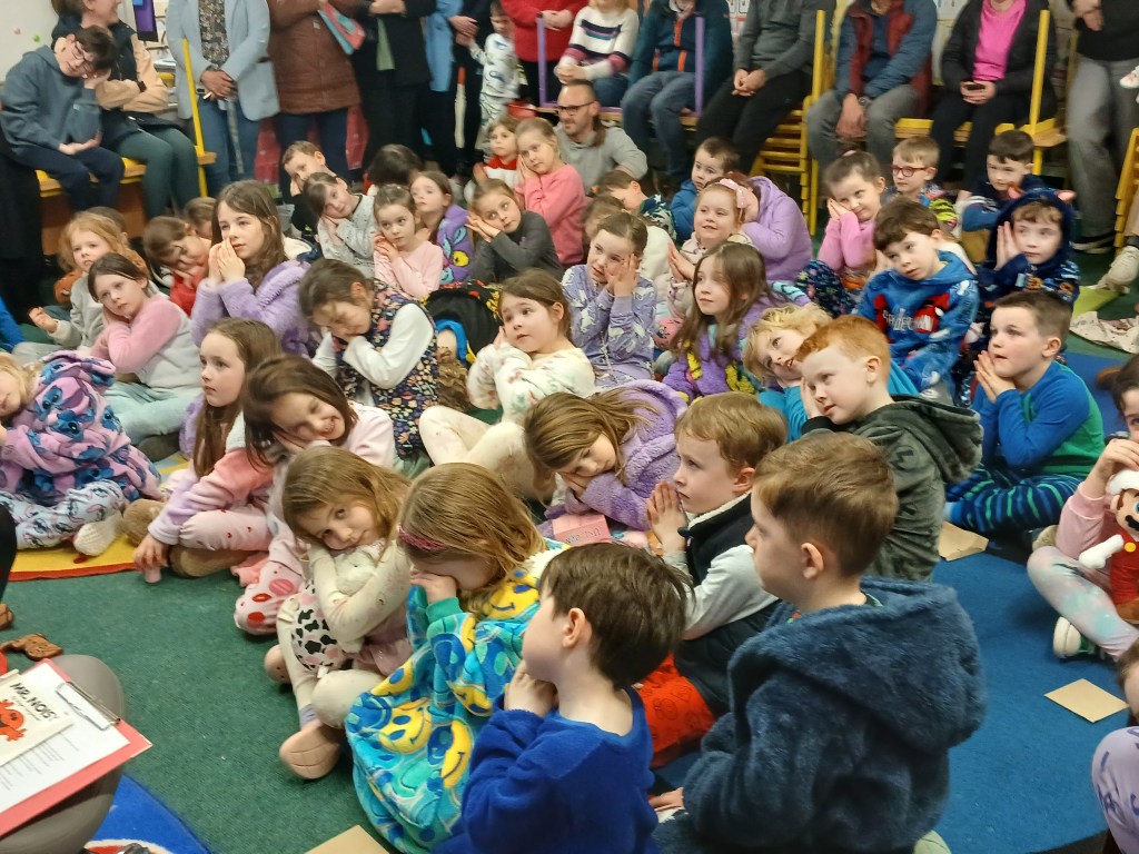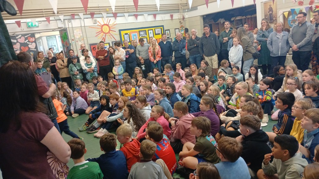In October the Junior Infants and 5th Class presented! There was great craic with the infants demonstrating their knowledge of the body parts, singing two songs and playing a game. 5th Class kicked off the festive season with a Halloween song. Well done to all. We were extremely proud of the knowledge and presenting skills. We can’t wait to see what the rest of the classes have in store.