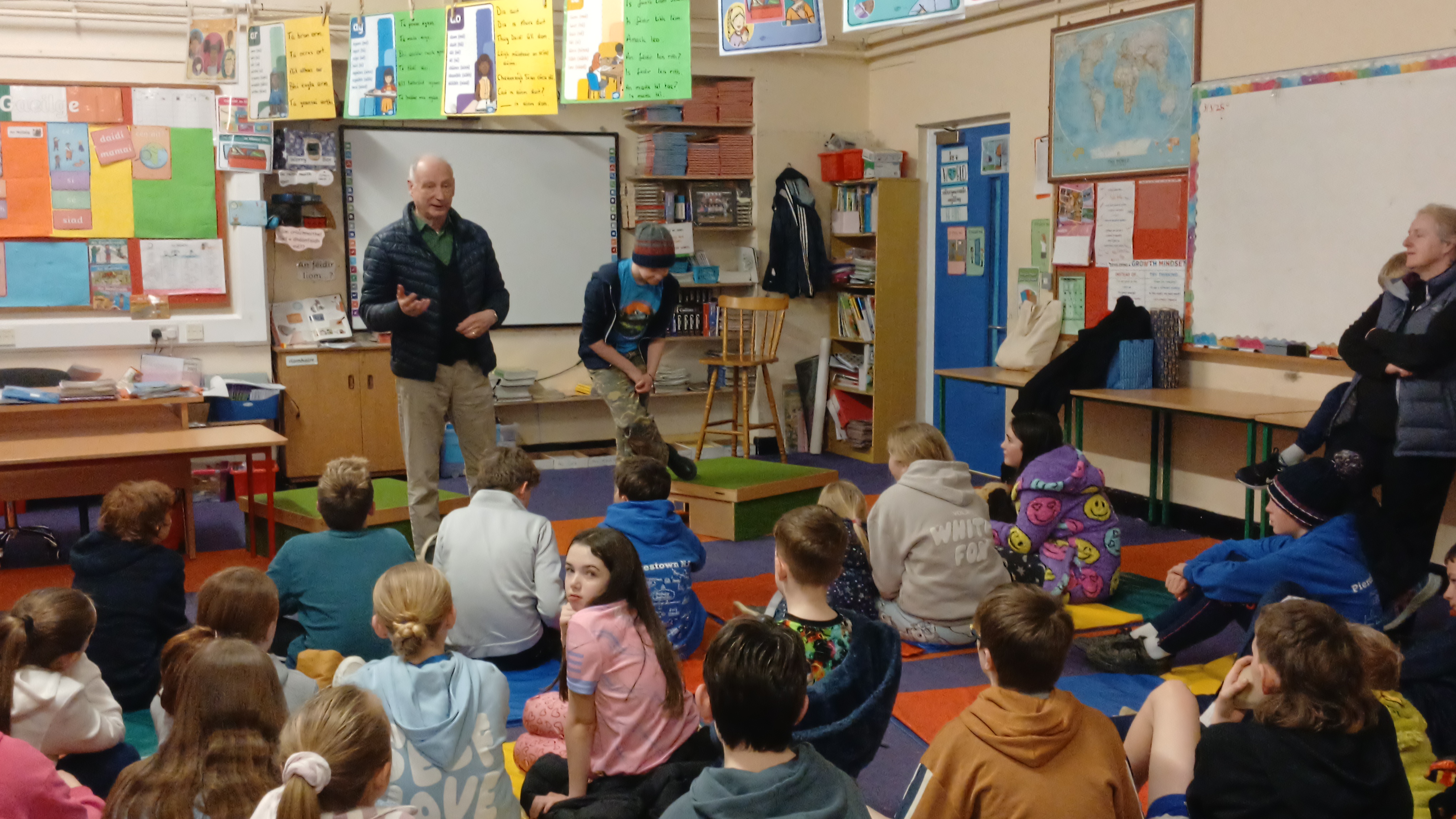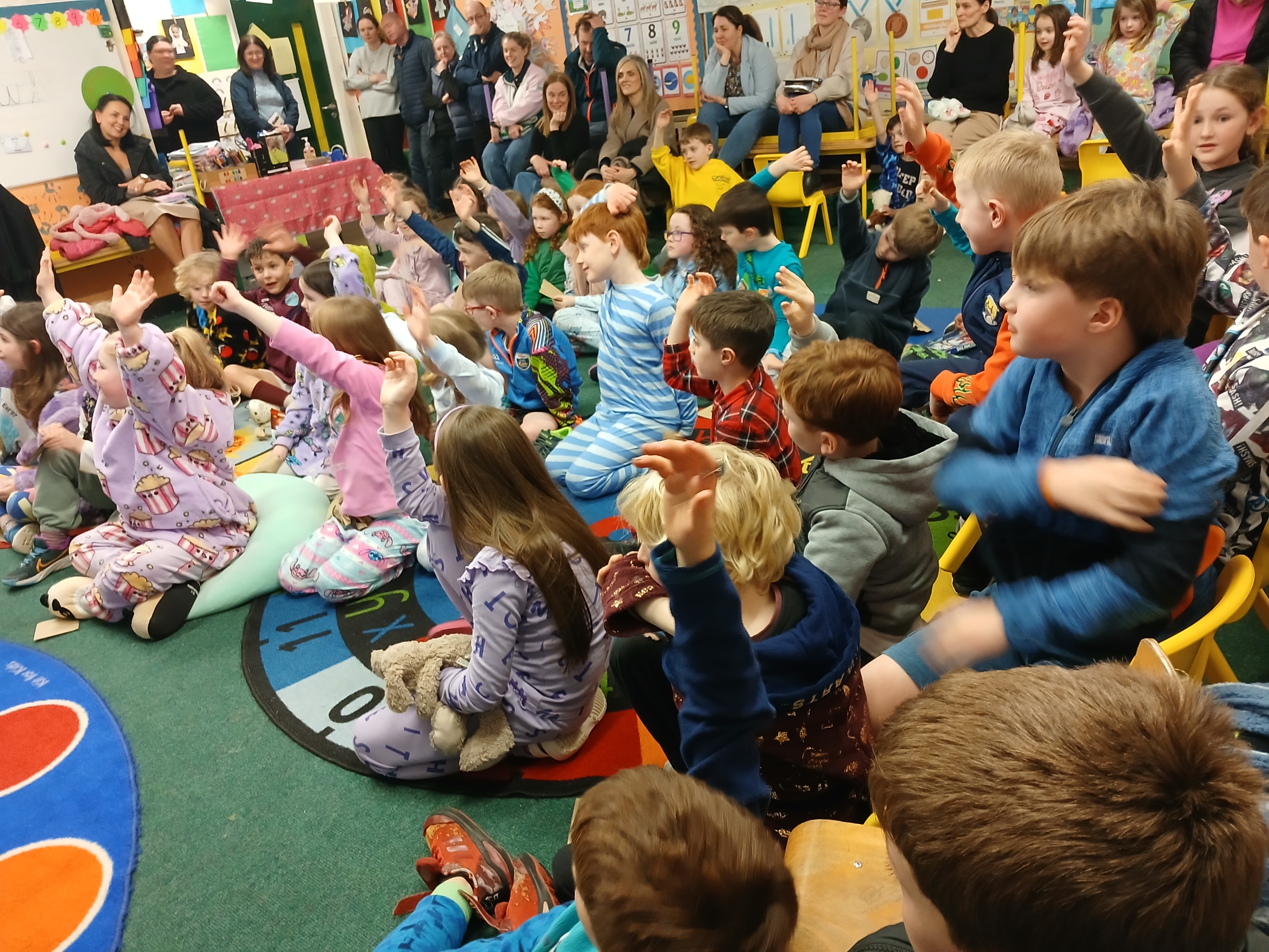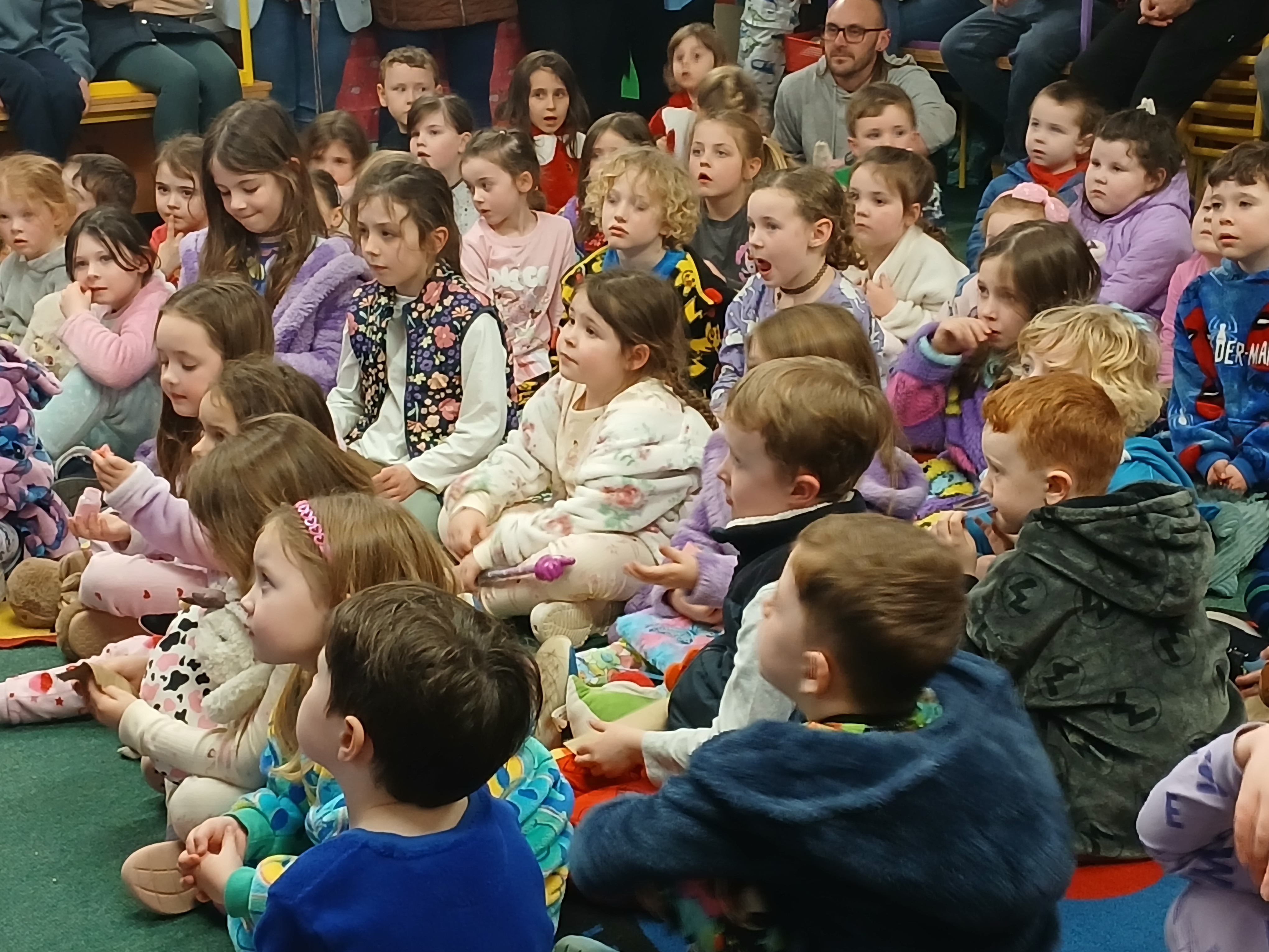 In October the Junior Infants and 5th Class presented! There was great craic with the infants demonstrating their knowledge of the body parts, singing two songs and playing a game. 5th Class kicked off the festive season with a Halloween song. Well done to all. We were extremely proud of the knowledge and presenting skills. We can’t wait to see what the rest of the classes have in store.