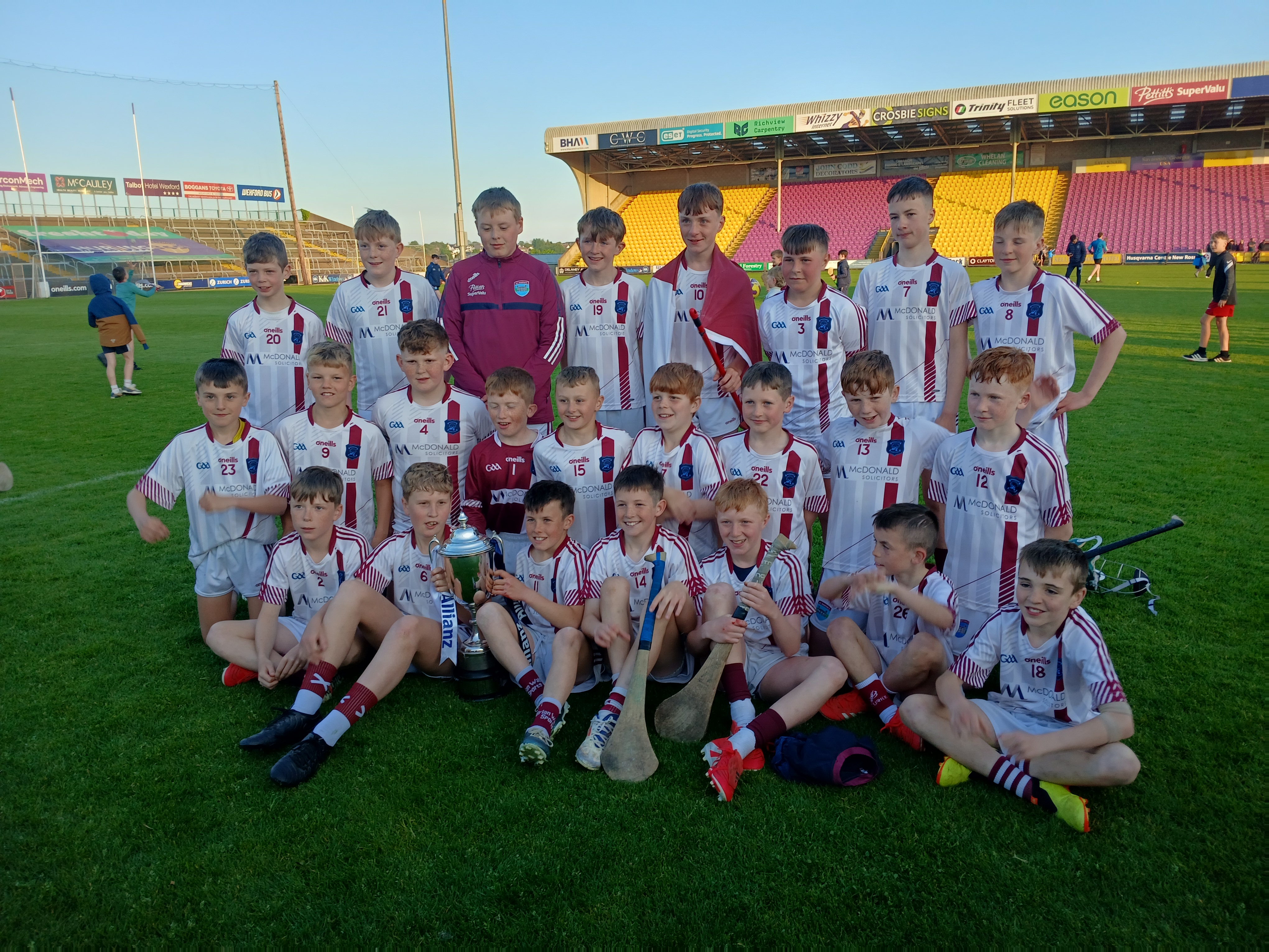 It was a 46th-minute goal from Barry O Connor that helped lift the maroon and whites to their first Pettitt’s Senior Hurling Championship crown since 2019! Only fitting, so, with 21 of the 35 players being past pupils, that they make their way into Piercestown National School, where the love of hurling began under the guidance and support of Ms Hearne, to celebrate in style! The team were welcomed with open arms by Ms. Walsh and with rapturous applause and cheers from the boys and girls. The school hall was awash with flags, banners and jerseys and ‘We are the Champions’ wafted through the corridors. The long awaited cup was lifted and cheers rang out. Speeches were made and the students quizzed the team on the highs and lows of the day and looked for pointers in how to be a sporting hero like them.