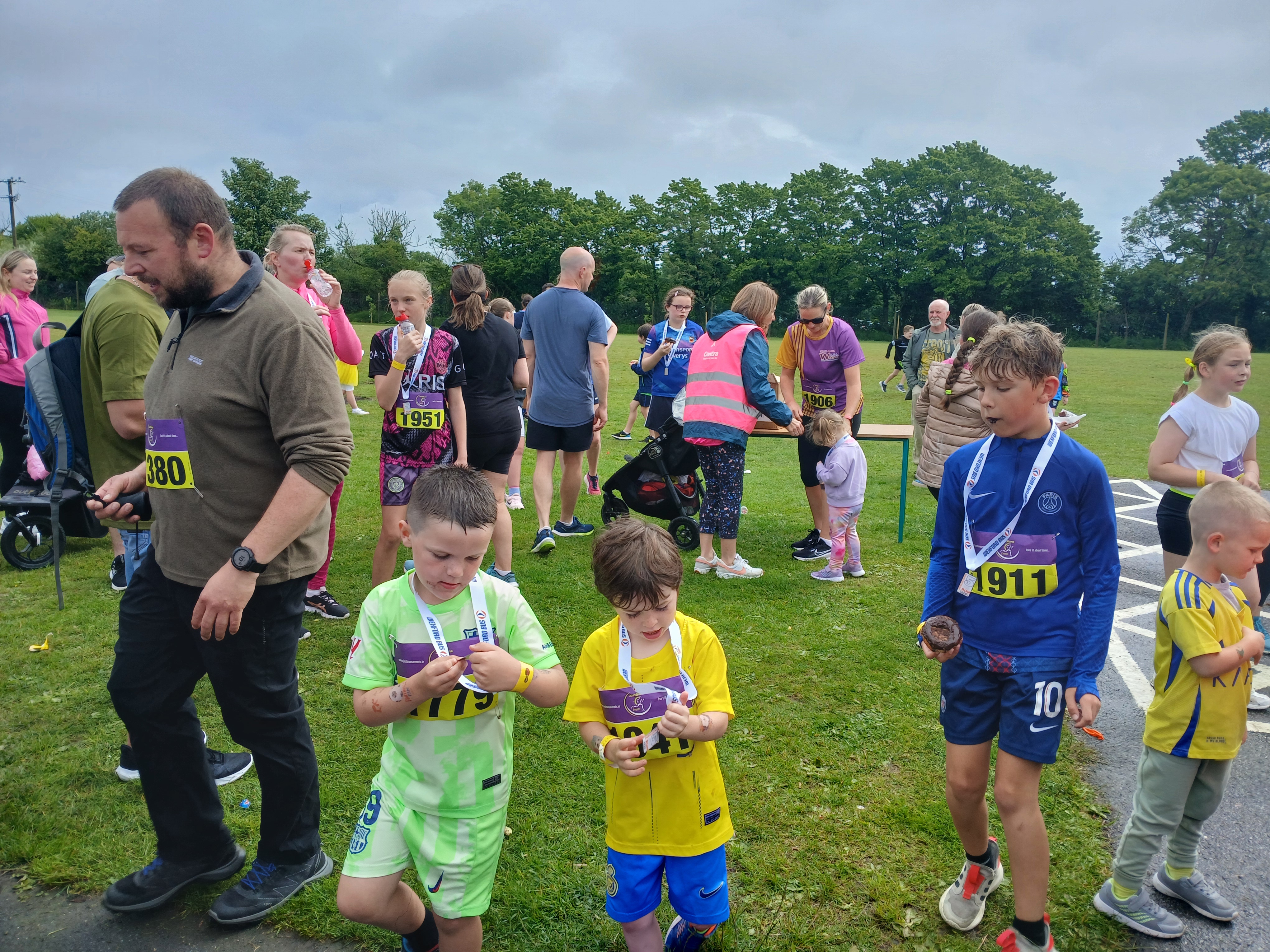 It wasn’t long before the medals needed to be prepared and just as the first runner approached the finish line, the rain eased, and cheers erupted. Congratulations to Jack Butler, who powered through the course to come in first place—an amazing achievement! It wasn’t long before the rest of the runners came in, one after the other, all greeted with proud applause and big smiles.