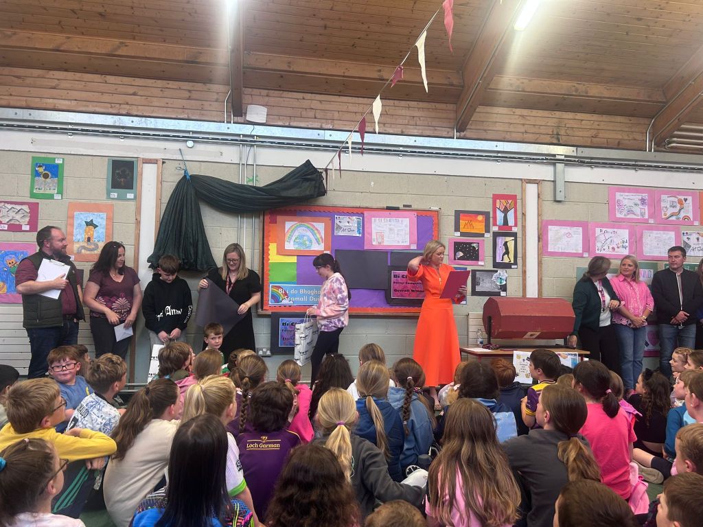 We also took time to celebrate all the September and October birthdays—a big “Happy Birthday/Breithlá Shona” to everyone who blew out candles recently! We hope you all had a fantastic day. Finally, we revealed our Class of the Month. While there were no winners from the junior end this time, a big congratulations goes to Third Class, who took the crown this month for their hard work, teamwork, and excellent behaviour. Keep it up!