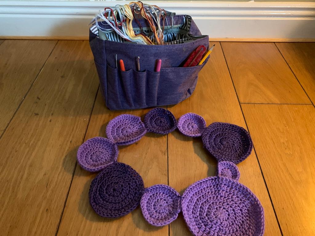 She has aptly named it ‘Together but Apart’ which is very appropriate to our current situation! Note her purple sewing bag to tie in brilliantly with Purple Day!