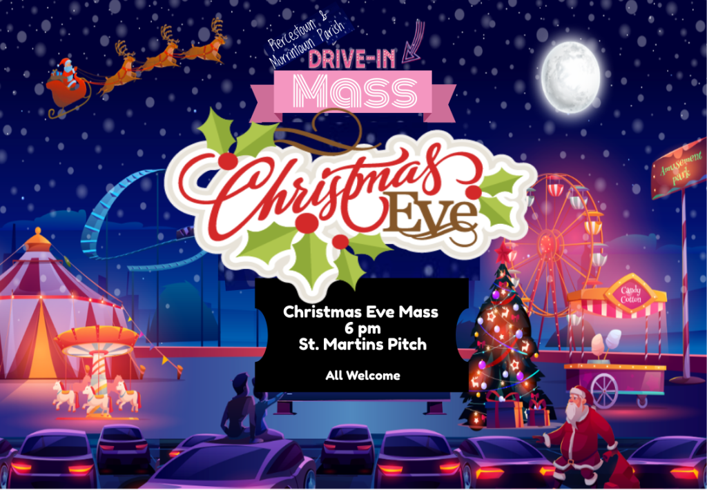Christmas ceremonies are among the most important ceremonies in the church year. Unfortunately this year, under Covid 19 restrictions, there will be a limited number of people allowed to enter the Church to attend Mass. Because of this Fr. O’Reilly will celebrate a Drive-In Mass on Christmas Eve at 6pm in St. Martin’s pitch. This will allow more people from the communities of Piercestown and Murrintown to come together to celebrate the birth of our Lord. It promises to be a very special event and all are invited to attend. We look forward to seeing there!