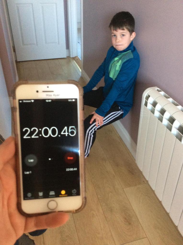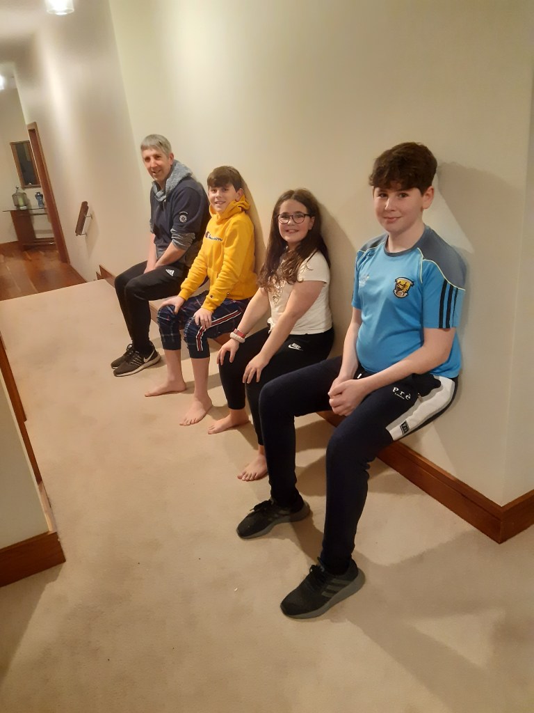 Congratulations to everyone who took part in our weekly exercise initiative again this week. It was great to see so many pupils out moving around safely in their area all with a smile on their faces. The activities are all about keeping us connected and smiling through these weeks. This week saw our families take on our team leaders and elite sport stars in a wall squat contest. The tremendous effort involved was amazing to see by all who took part in it. Special mention to so many pupils this week from our own school and others. So a huge bualadh bos for Katie Stamp (1st Class), Donagh McGee (1st Class), Rory O’Connell (2nd Class), Dawn Bradley-Jugessur (5th Class), Sarah O’Mahony (6th Class), Shane Ryan (Team Ryan) and Tommy Hearne (Team Hearne) for their amazing times this week. Our fittest family this week was The O’Mahony family who on average racked up their family wall squat time of 11 minutes and 52 seconds. This week we are also introducing a most creative photo category with the prizes this week going to The Devereux family for their amazing family shot of 4 wall squats on top of each other and The Crosbie family for their dog assisted squat. Thank you for all who took part and look out for tomorrow’s new weekly challenge on the blog too and throughout the week as some new sport stars take part in our challenges. Prizes will be announced at the end of our competitions.
