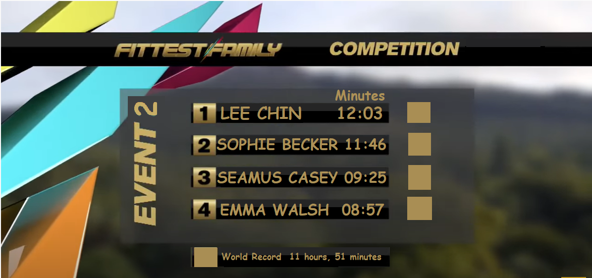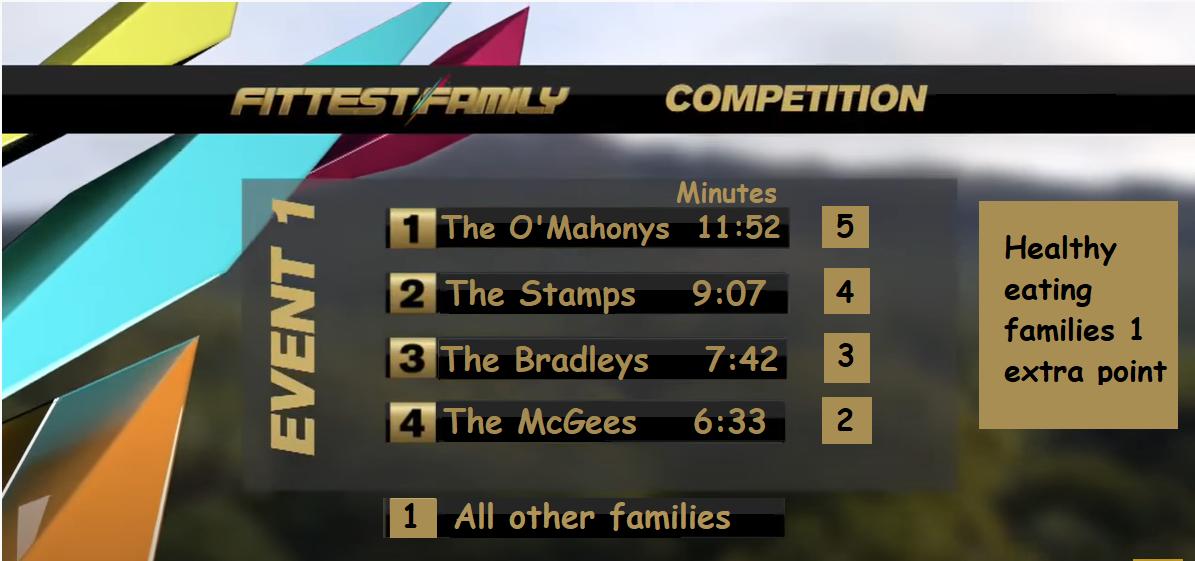 Welcome to week 3 of our Fittest Family competition. This week we have a load of new exercises for you to try over the week along with a brand new challenge as well as some new celebrities to try and beat. This weeks extra challenge is all about getting out and taking a photo with your family outside in the fresh air. Keep those photos coming in and best of luck. Don’t forget everyone can join in the fun at any part.