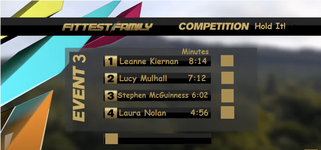 Continuing on this week has seen some more of Ireland’s finest sport stars getting involved in the community spirit of Piercestown National School by taking part in this weeks challenge ‘Don’t Bottle It.’ We were honored this week to welcome West Ham and Ireland ace Leanne Kiernan, current Ireland rugby 7’s captain Lucy Mulhall, Bohemians FC and Ireland underage goalkeeper Stephen McGuinness and Dancing with the Stars Laura Nolan to take part and try outlast our Fittest Families and leaders this week. They again have set the standards extremely high this week and have definitely posed a challenge to our families. Has your family got what it takes to take on and beat the elite?