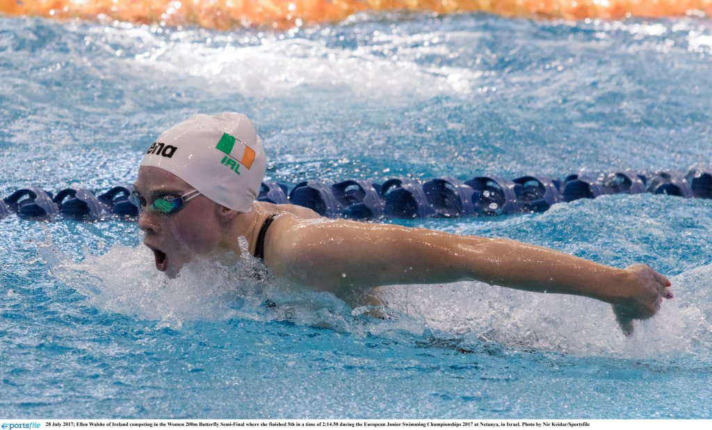 28 June 2017; Ellen Walshe of Ireland competing in the Women 200m Butterfly Semi-Final where she finished 5th in a time of 2:14.50 during the European Junior Swimming Championships 2017 at Netanya, in Israel. Photo by Nir Keidar/Sportsfile