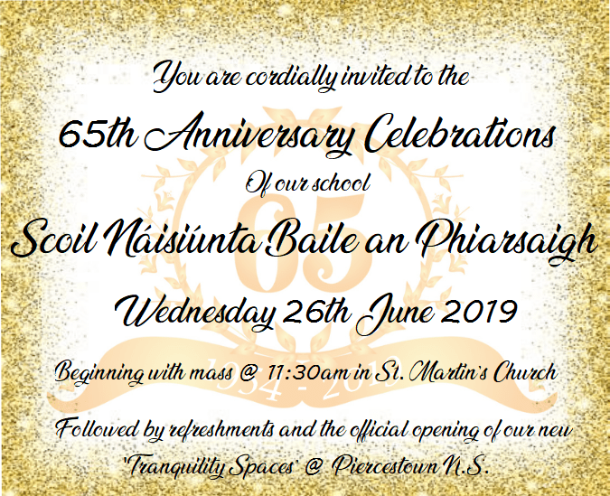 Awards and Achievements 65th Celebrations in Piercestown NS A Celebration of Our School Building 1954-2019Read more Share this: Share on Facebook (Opens in new window) Facebook Share on X (Opens in new window) X Like Loading... 1 2 3