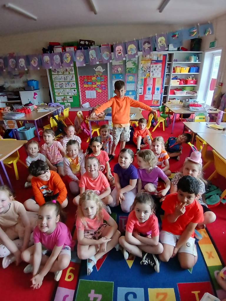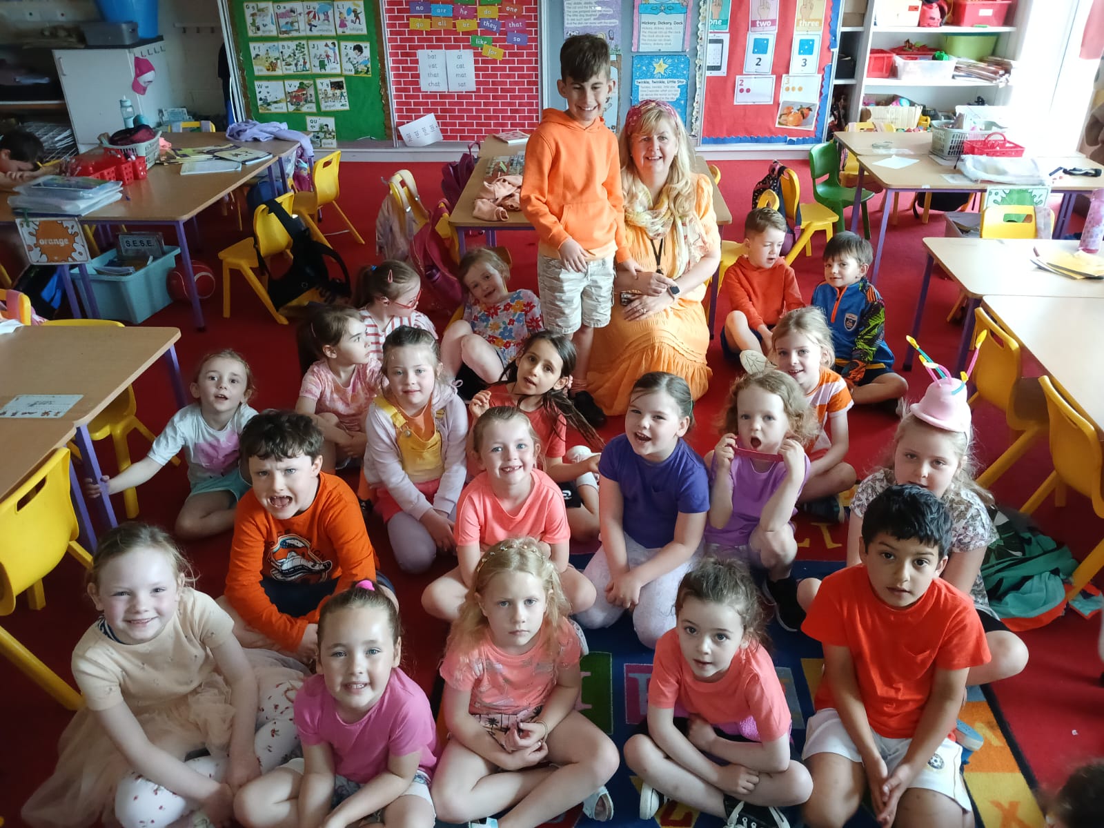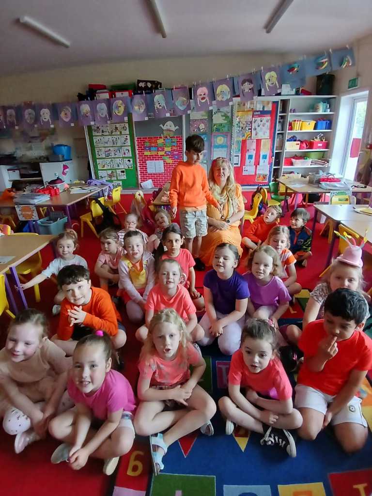 On Thursday 26th May Piercestown NS celebrated Orange Day (May 27th) to raise awareness of Prader-Willi Syndrome. The boys and girls of Senior infants went all out and we wore orange, ate orange treats and painted and coloured orange themed art. Teresa decorated the classroom with an array of orange balloons and we thoroughly enjoyed the day while learning more about PWS.