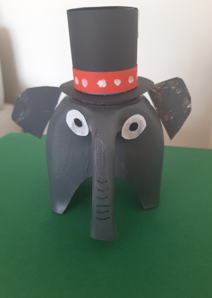Here is an elephant made from the milk carton by Seán in 2nd class! Isn’t is fantastic. Great work Seán.