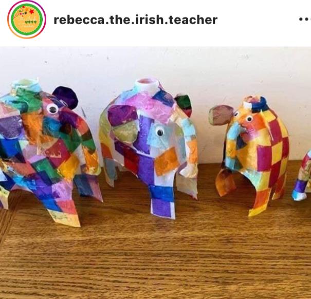 Our Junior activity for the next few days is ‘Create Elmar the Elephant from a milk carton’