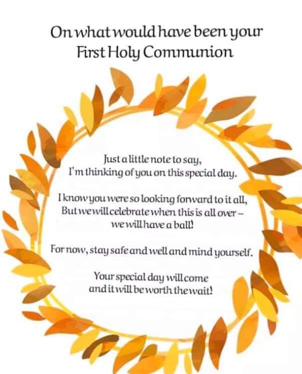 I want to give a very special shout out to one group in particular this week, that of Mrs. Corrigan and her 2nd class boys and girls. This week in school would have been one of great excitement, practice, rehearsal, video shoots and preparation. But above all, a week of building special memories. 2nd class you have been brilliant in your continued preparation during our school closure when we had no certainty with regard to school re-opening or remaining closed. You continue to follow Mrs. Corrigan’s work and participated in Fr. O’Reilly’s Holy Thursday ‘Do this in Memory’ mass via the webcam. Your commitment and hard work is to be commended. We are thinking of you all this week and especially as we get closer to Saturday. But remember, by staying at home you are saving lives. Our special day has unfortunately been postponed but upon our return to school we will finish the excellent work that you had started and celebrate your special day, like never before. Boys and girls, it will be worth waiting for. Myself and Mrs. Corrigan continue to liaise with Fr. O’Reilly re: a new date and as soon as a date can be confirmed we will be in touch with your families. For this week, try to not be too disappointed.