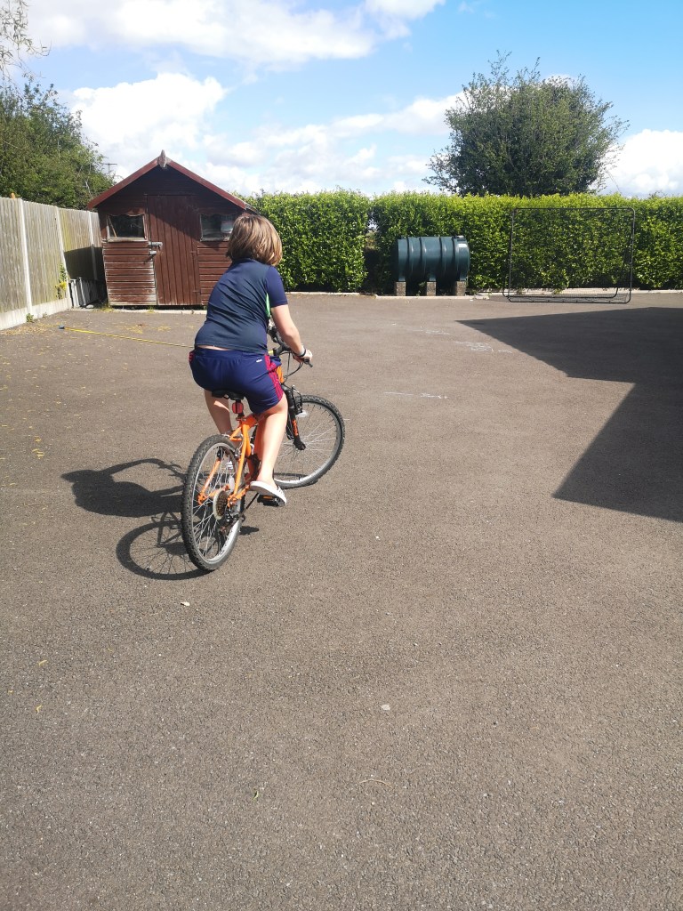 The slow bicycle challenge was a REALLY tough one and huge well done to all who entered….. the winner for making the best effort to travel in a straight line as slow as they could was….Riley in 5th class for beating Bryan. Well done Riley with a time of 38.20 seconds.