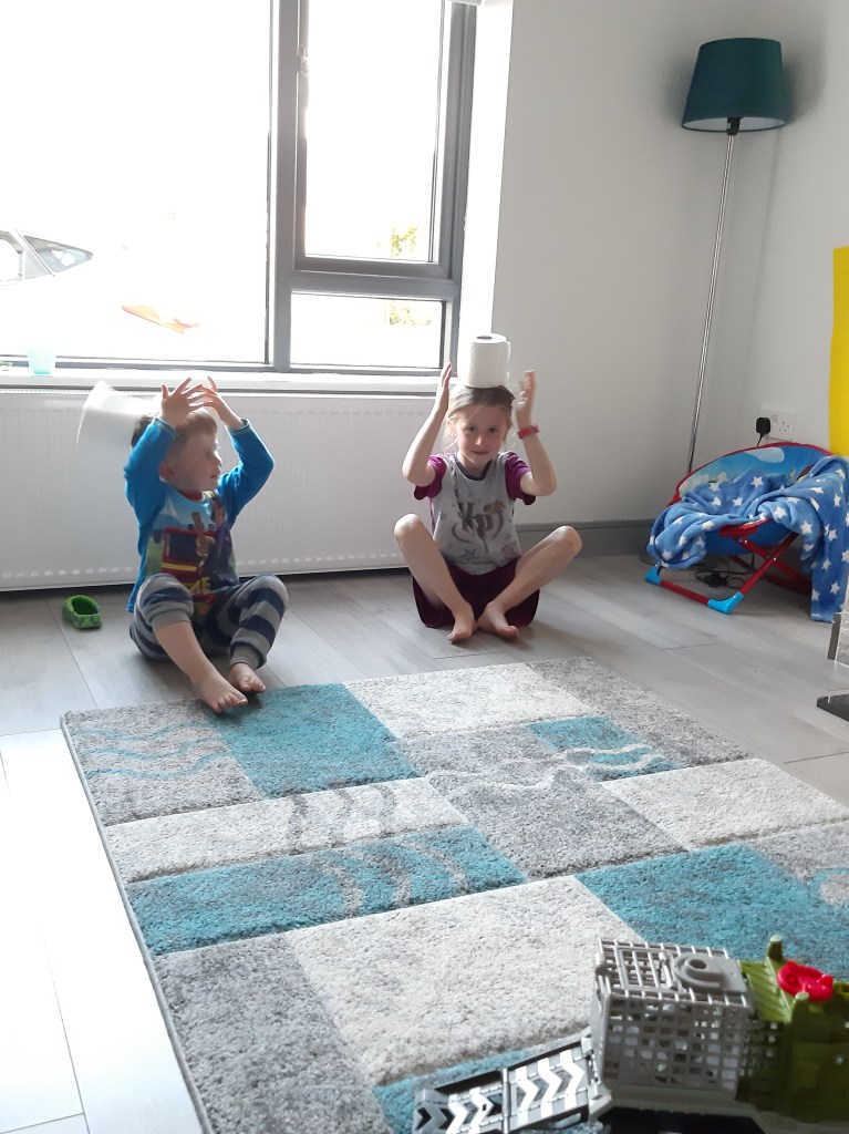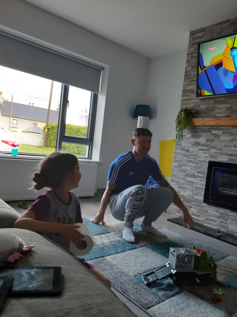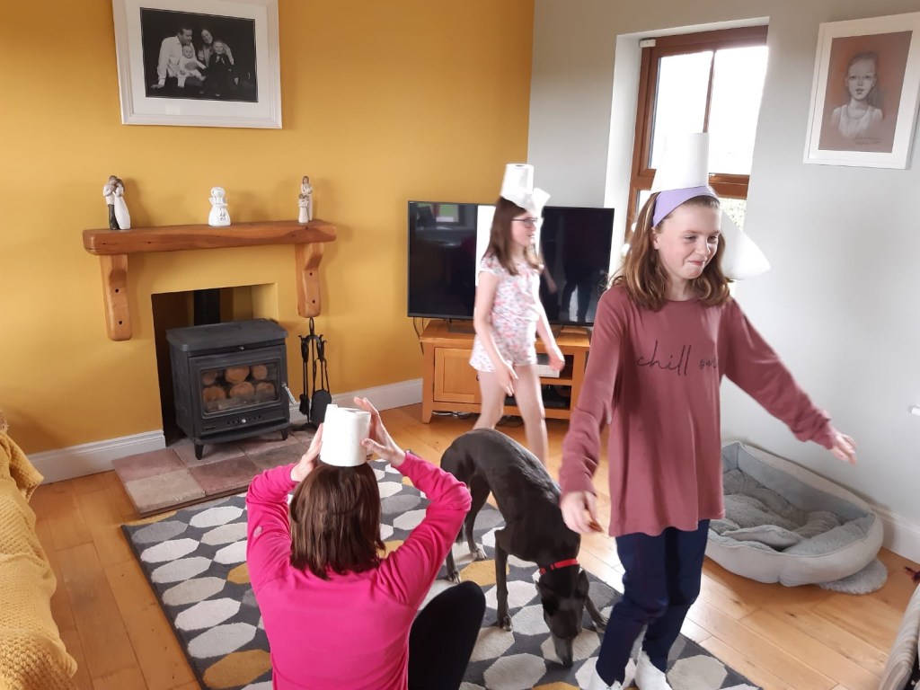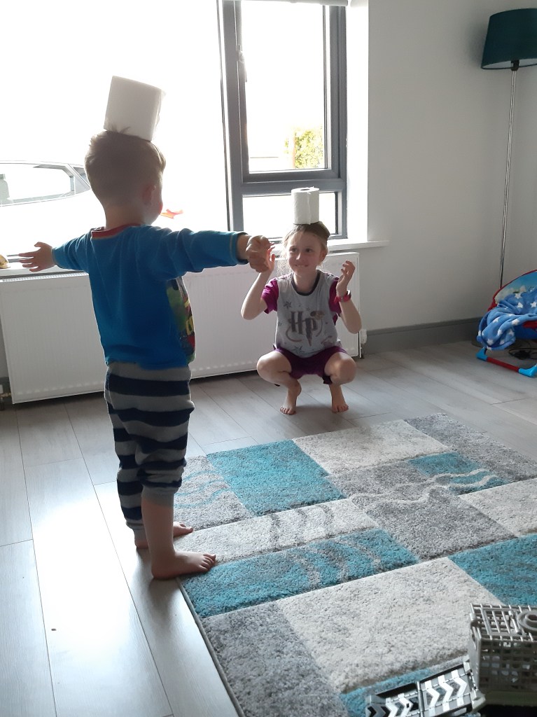 And the PARENT AWARDS today for stamina, determination and beating both staff members are Brendan Roche, Dad of Kate and Cora for his score of 12 in the ‘Keepy Uppy with a Toilet Roll ‘Daily Challenge and Chloe and Emily’s mam Suzanne Connolly for her amazing score of 24 (throws and catches while getting up and down) in 1 minute in the Lunchtime Athletics ‘Throw and Catch Challenge’. I have no doubt from video evidence that the support Suzanne received from Emily and Chloe during her efforts drove her on! Well done to Brendan and Suzanne, our worthy winners for today!