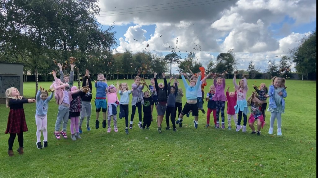 What a fun month we have had in October! The start of the month saw the return of our taster week with ‘Food Dudes’. The children explored and tried new fruits and vegetables, even if they thought they didn’t like them, they gave it a try! We visited the church for the first time with the whole entire school and performed our ‘Monday Morning’ song at the top of the Alter. This was great fun, the children enjoyed it so much that they even asked could they do it again! We had an amazing Maths Week this year, from maths trails to maths quizzes in the hall. With our maths eyes, we explored at home and found lots of maths in every day things like shapes and numbers to the time on our clocks. First class completed, for the first time, BINGO over Zoom with Miss Walsh as our BINGO host- This was so exciting!! Take a look at our October Movie!