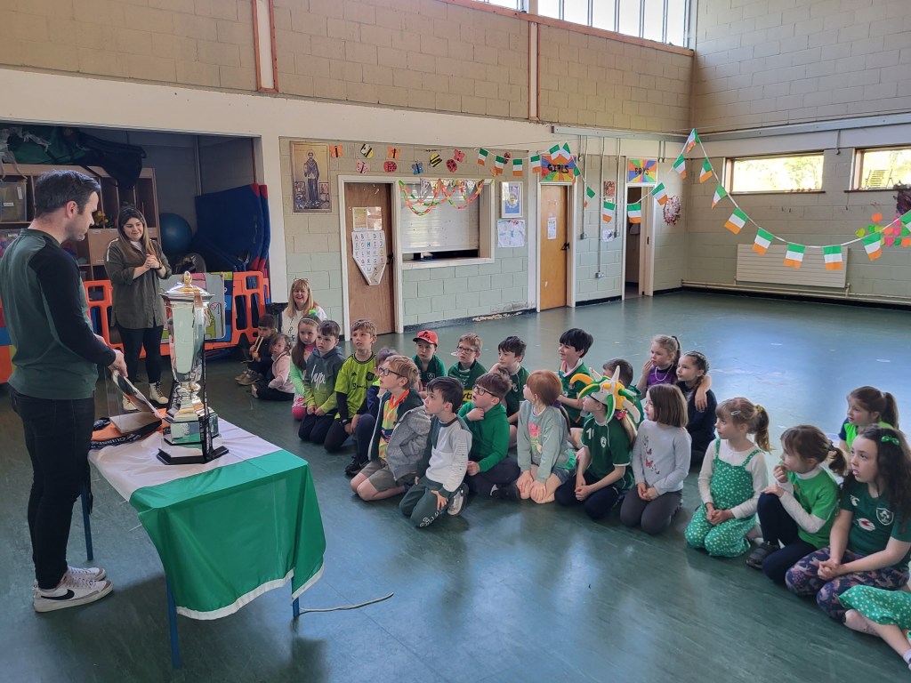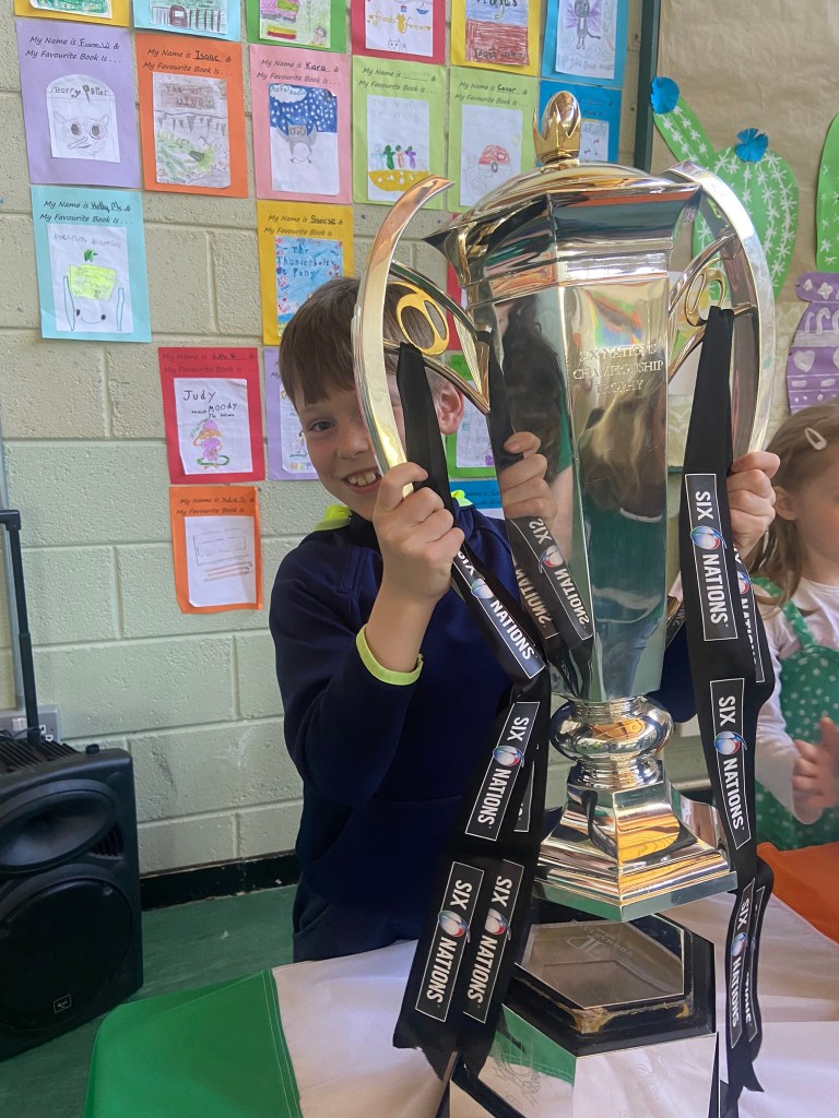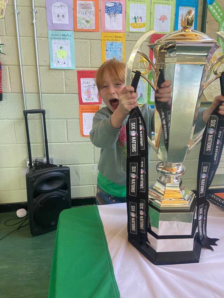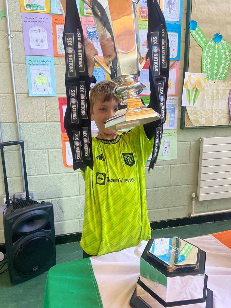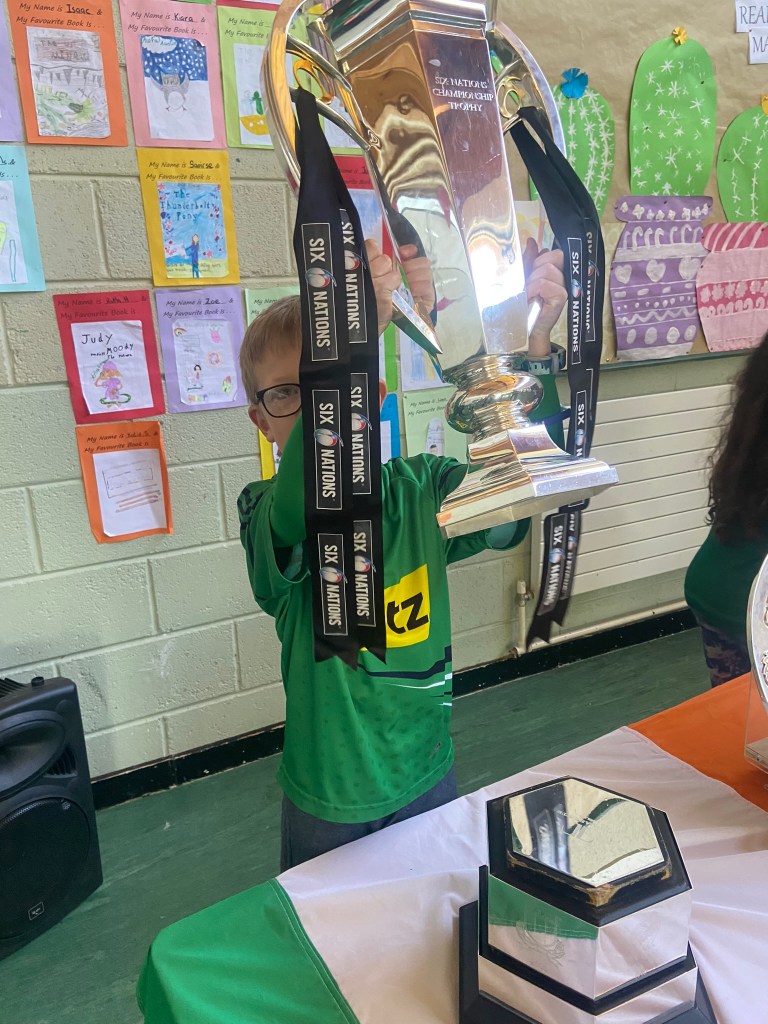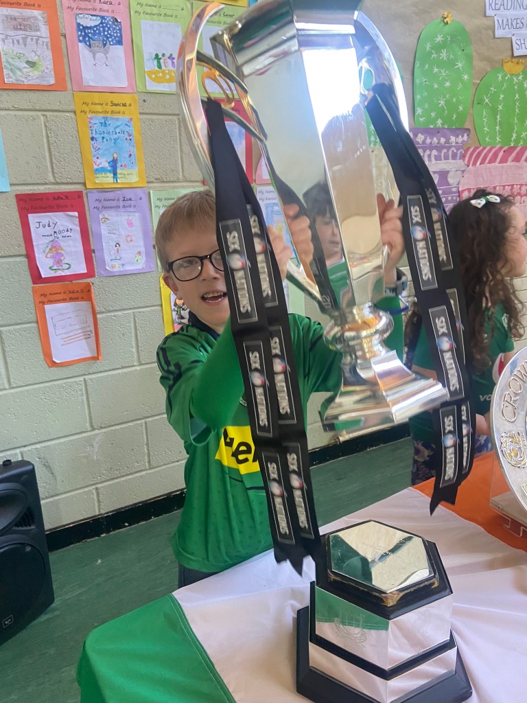 The rugby trophies come to Piercestown NS!!