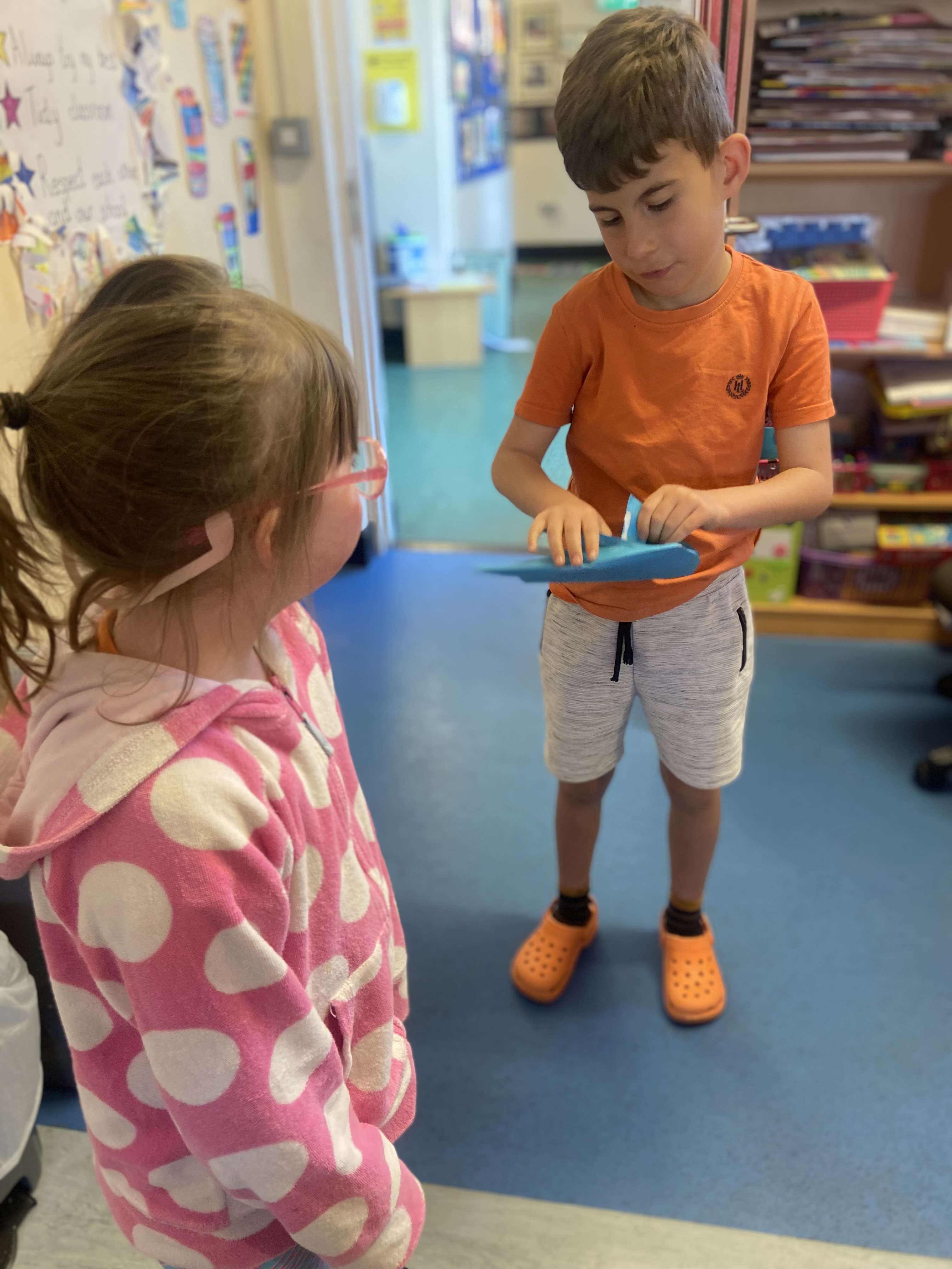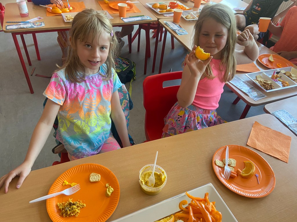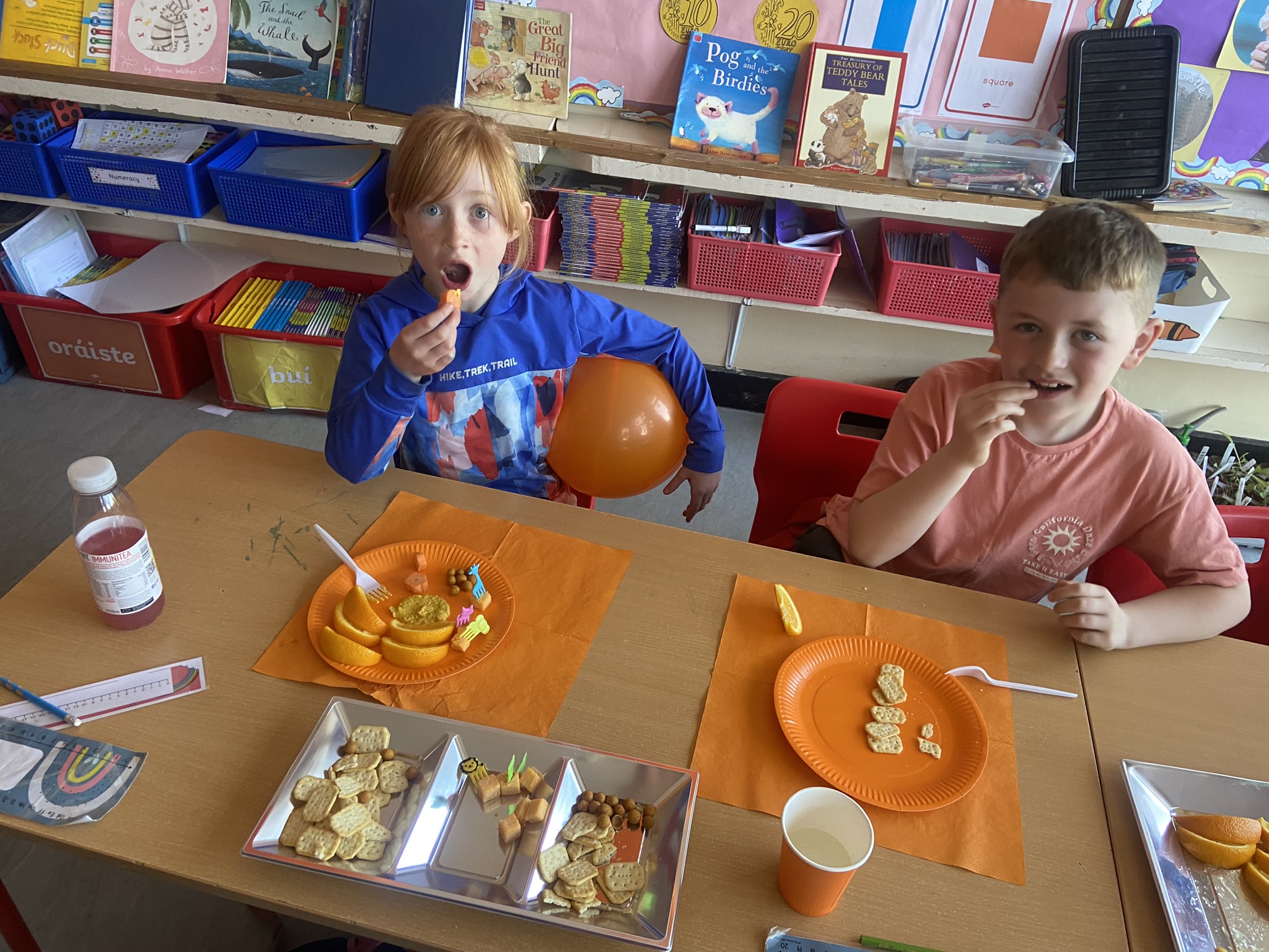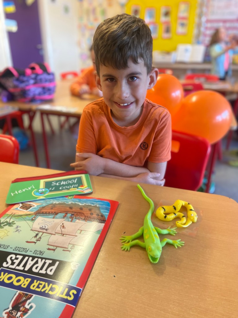 We rocked our socks on March 21st to celebrate World Down Syndrome Day. Teresa had the room decorated in beautiful purple balloons and all on her day off!! Special thank you to Teresa!! We read the book This is Me written by George Webster a boy with Down syndrome celebrating how each one of us is different. There were some information sheets explaining how we all get 23 chromosomes from our Mother and Father, and people with Down Syndrome have an extra copy of Chromosome 21 which looks like a pair of odd socks …. Hence the odd socks day! All the children in 1st class made pairs of odd socks, which they displayed on a “clothes line”. Eve and Henri had fun making pizza slices with Ms Lyttleton. Odd Socks day encourages us all to have a conversation about diversity, uniqueness, inclusion and acceptance.