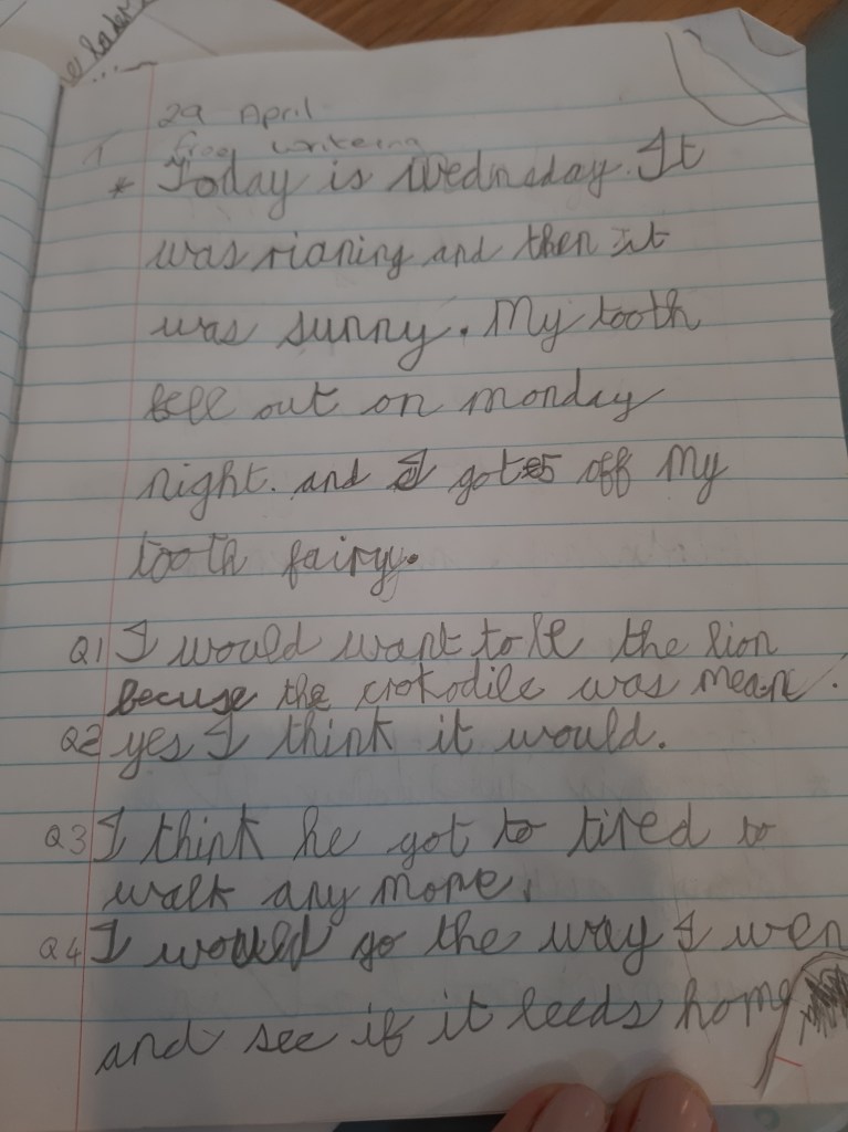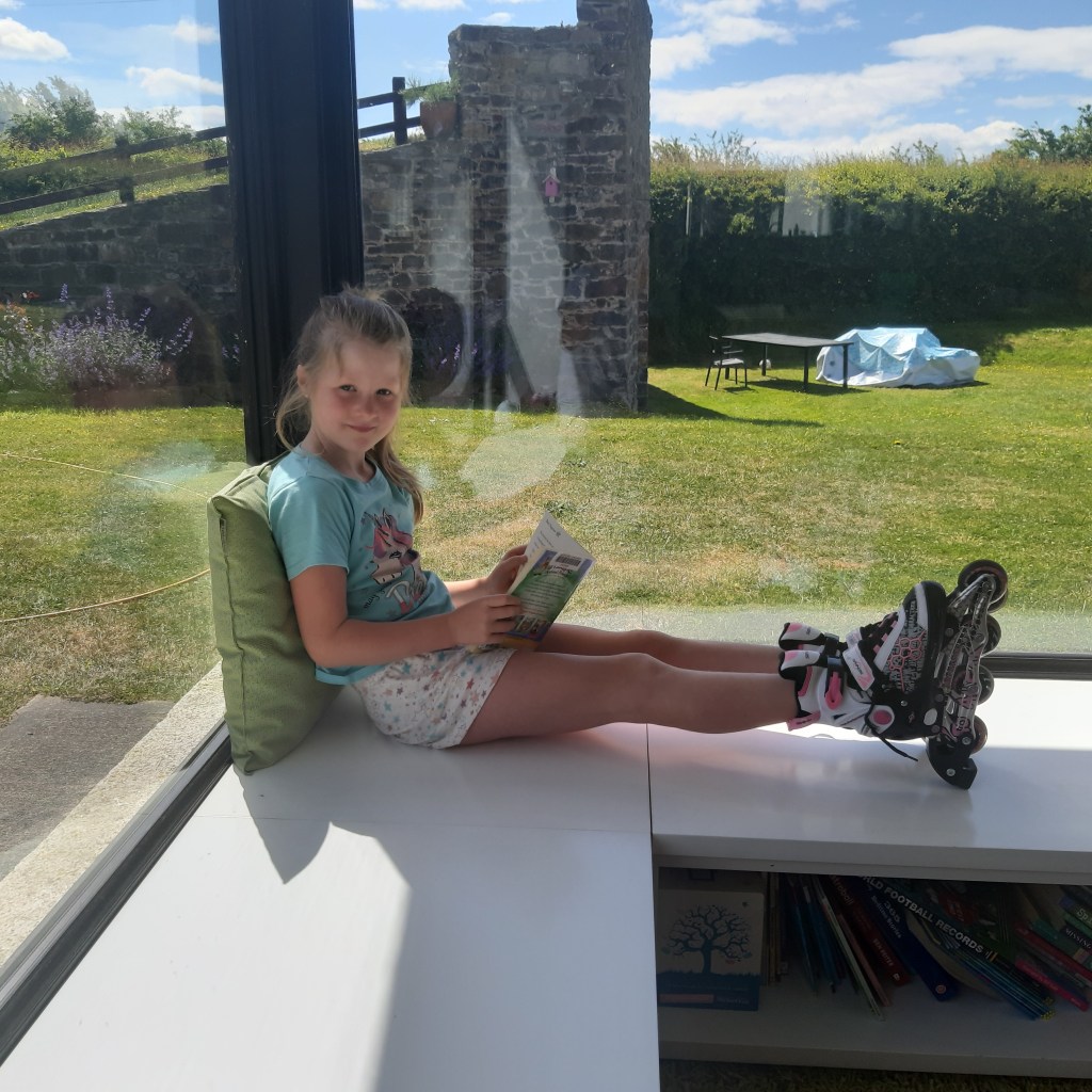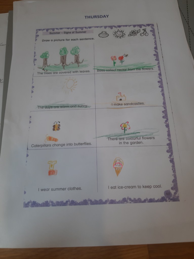 We stayed safe while working from home. We kept ourselves busy from measuring in maths, to writing poetry, building bug hotels, mindful colouring, practising our joined writing and problem solving to name just a few activities. We really enjoyed the reading challenge and got to read in lots of different places. We had plenty of help from our furry friends and when all the work was done we got to chill out in the pool.