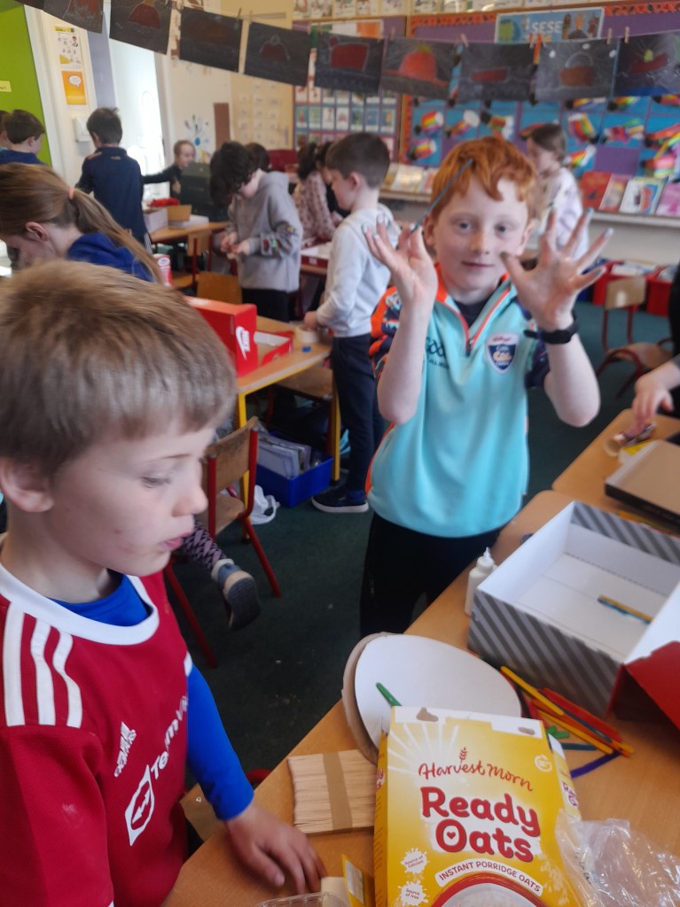 The children in 1st class have been very busy working from home. They have been actively reading, writing, problem solving, drawing, baking, and exploring. They also had a great week during Active Week trying to beat the staff of Piercestown N.S.