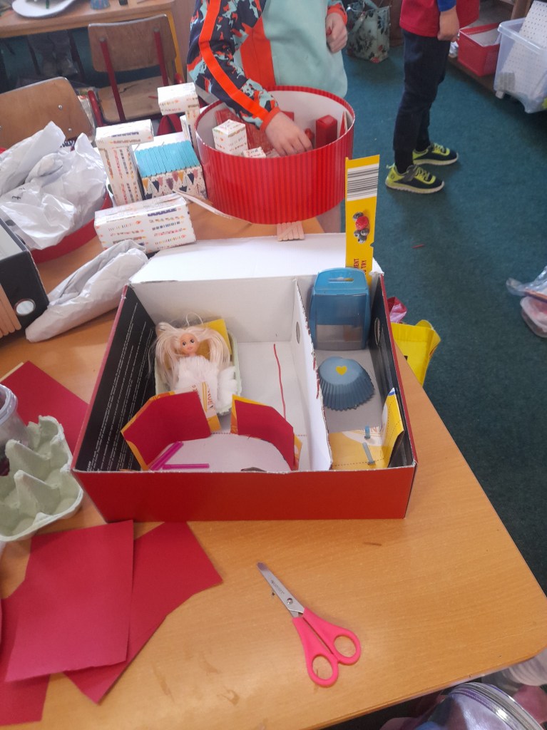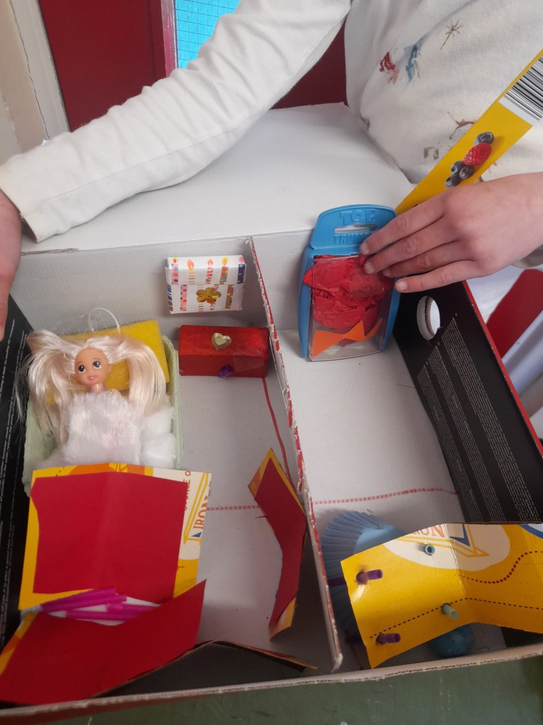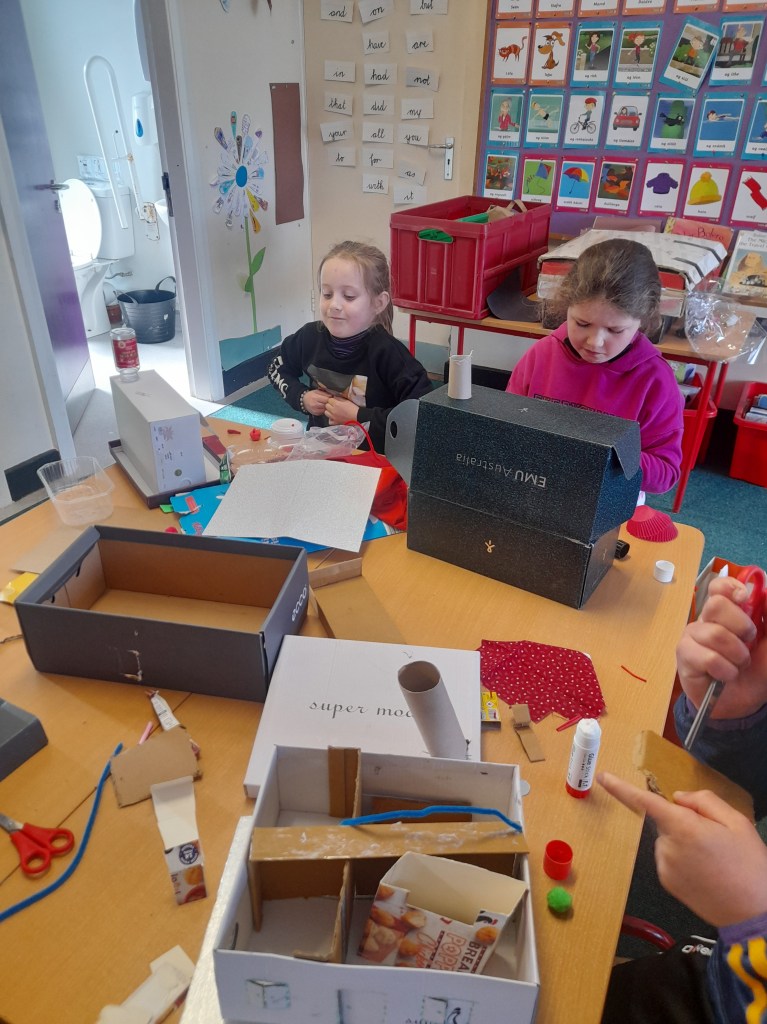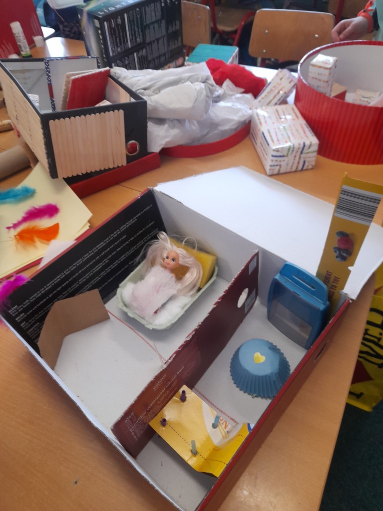 An amazing ‘crafternoon’ followed and the class was awash with materials of all shapes and sizes. However, the students are not out of the woods yet (pun intended)! They are now engaging in the improve and review stage of their design process. Little Red Riding Hood will have a mammoth task choosing which house to live in and may even need the help of her pal Goldilocks to test some beds and chairs!