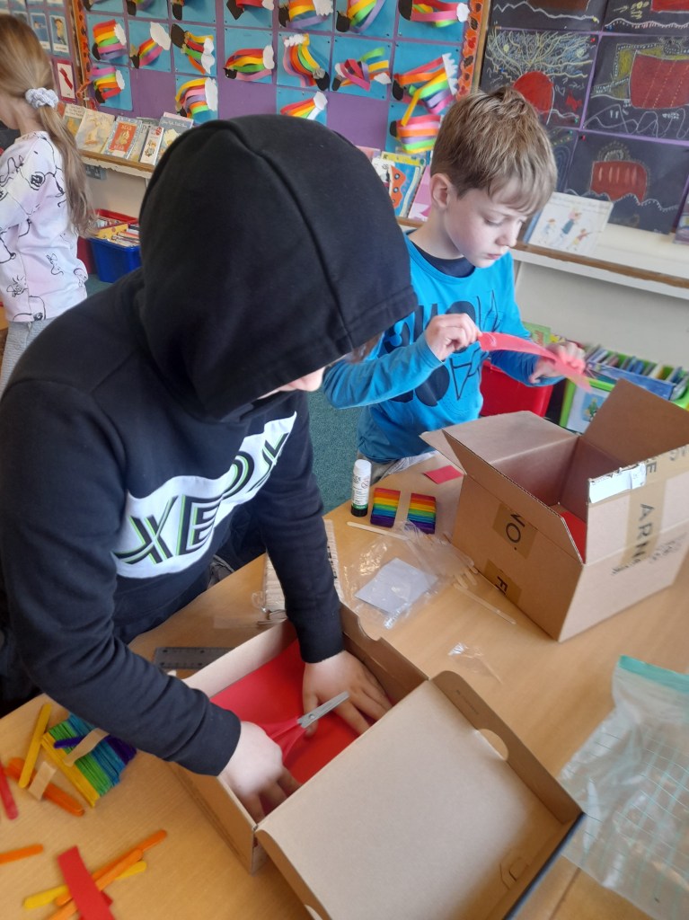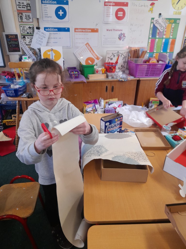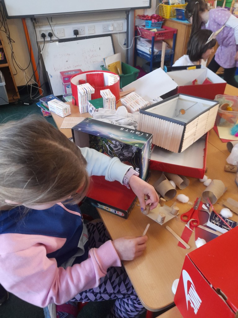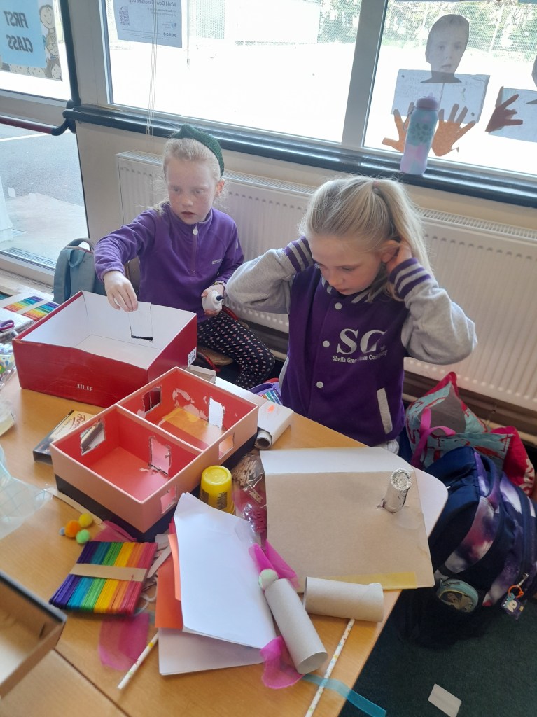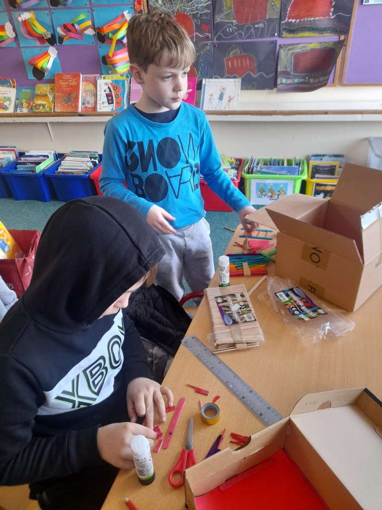 An amazing ‘crafternoon’ followed and the class was awash with materials of all shapes and sizes. However, the students are not out of the woods yet (pun intended)! They are now engaging in the improve and review stage of their design process. Little Red Riding Hood will have a mammoth task choosing which house to live in and may even need the help of her pal Goldilocks to test some beds and chairs!