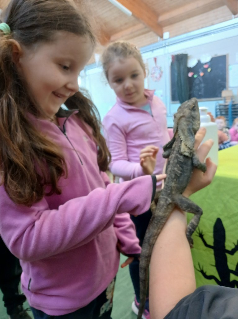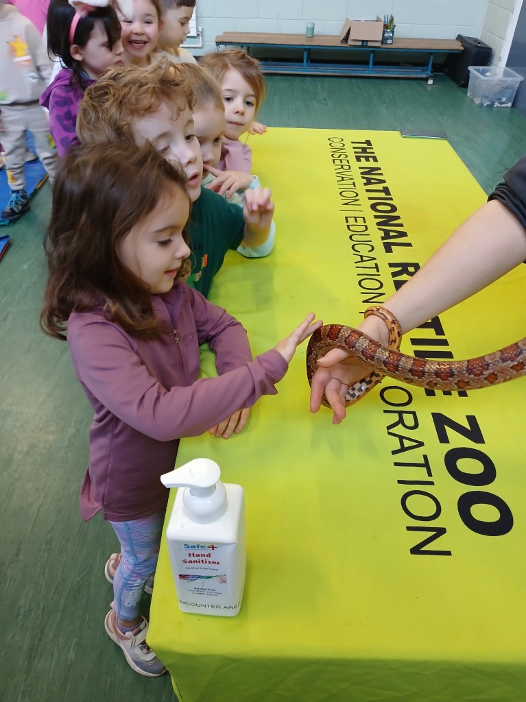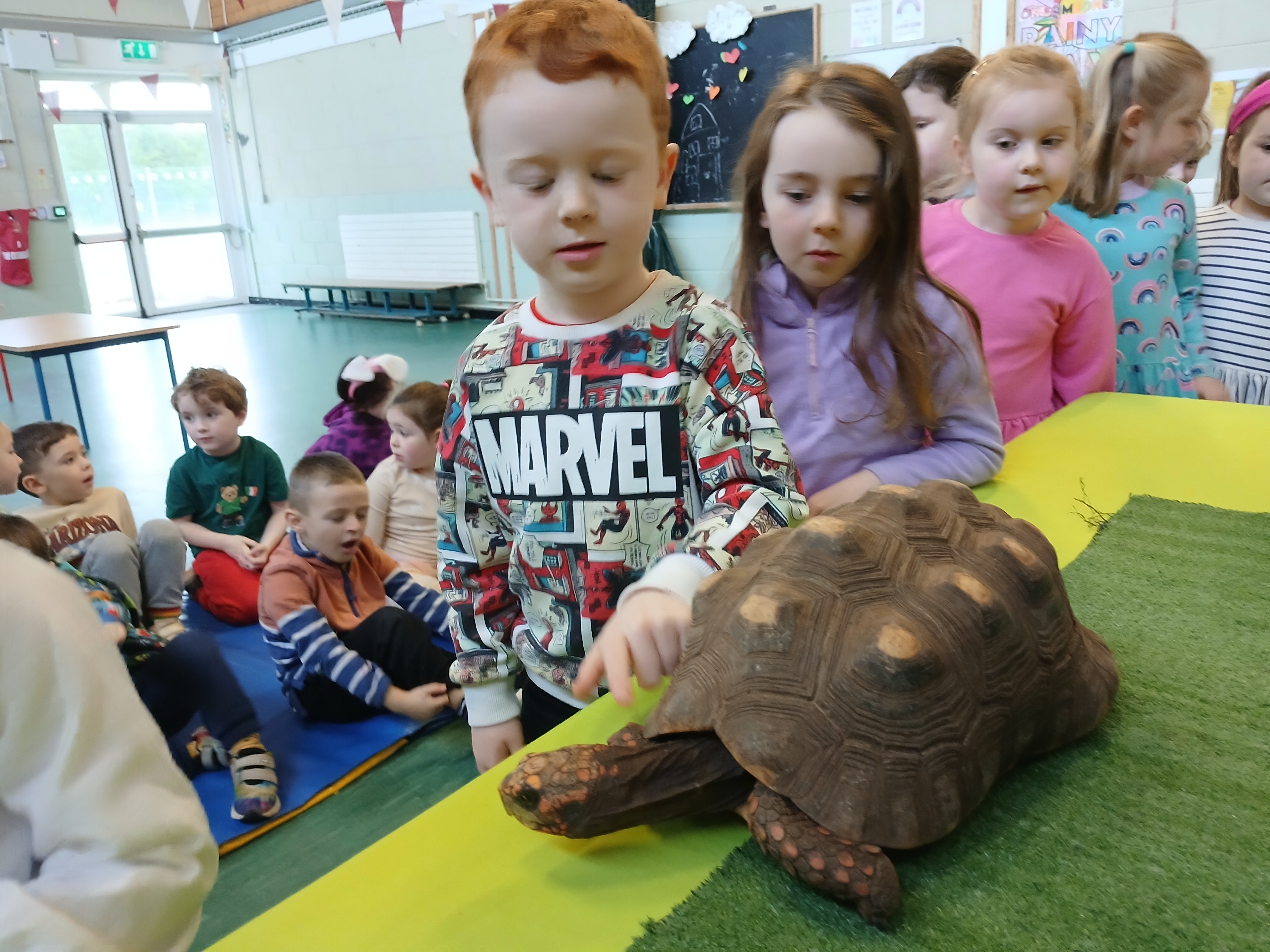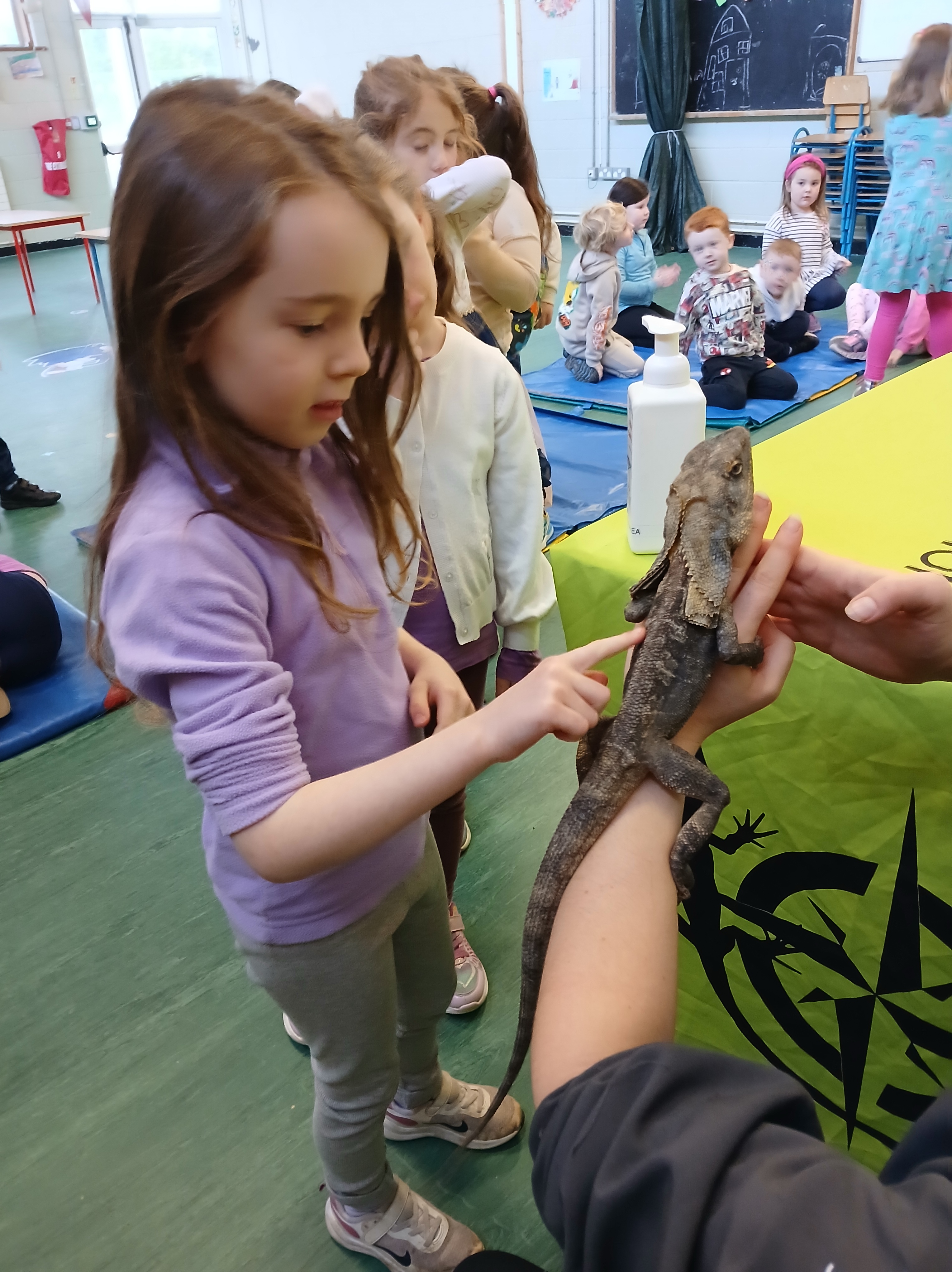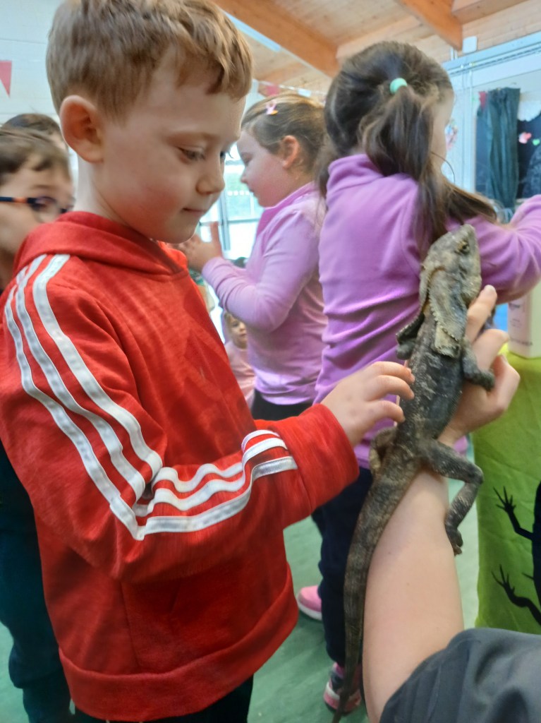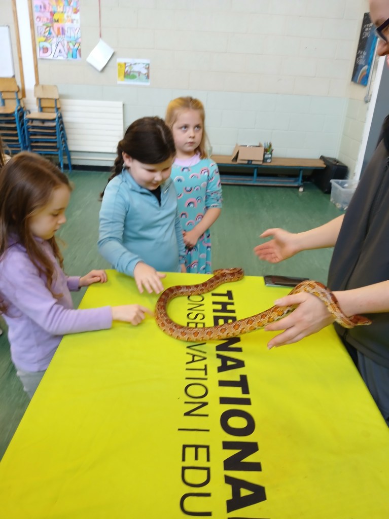 A friendly email from a junior infant parent ensured that the entire school benefited from the generous actions of Ms. Walsh who kindly arranged for the National Reptile Zoo to visit all the boys and girls in Piercestown National School. The junior end got to meet some scaly friends during Science Week. What a brave bunch they were!