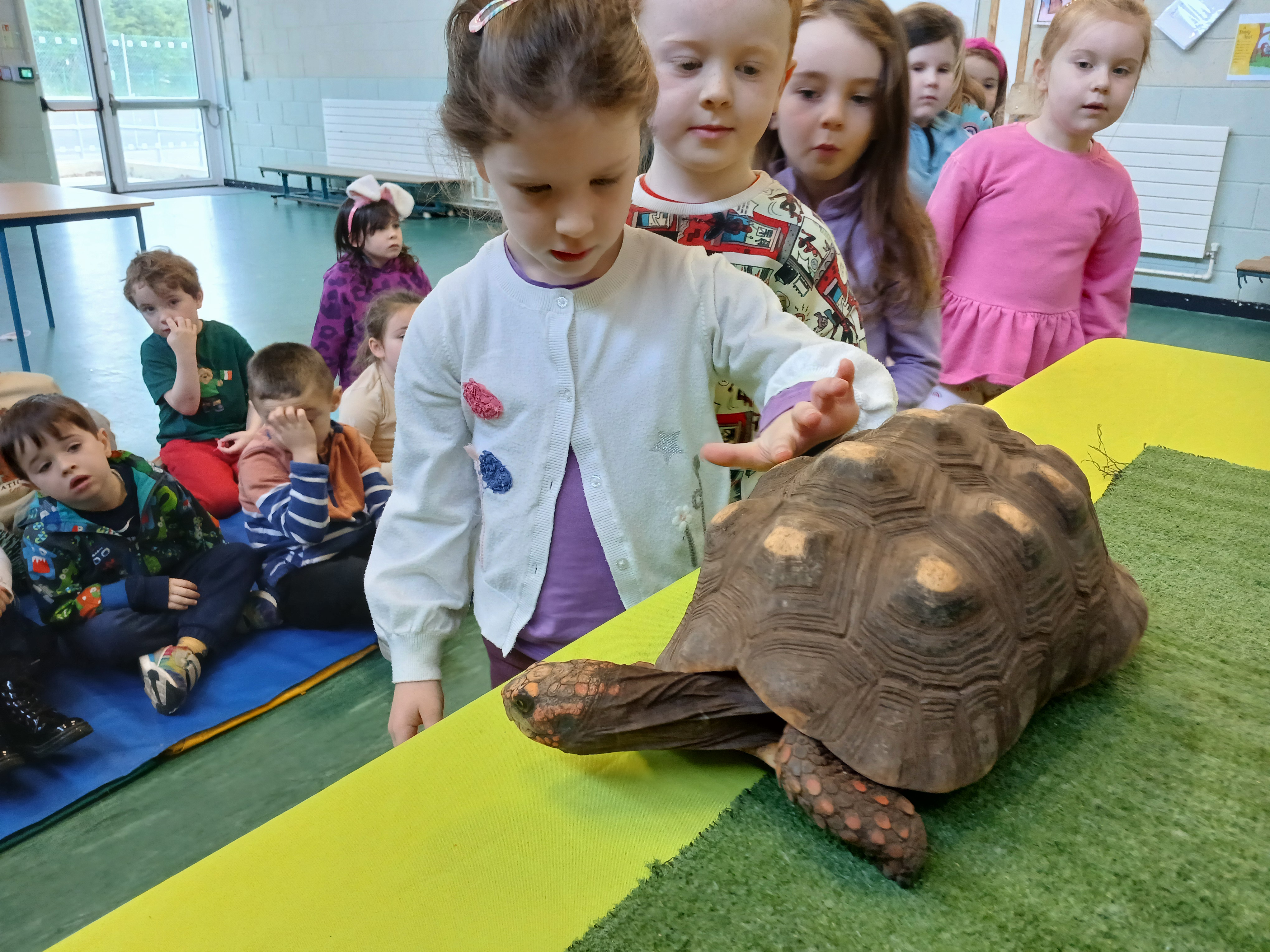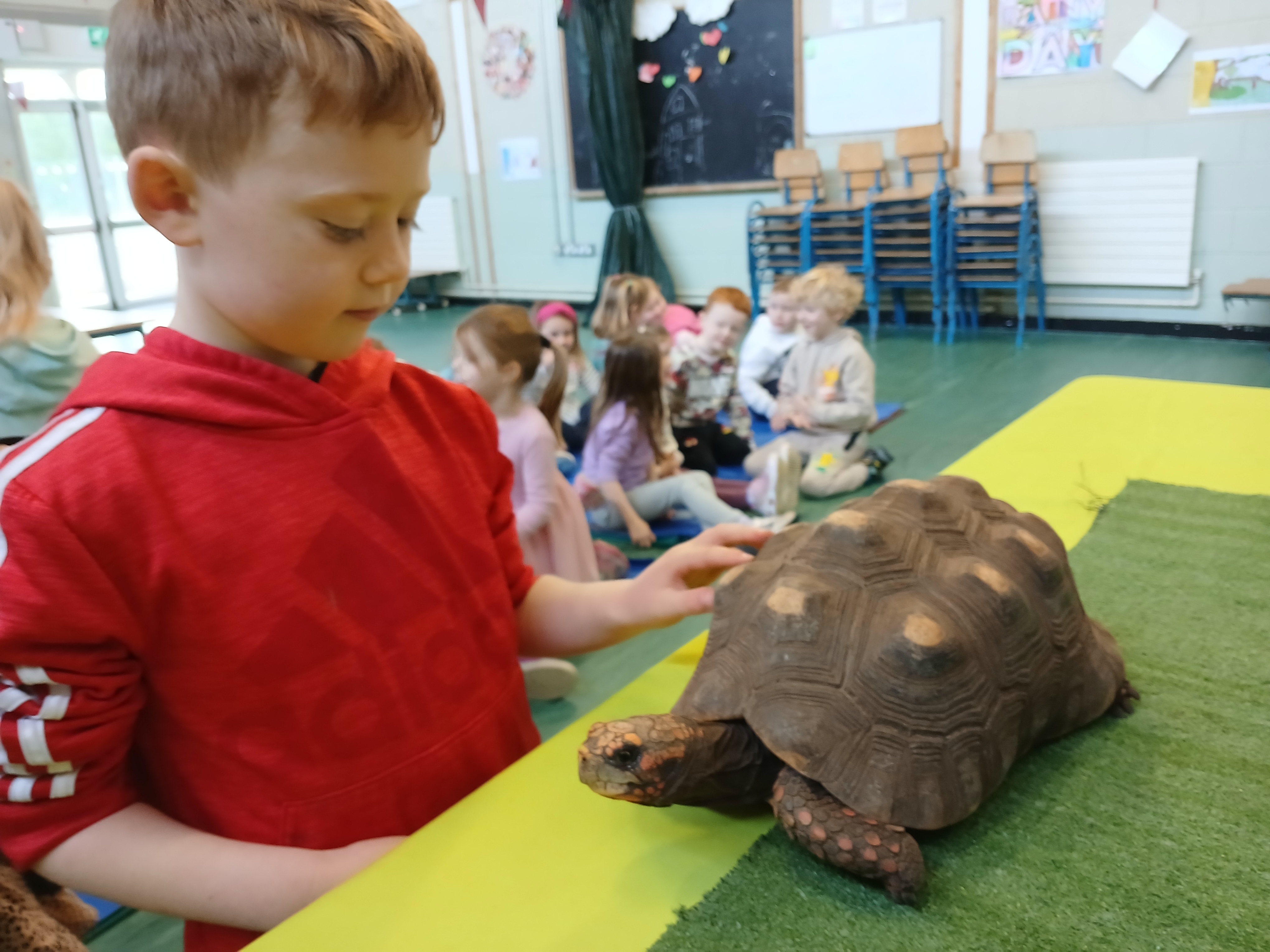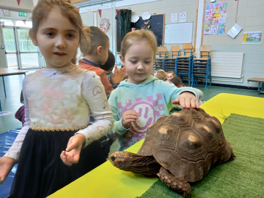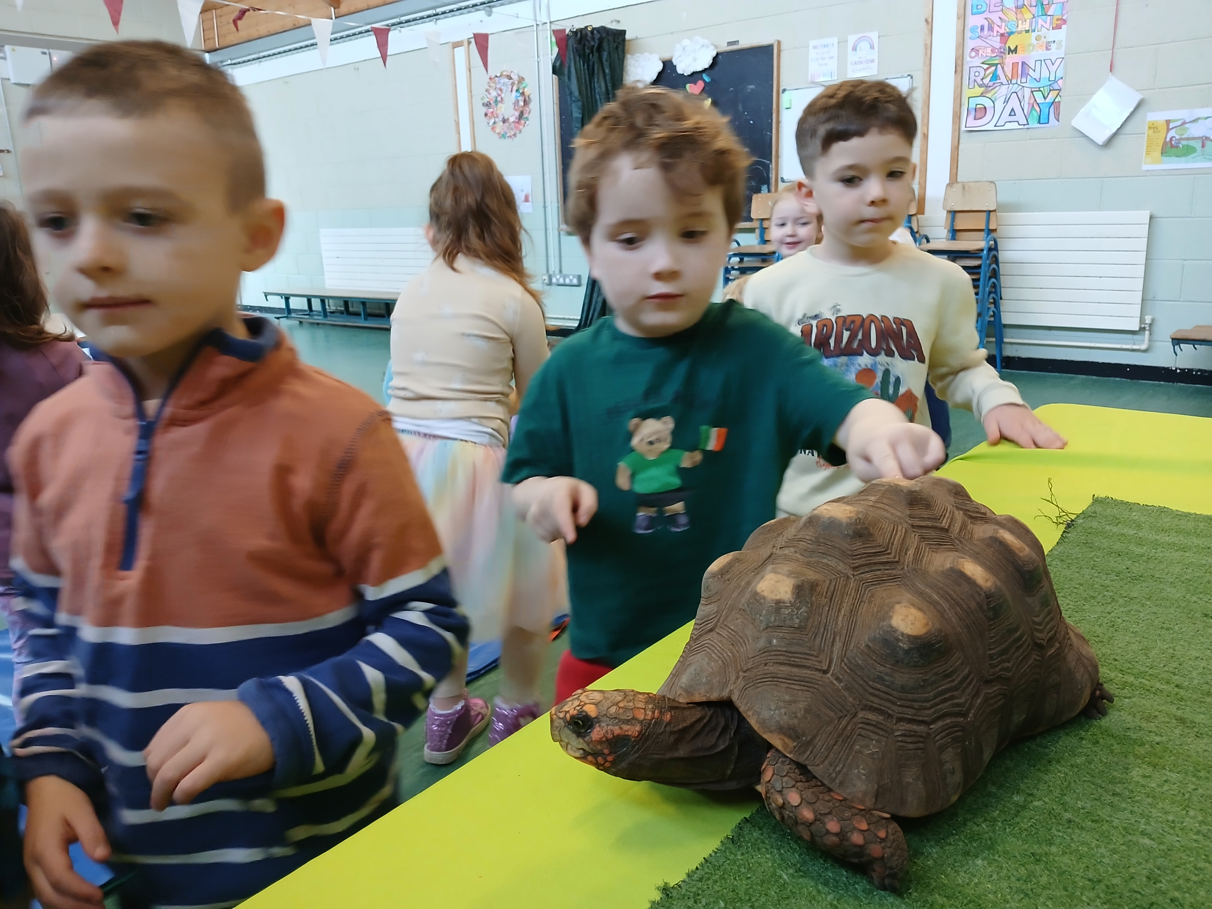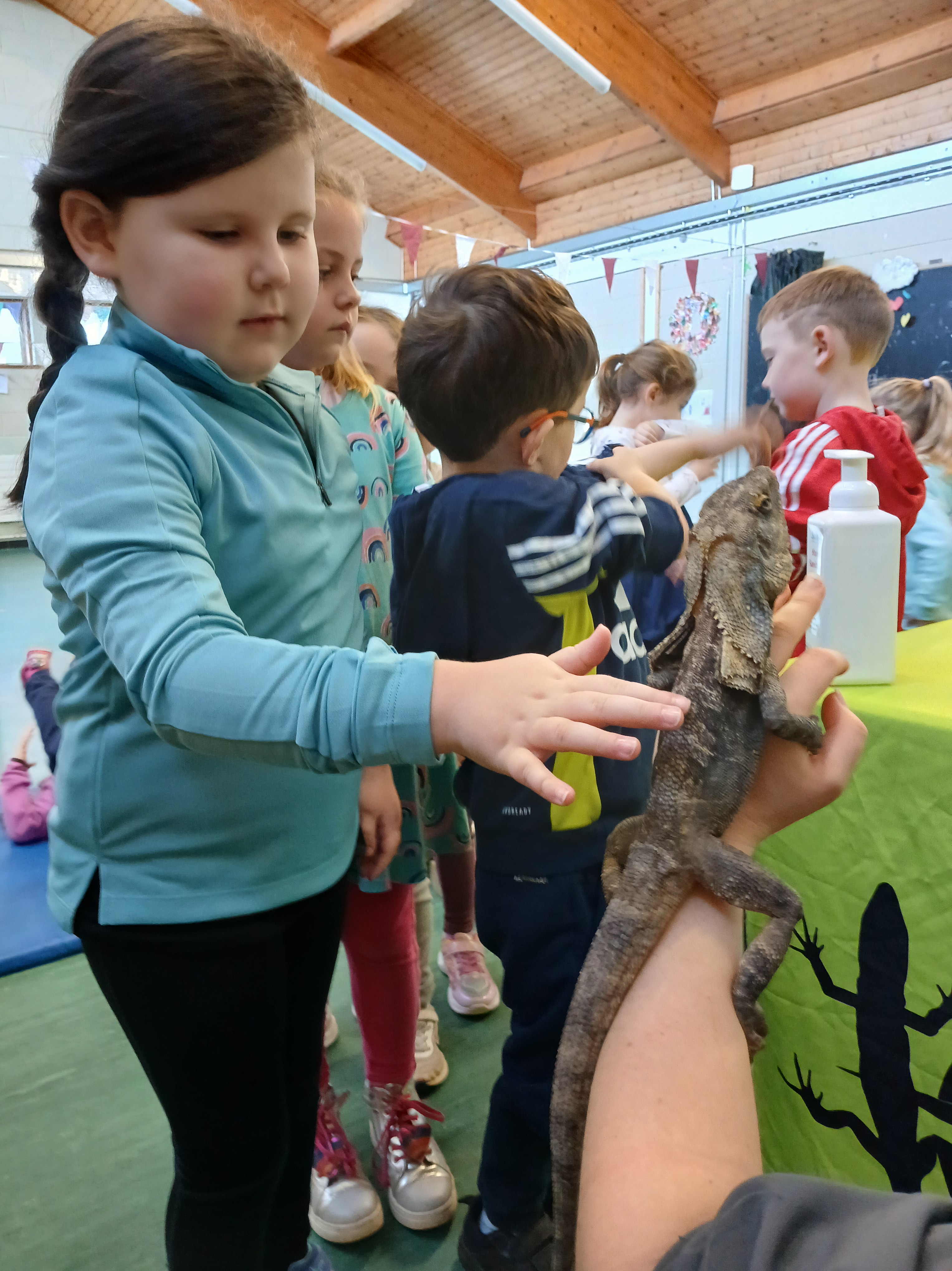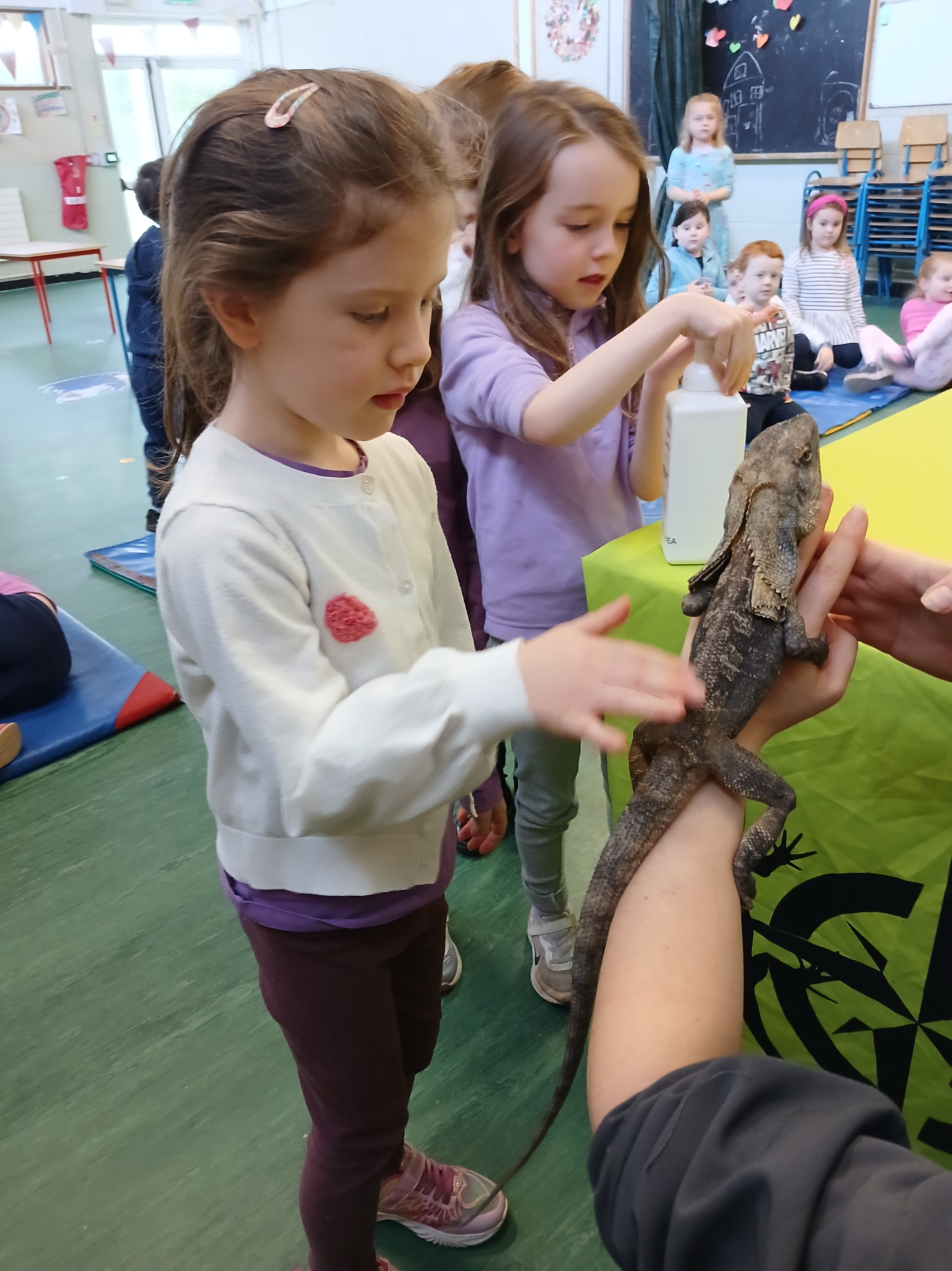 A friendly email from a junior infant parent ensured that the entire school benefited from the generous actions of Ms. Walsh who kindly arranged for the National Reptile Zoo to visit all the boys and girls in Piercestown National School. The junior end got to meet some scaly friends during Science Week. What a brave bunch they were!