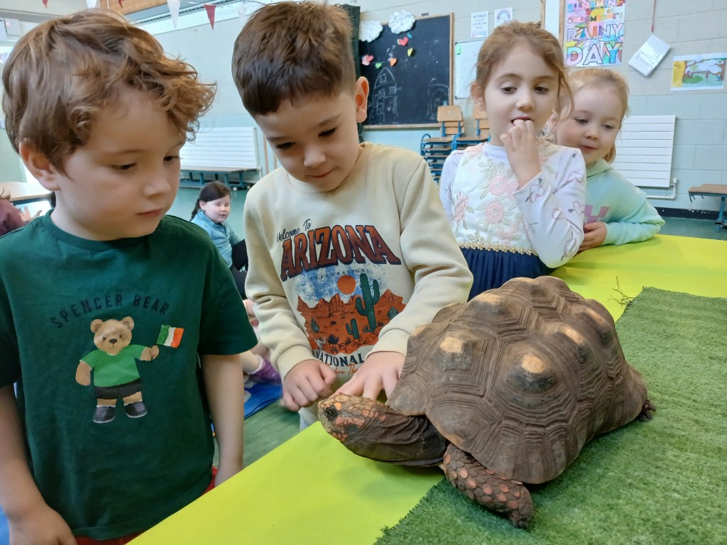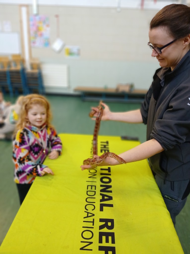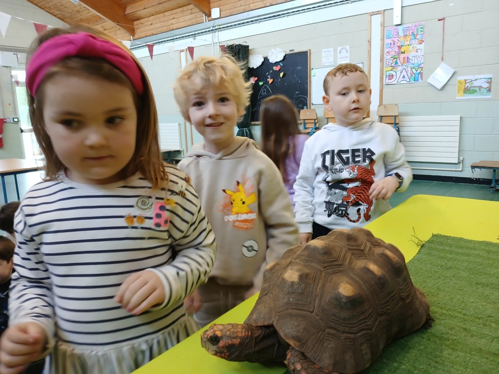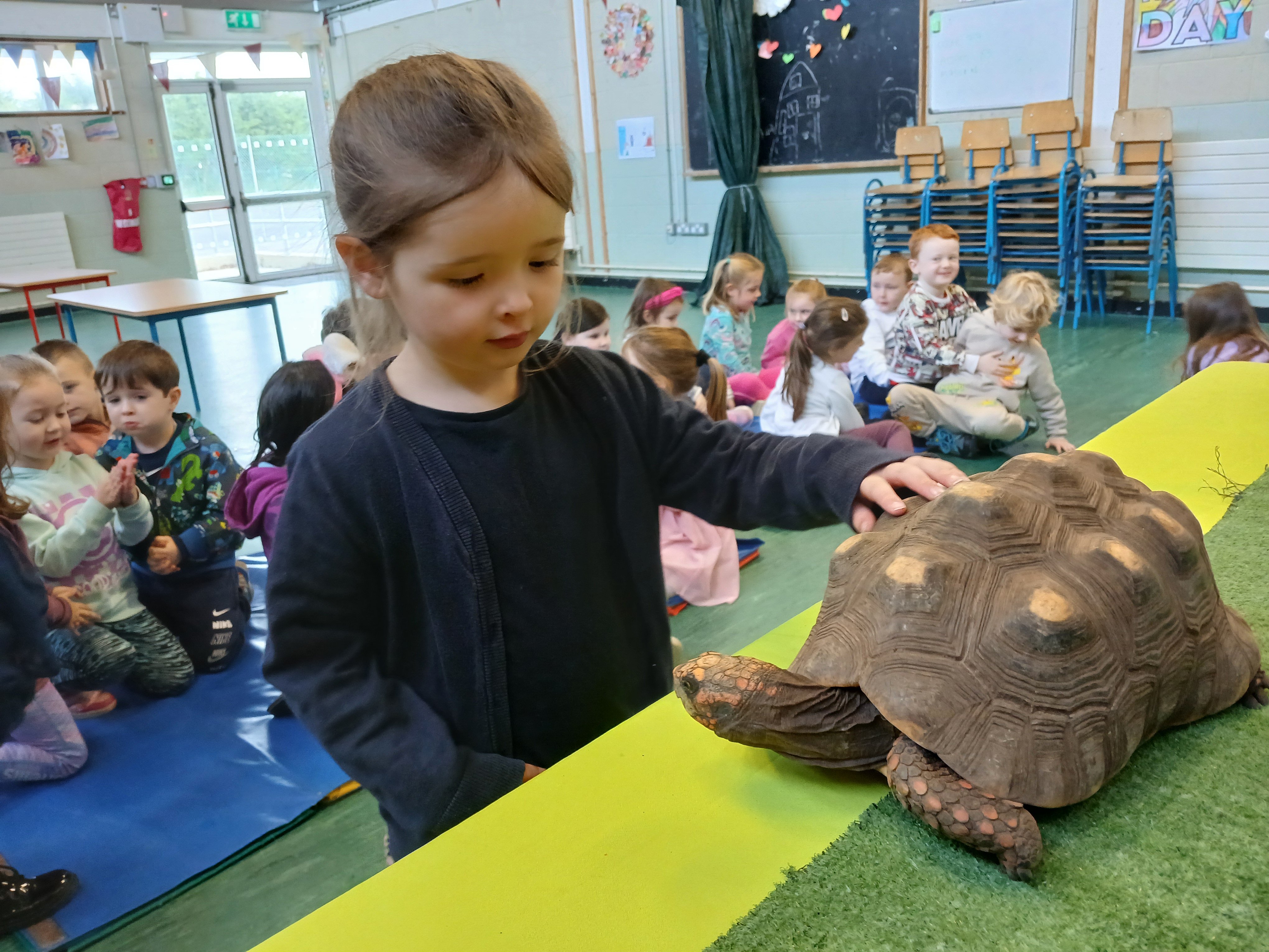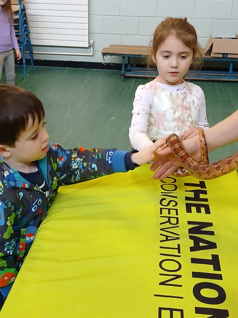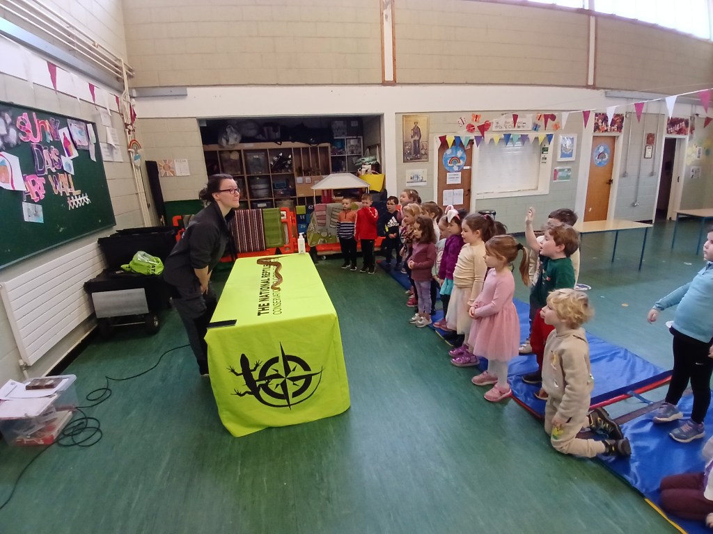 A friendly email from a junior infant parent ensured that the entire school benefited from the generous actions of Ms. Walsh who kindly arranged for the National Reptile Zoo to visit all the boys and girls in Piercestown National School. The junior end got to meet some scaly friends during Science Week. What a brave bunch they were!