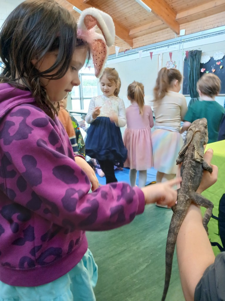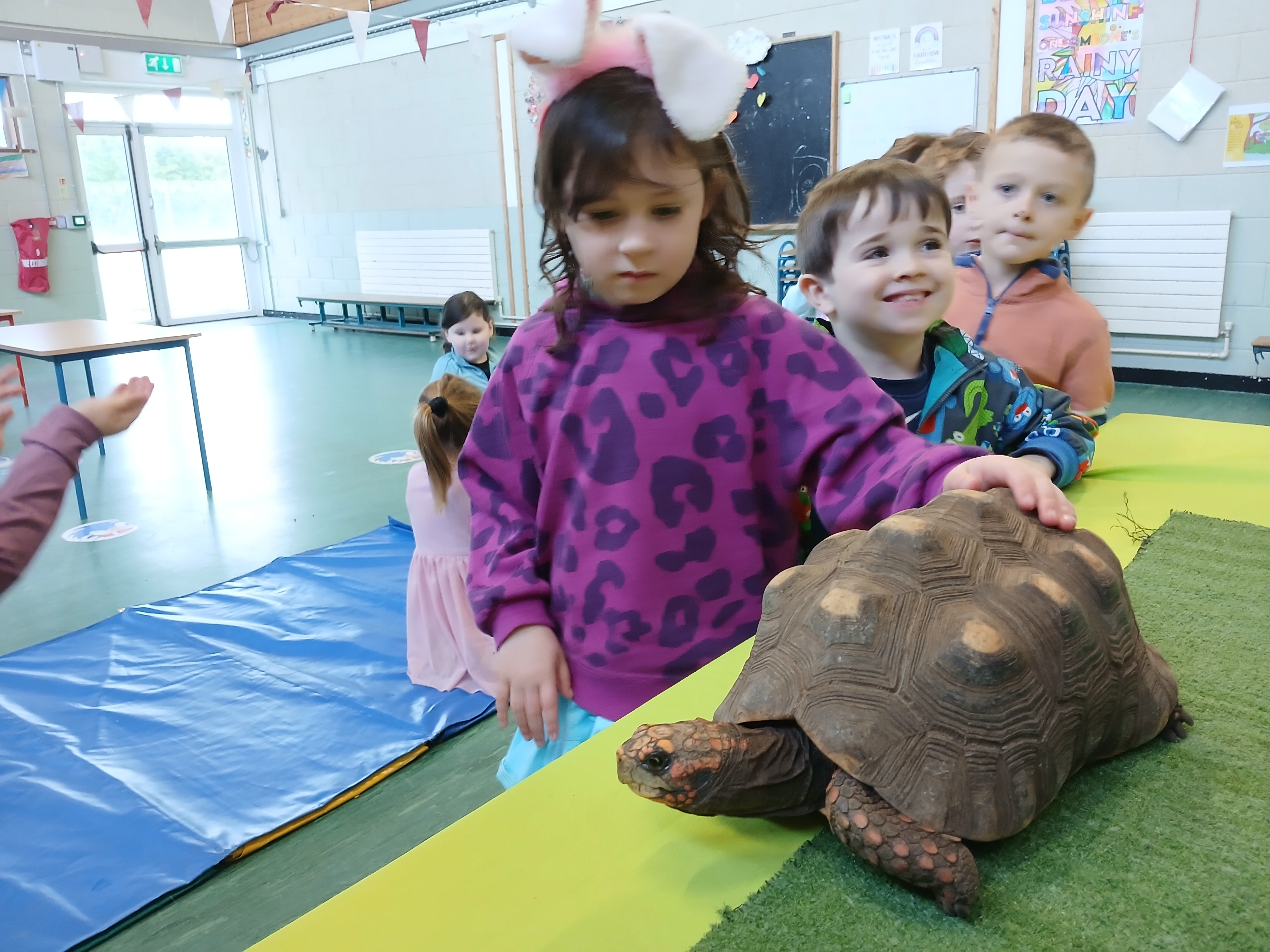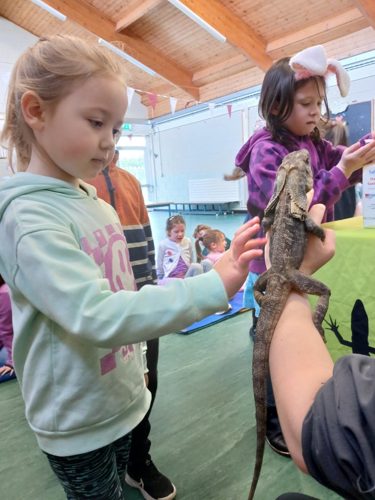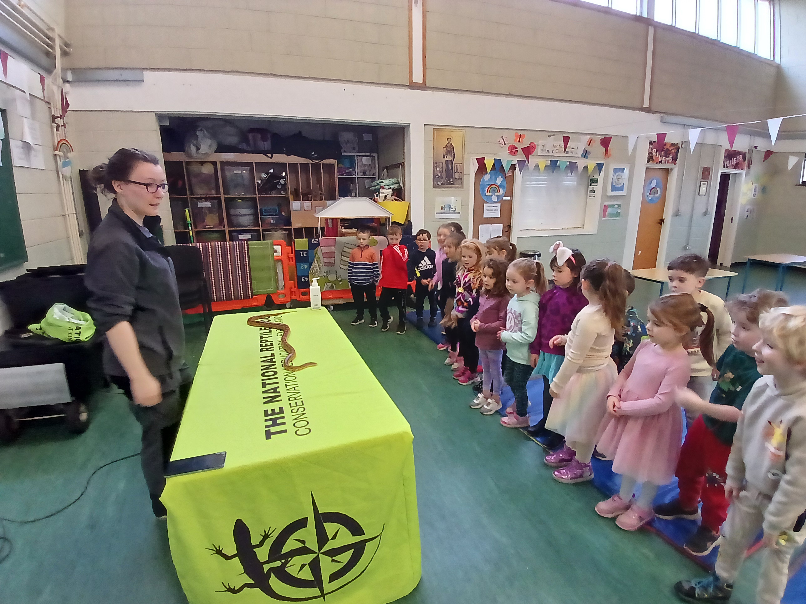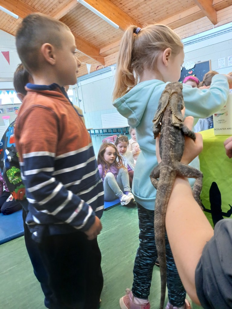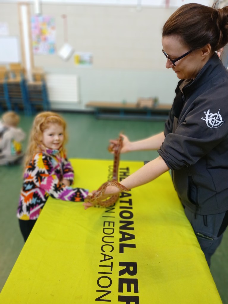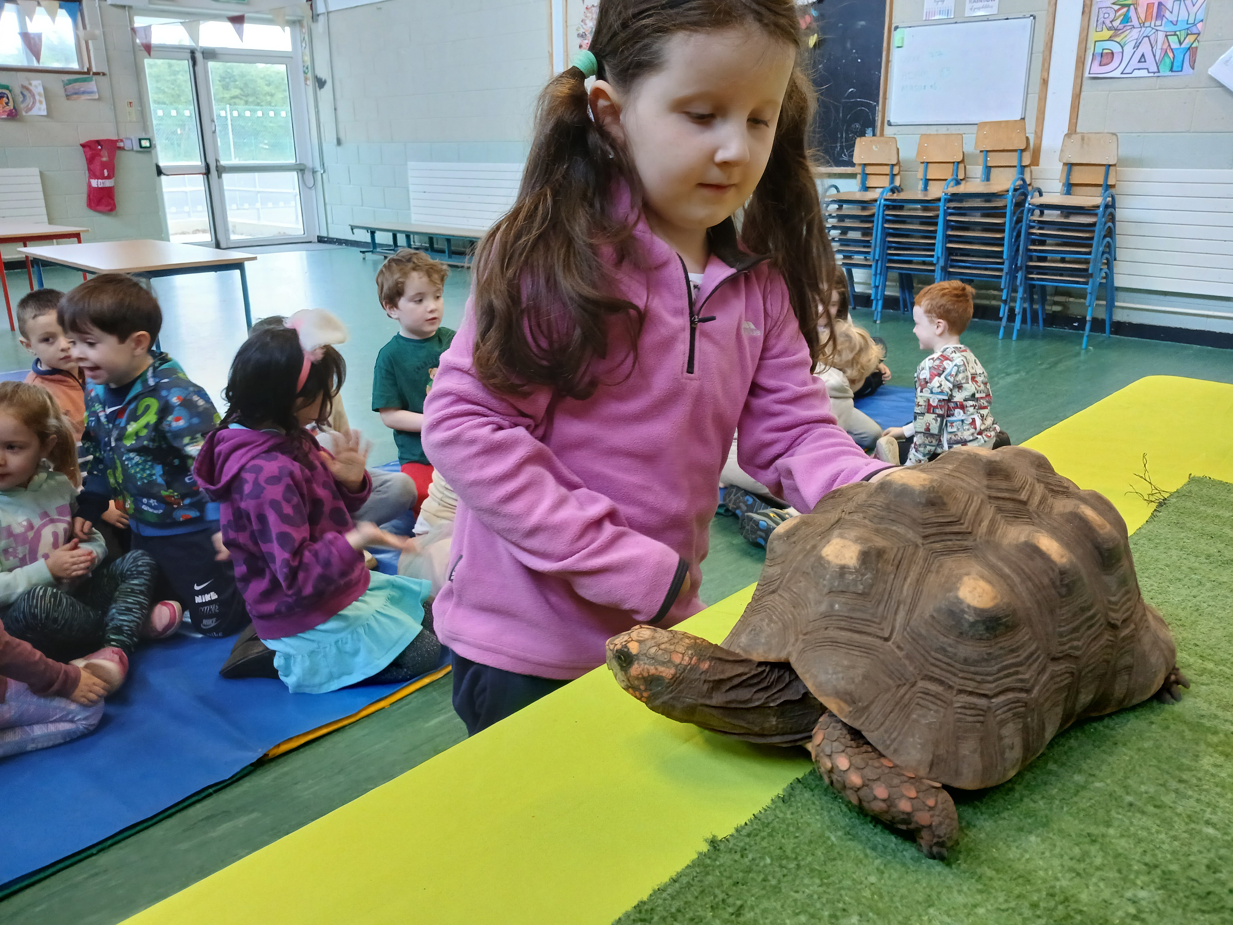 A friendly email from a junior infant parent ensured that the entire school benefited from the generous actions of Ms. Walsh who kindly arranged for the National Reptile Zoo to visit all the boys and girls in Piercestown National School. The junior end got to meet some scaly friends during Science Week. What a brave bunch they were!
