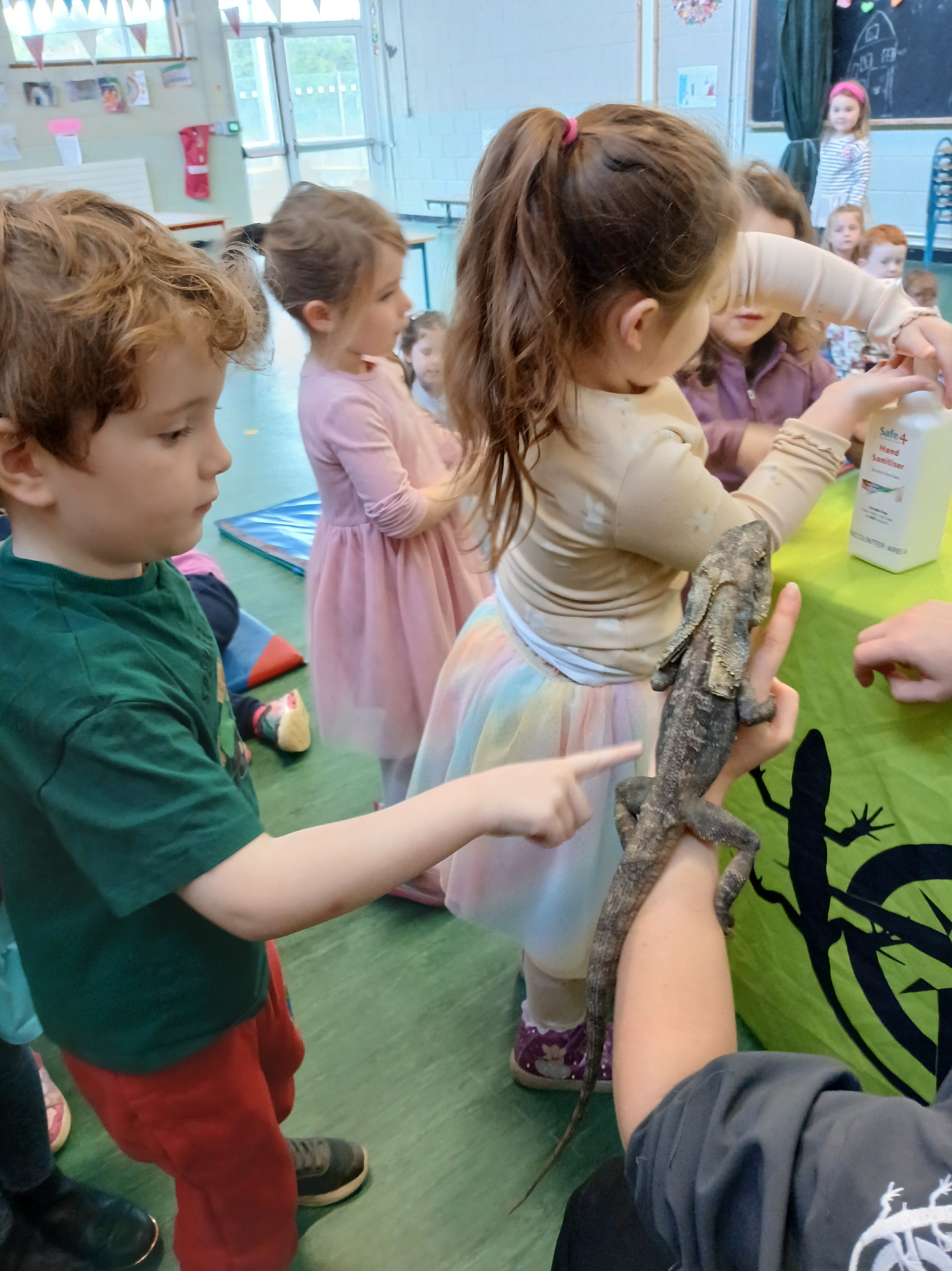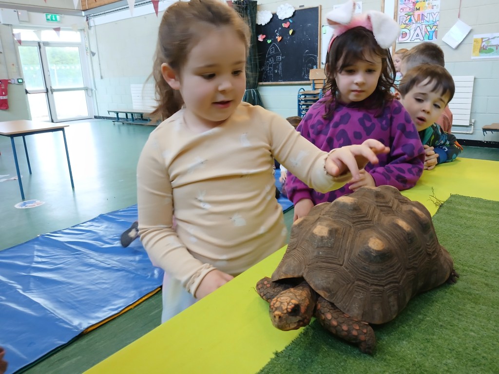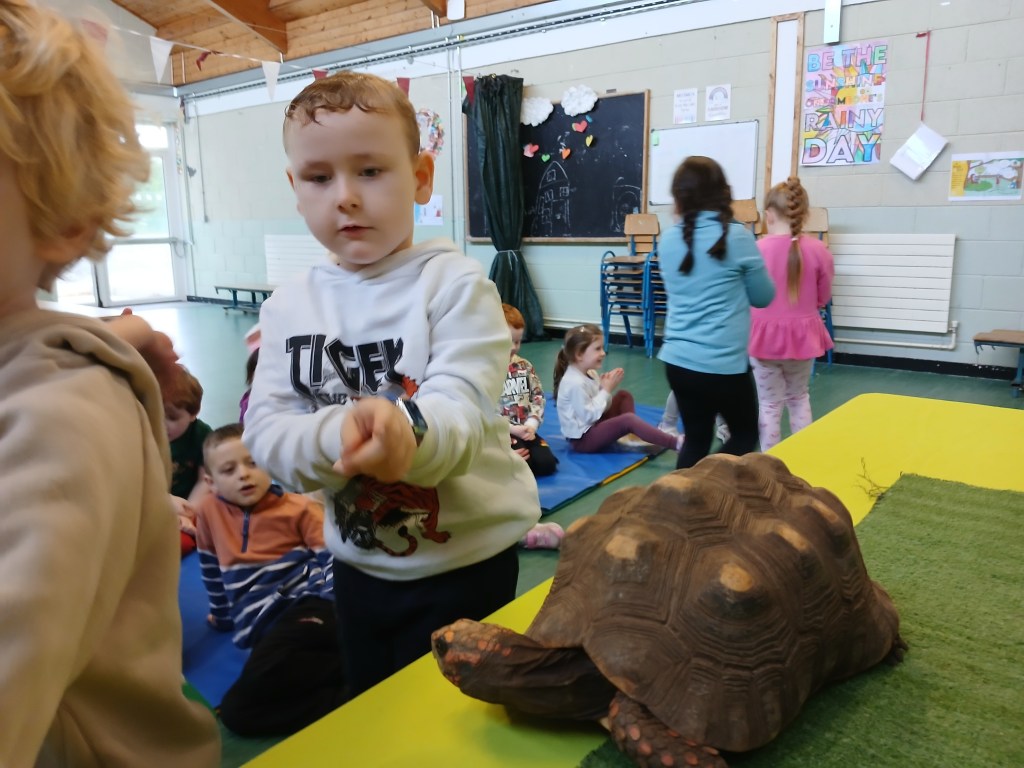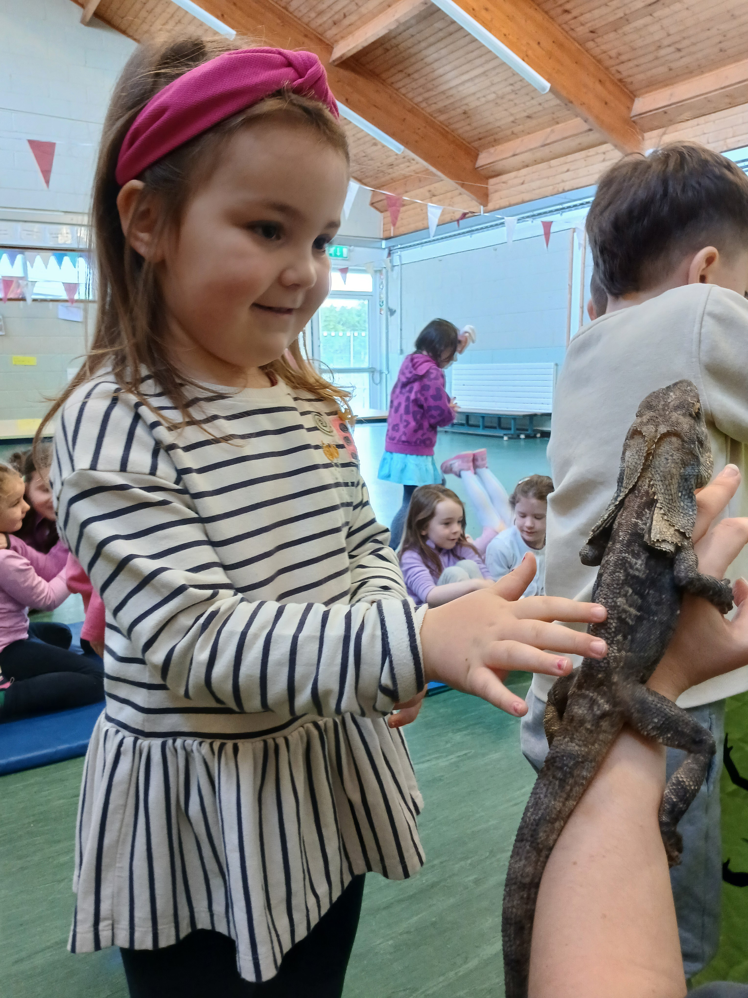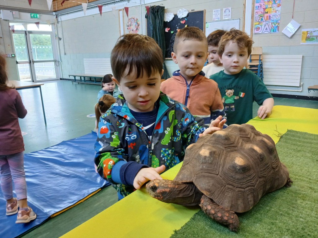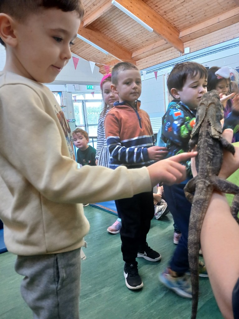 A friendly email from a junior infant parent ensured that the entire school benefited from the generous actions of Ms. Walsh who kindly arranged for the National Reptile Zoo to visit all the boys and girls in Piercestown National School. The junior end got to meet some scaly friends during Science Week. What a brave bunch they were!