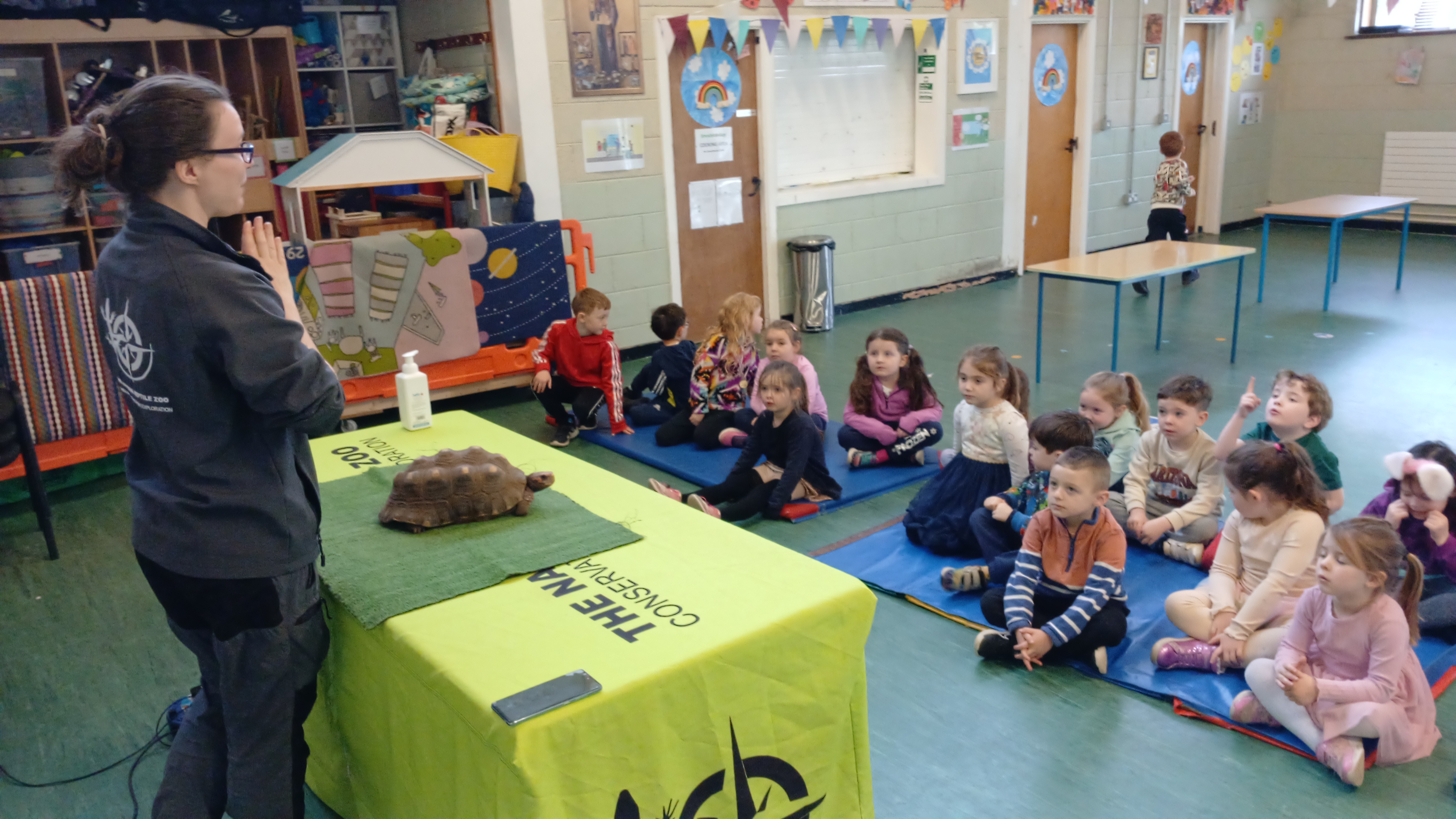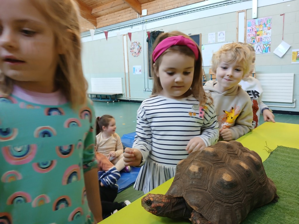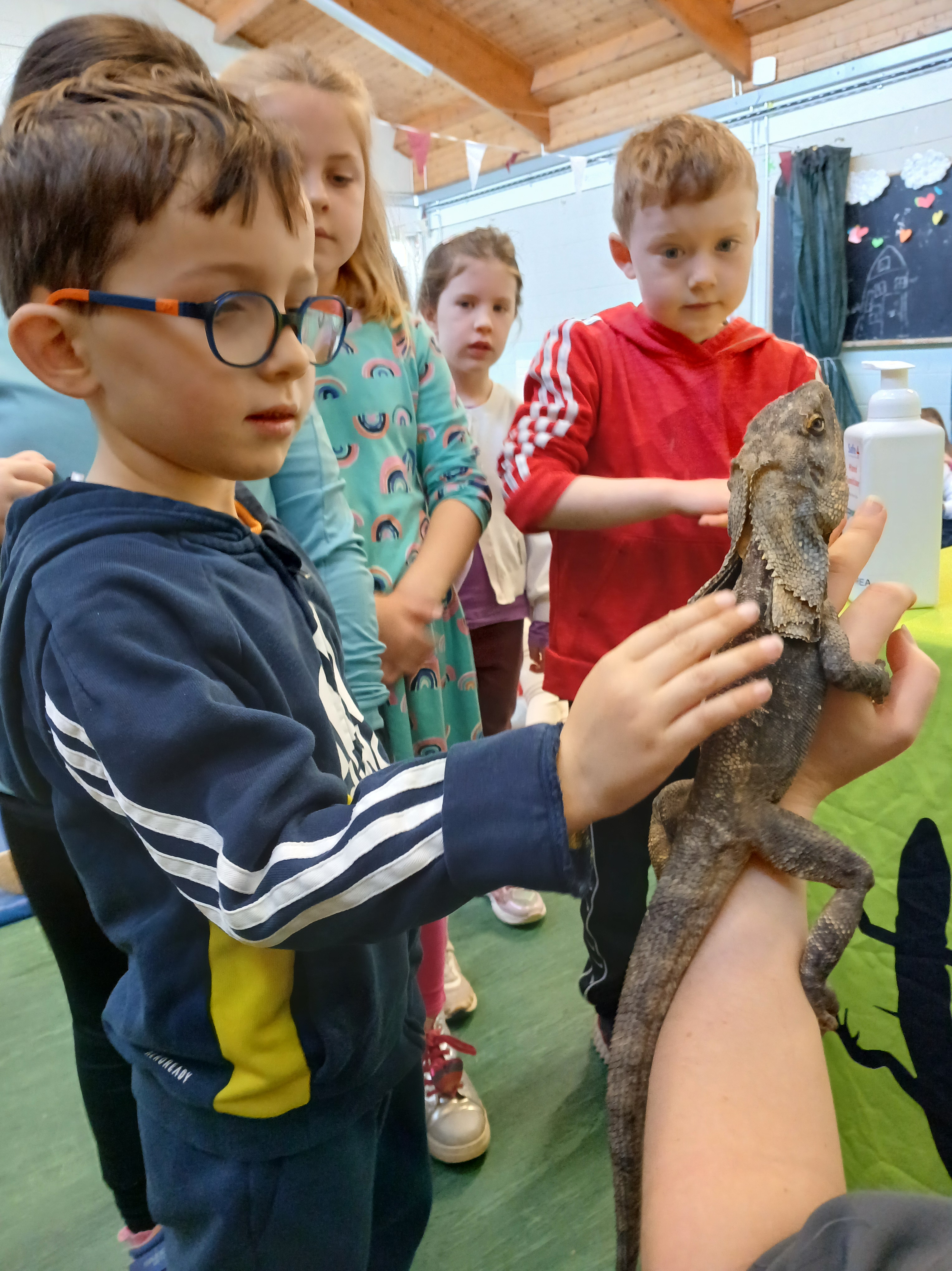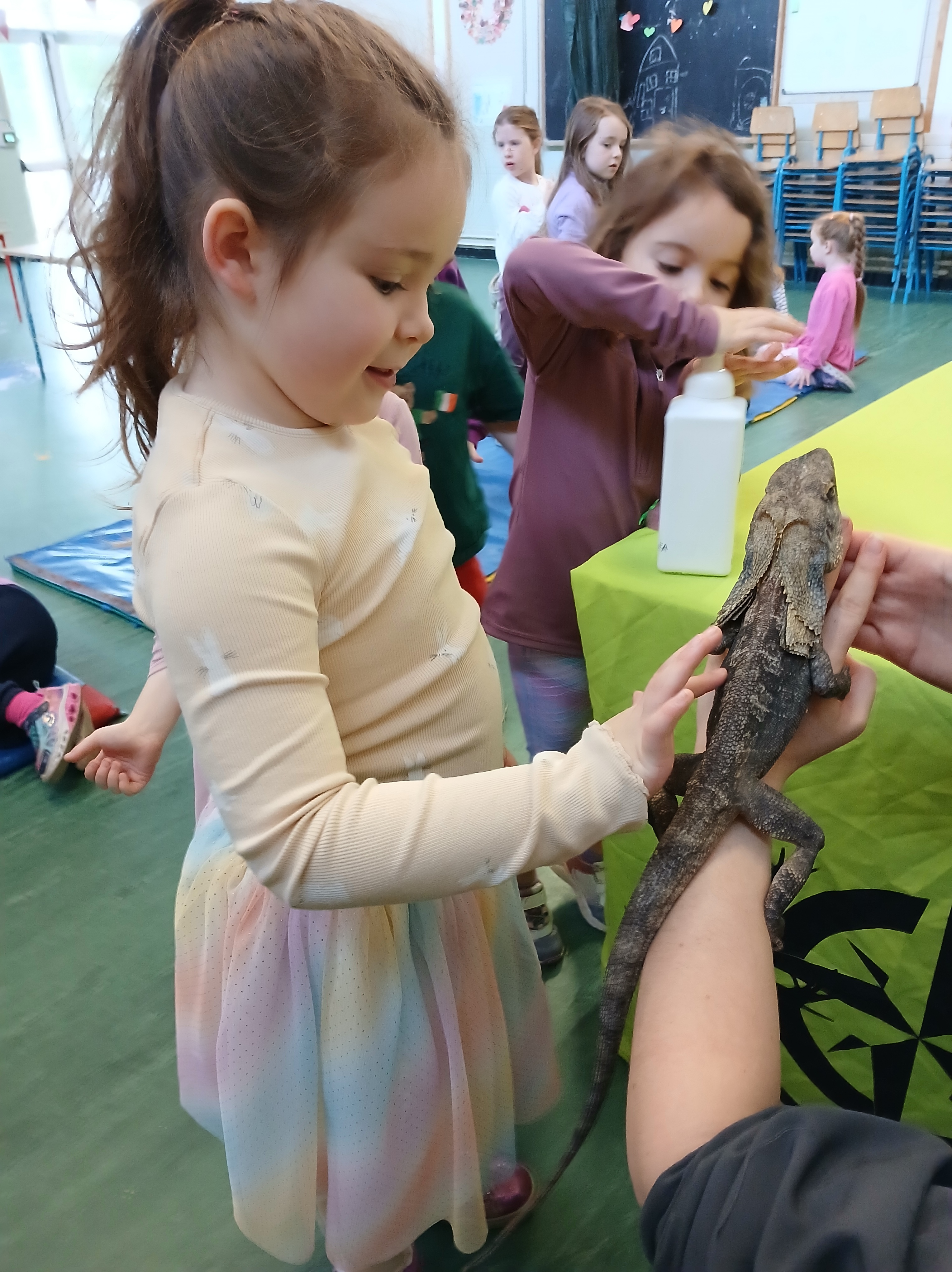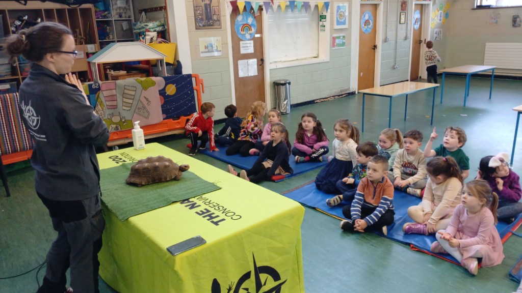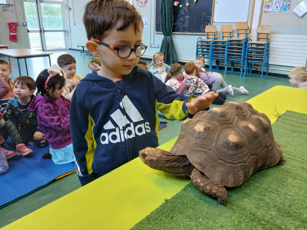 A friendly email from a junior infant parent ensured that the entire school benefited from the generous actions of Ms. Walsh who kindly arranged for the National Reptile Zoo to visit all the boys and girls in Piercestown National School. The junior end got to meet some scaly friends during Science Week. What a brave bunch they were!