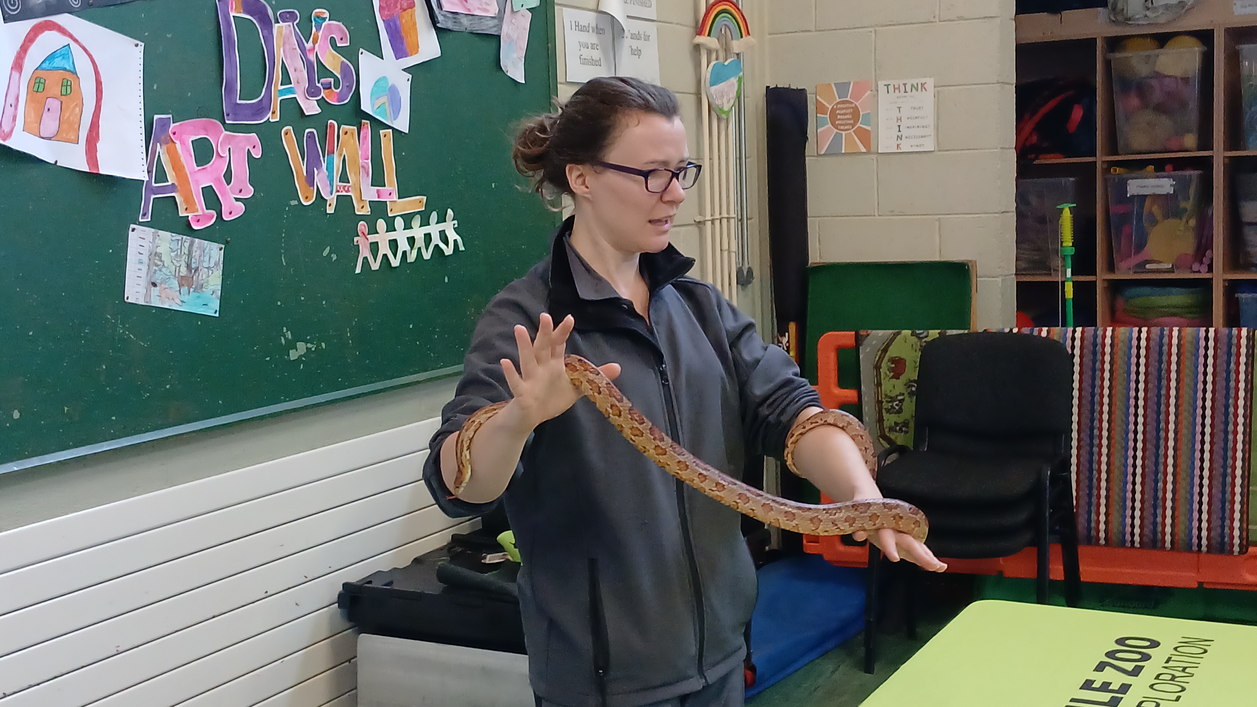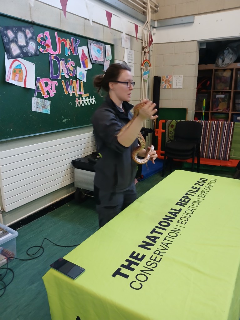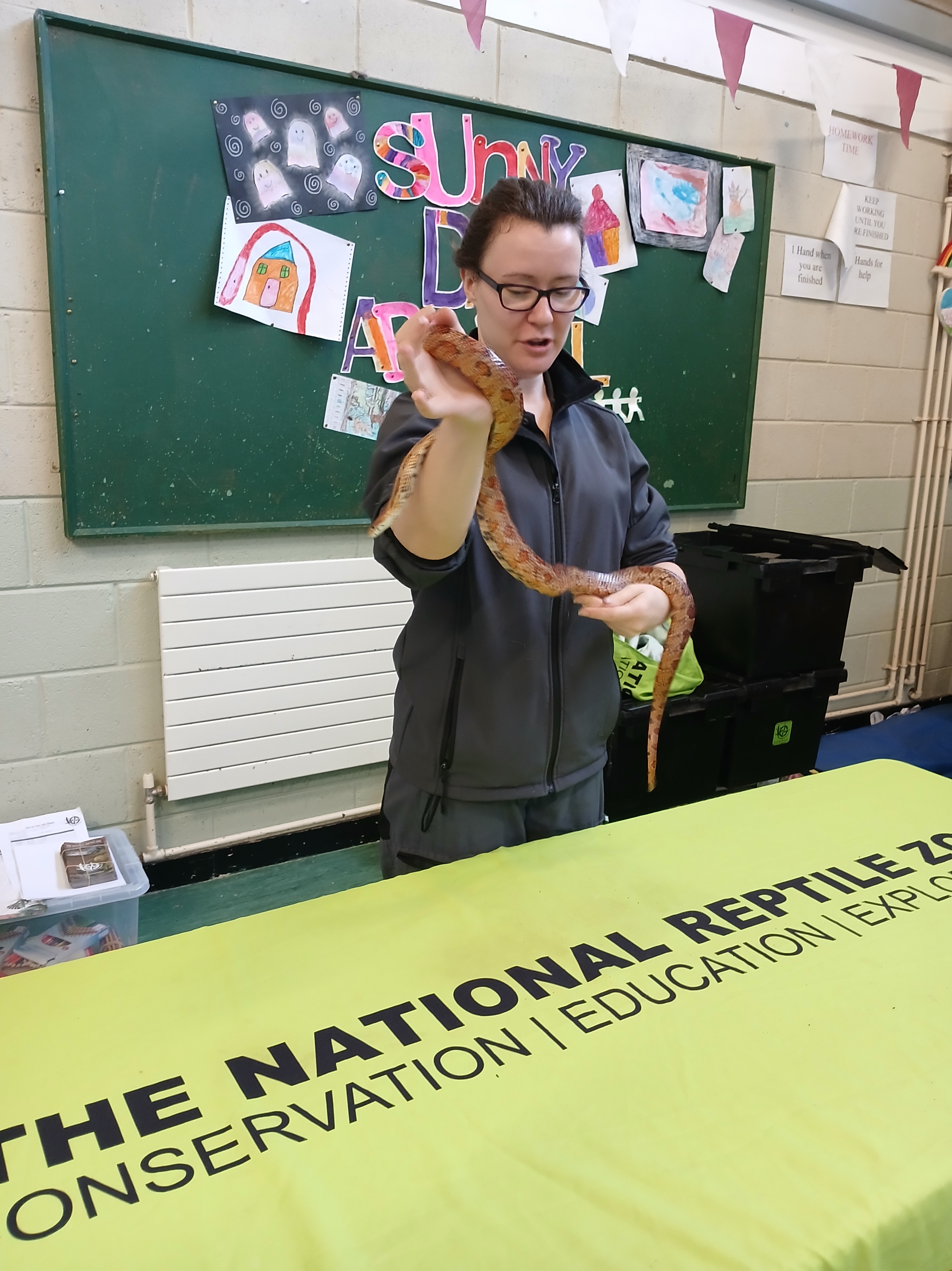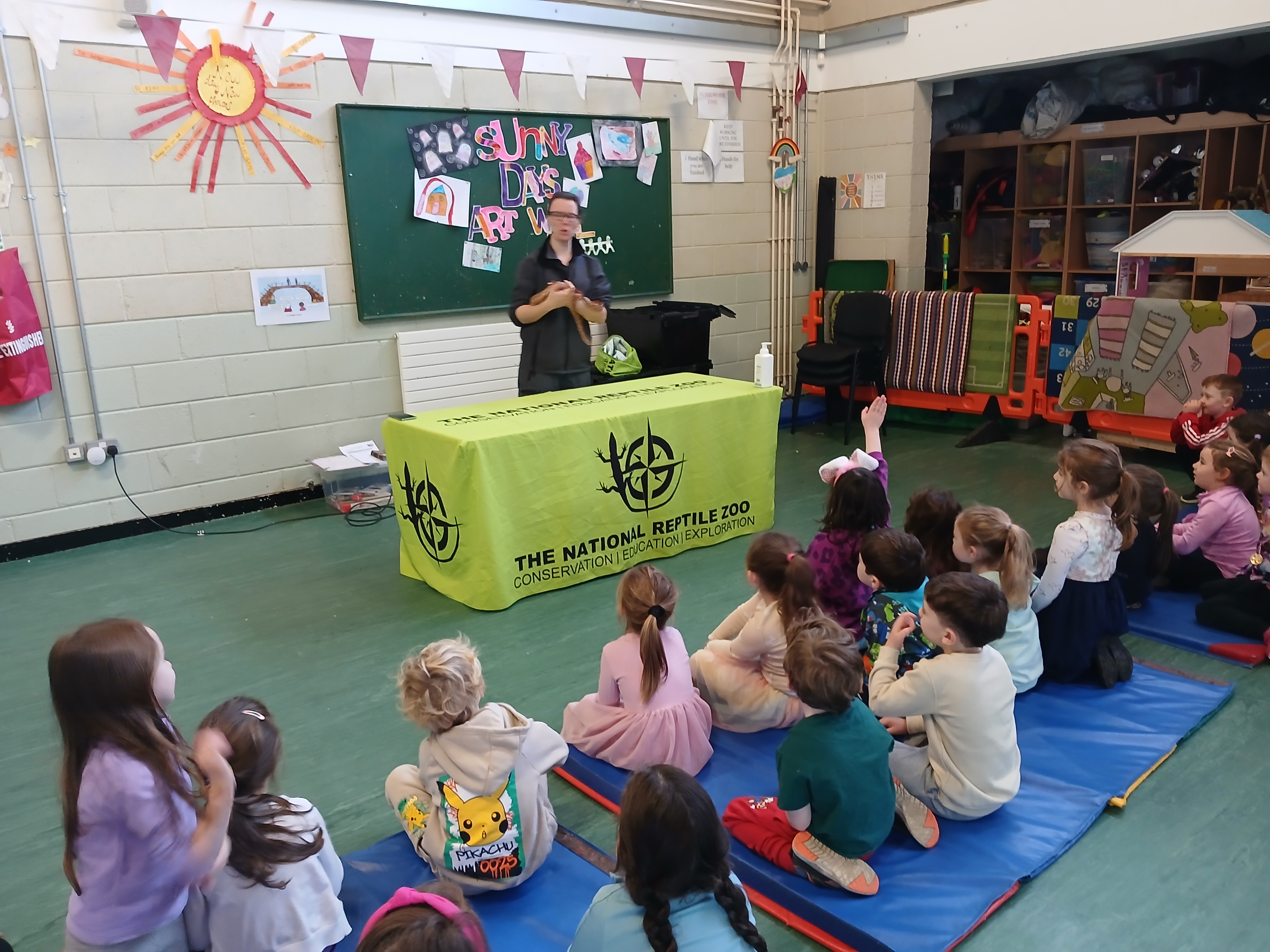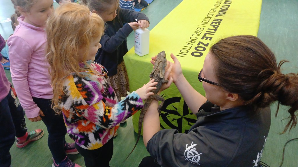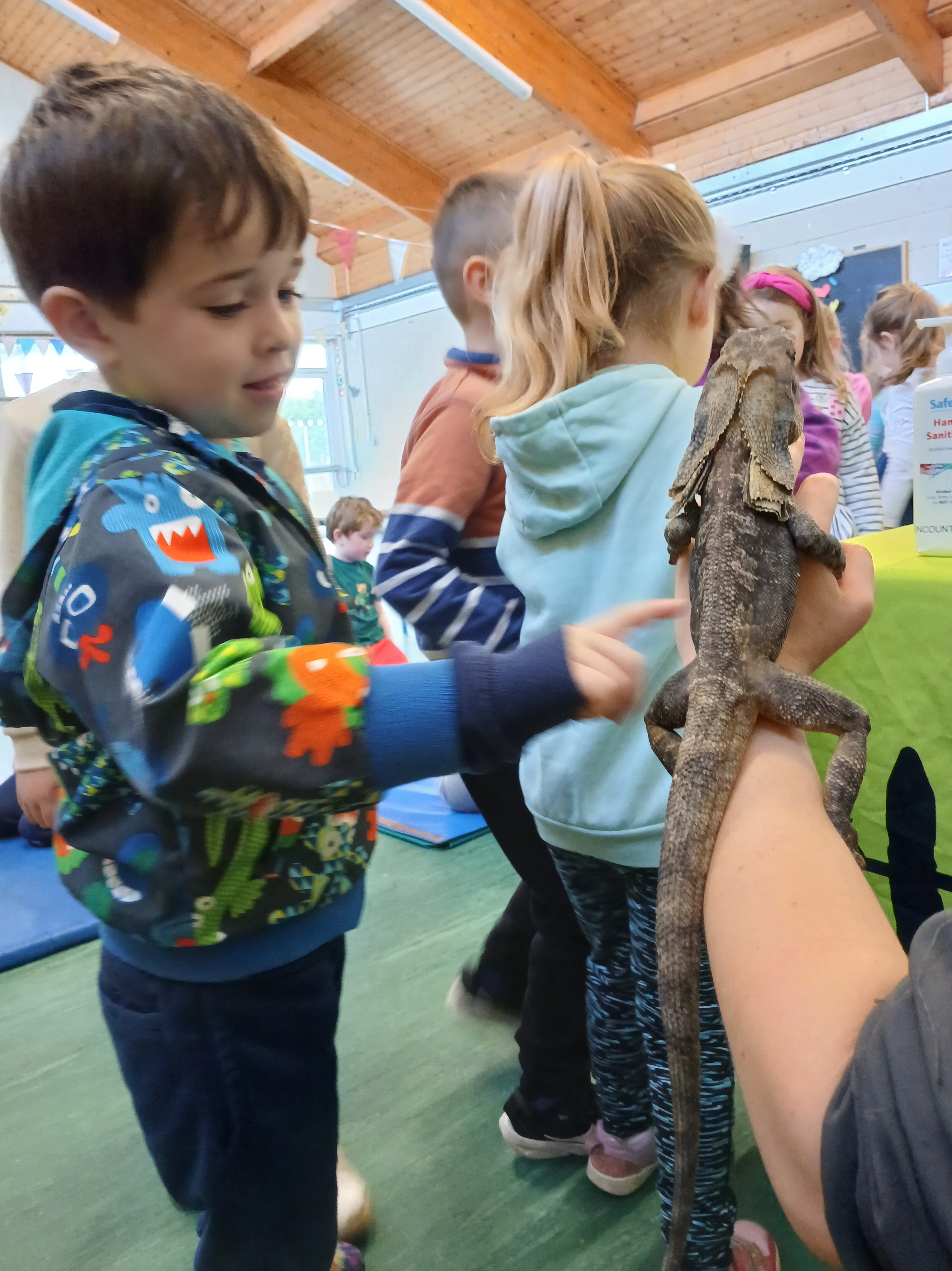 A friendly email from a junior infant parent ensured that the entire school benefited from the generous actions of Ms. Walsh who kindly arranged for the National Reptile Zoo to visit all the boys and girls in Piercestown National School. The junior end got to meet some scaly friends during Science Week. What a brave bunch they were!