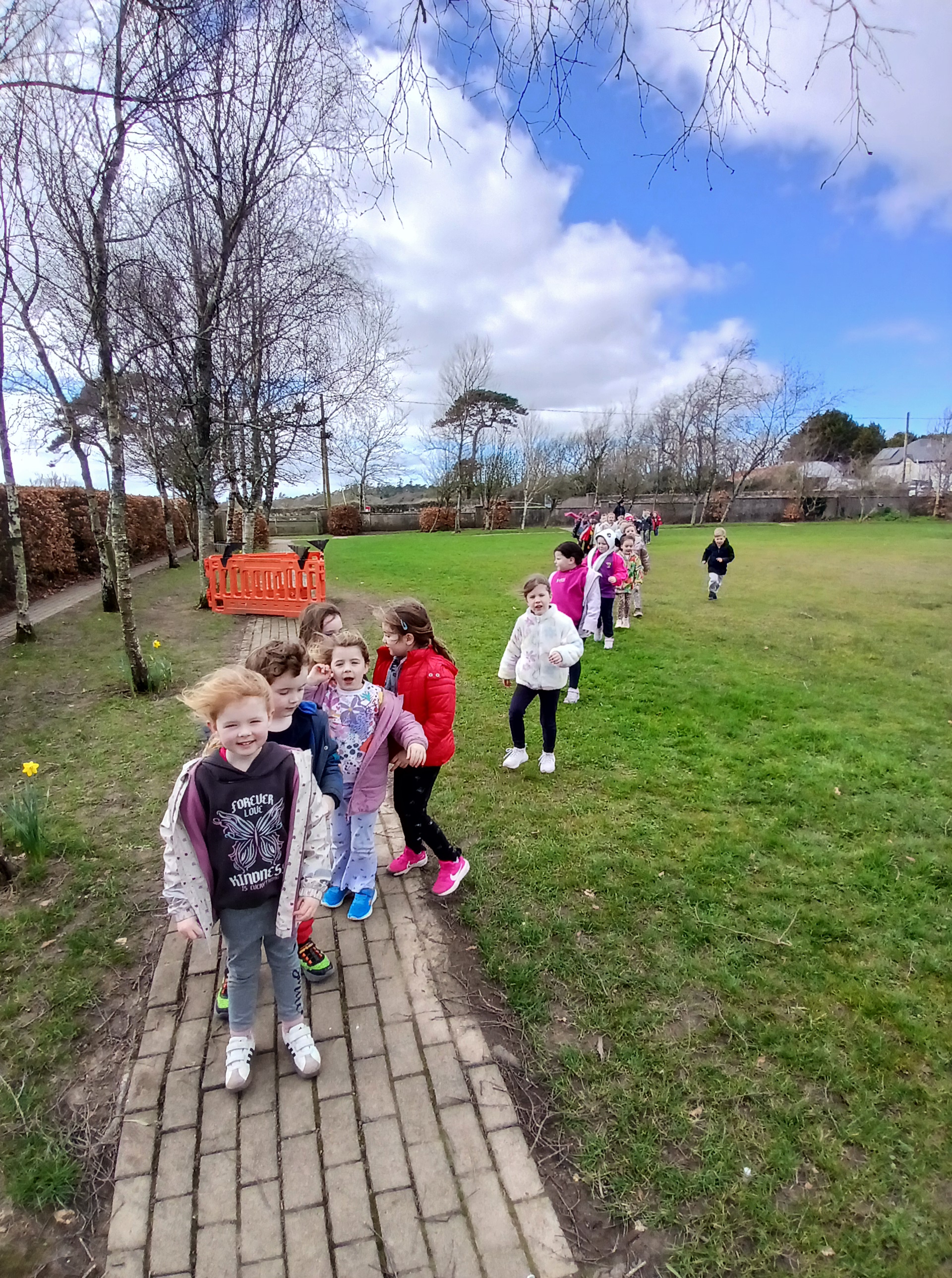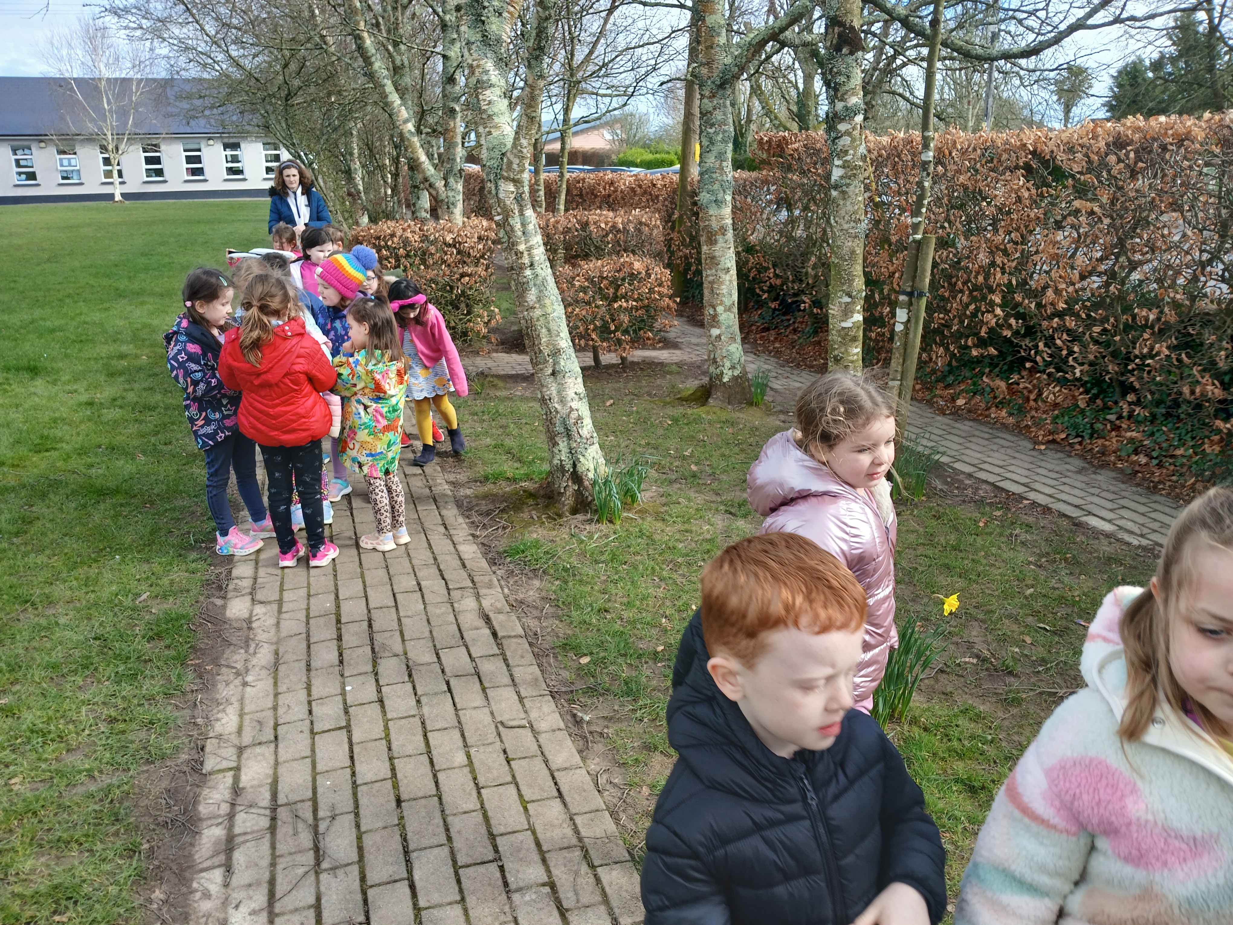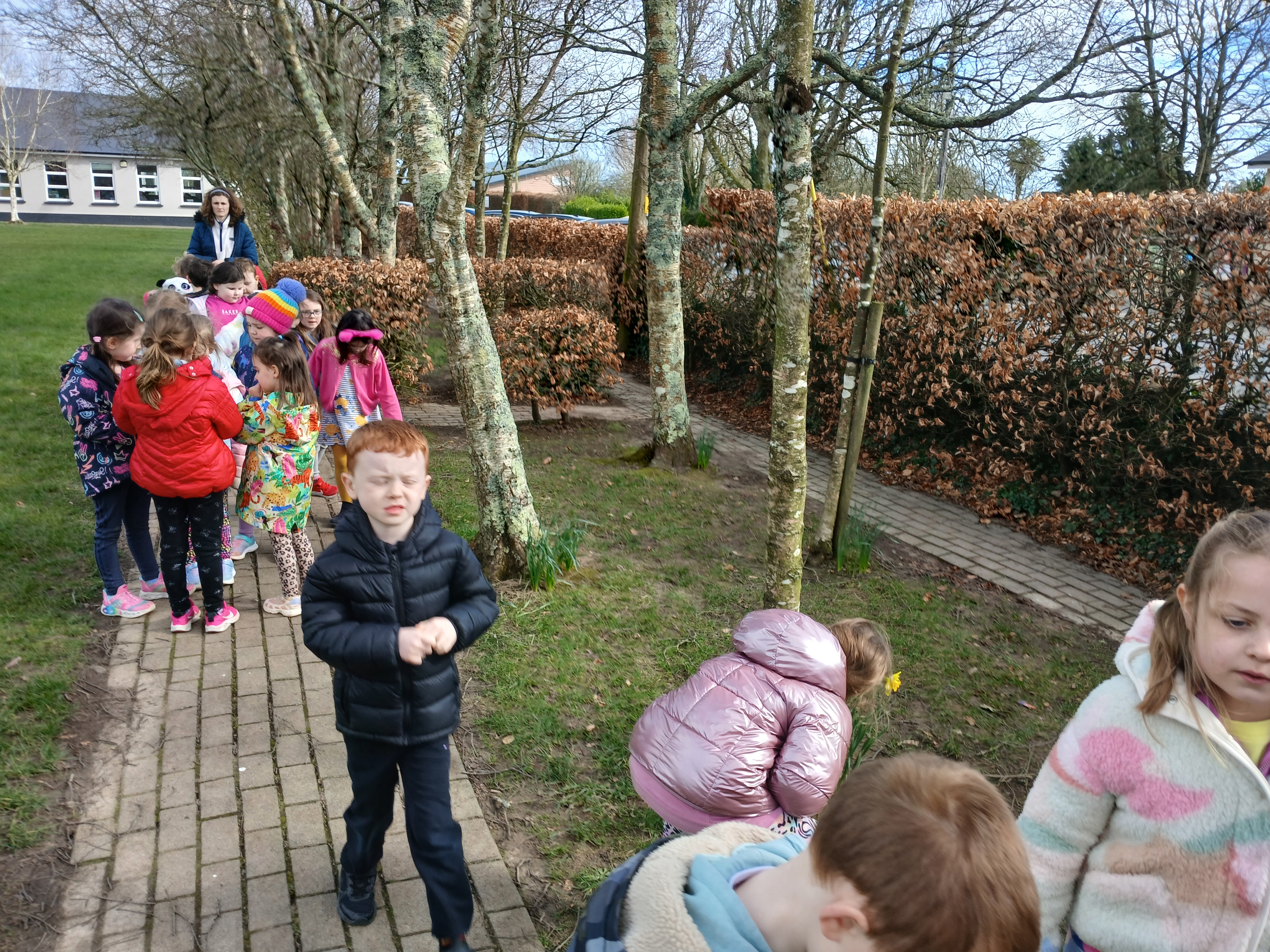 Junior Infants had lovely afternoon, on Tuesday 11th, looking for signs of spring. The air was crisp, and the sun was shining brightly, making it feel like nature was coming back to life after a long winter. We found various daffodils, daisies dotted around our pitches, bird nests, buds on trees and heard some busy birds! Sure signs that spring is here and new life is beginning to grow. We look forward to seeing how the trees, flowers and animals change over the coming weeks.
