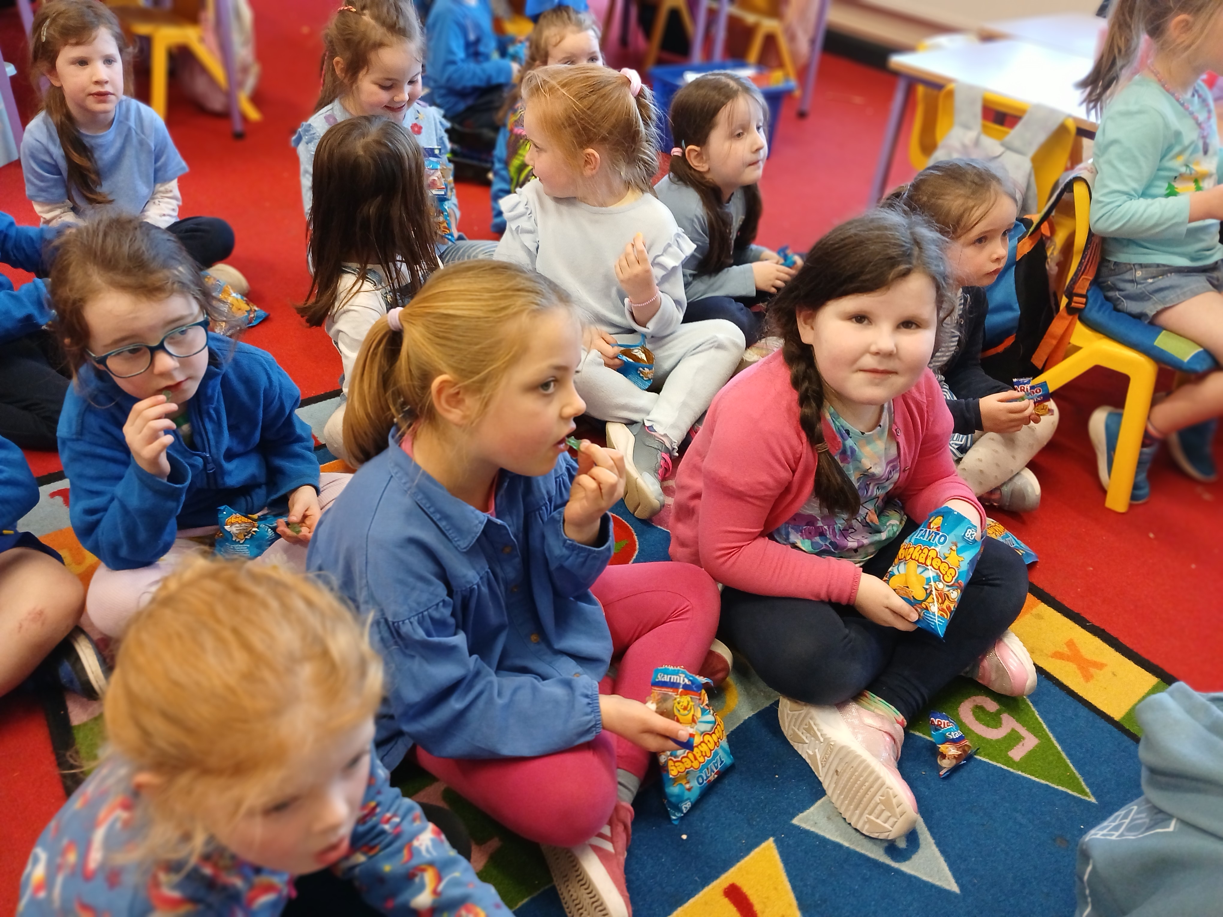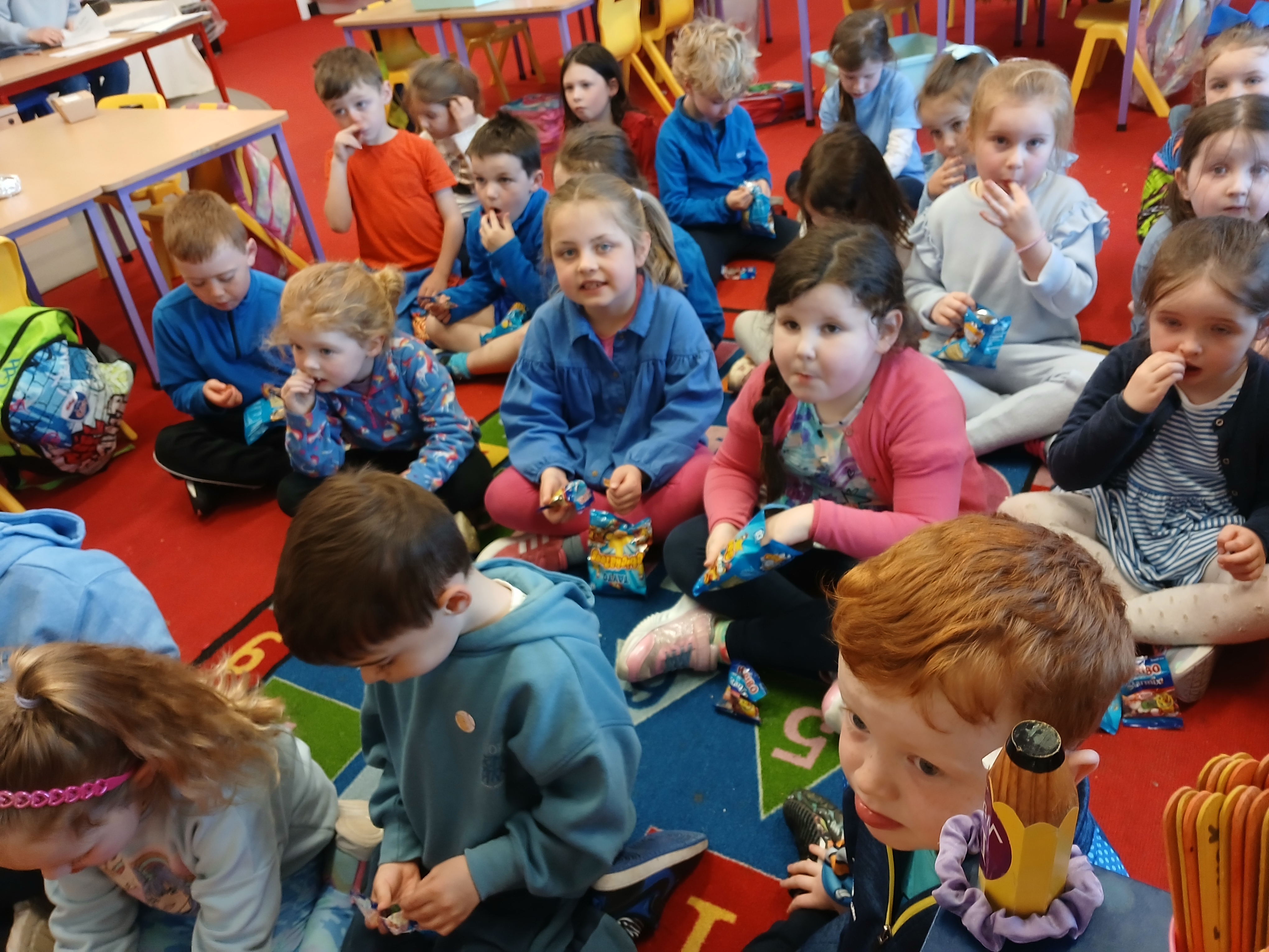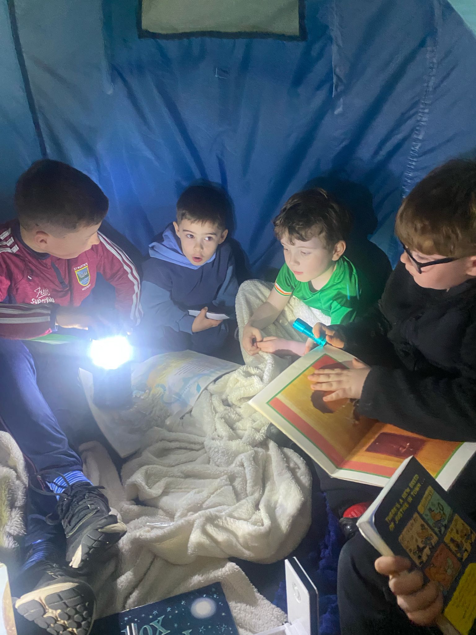 In a delightful twist on a regular school day, the infants were treated to a unique reading session in 3rd class, led by the wonderful Ms. Lyttleton and the ever-enthusiastic 3rd class students. The classroom was transformed into a cozy, enchanting space where the atmosphere was set for an unforgettable storytelling adventure.