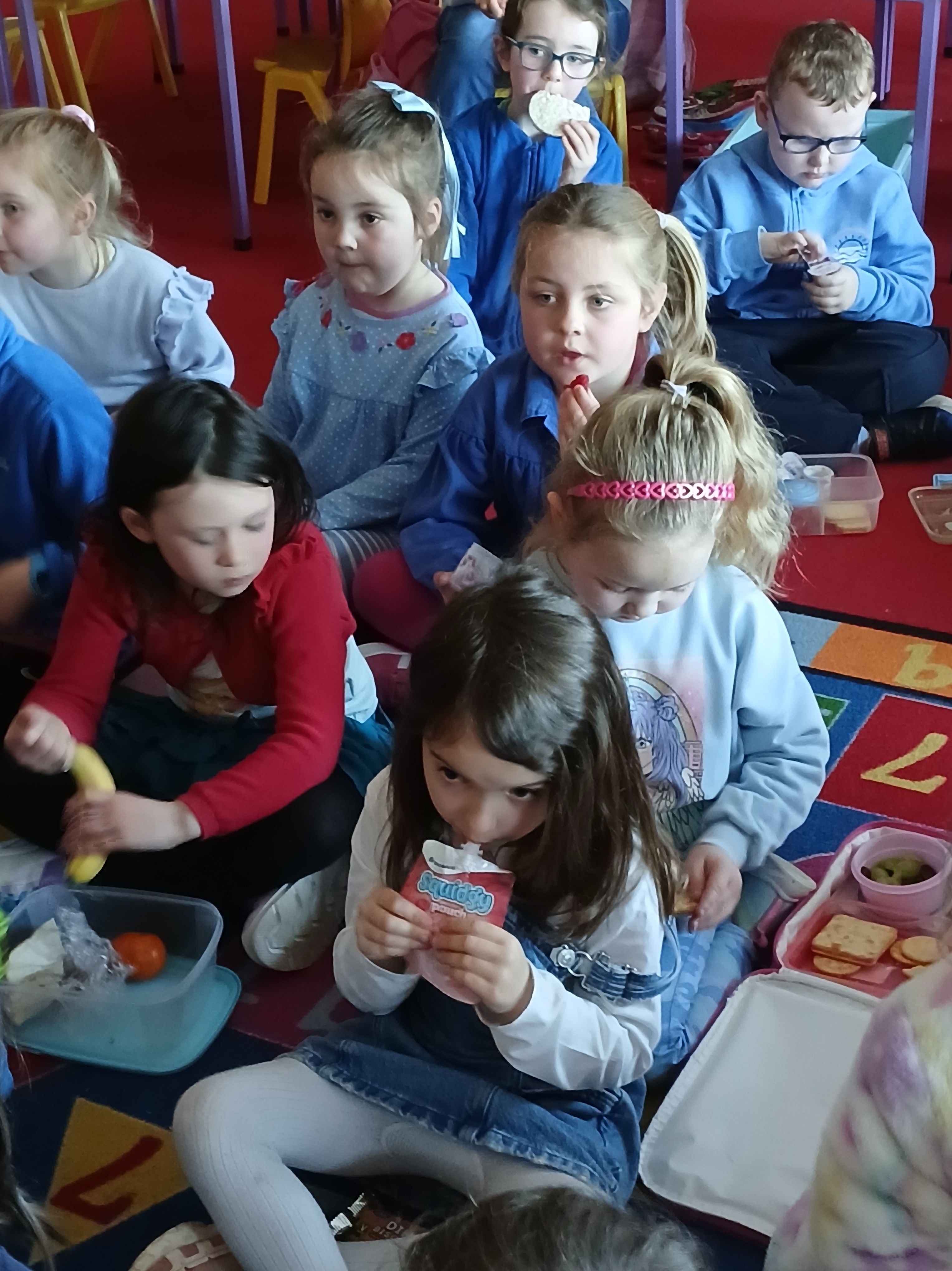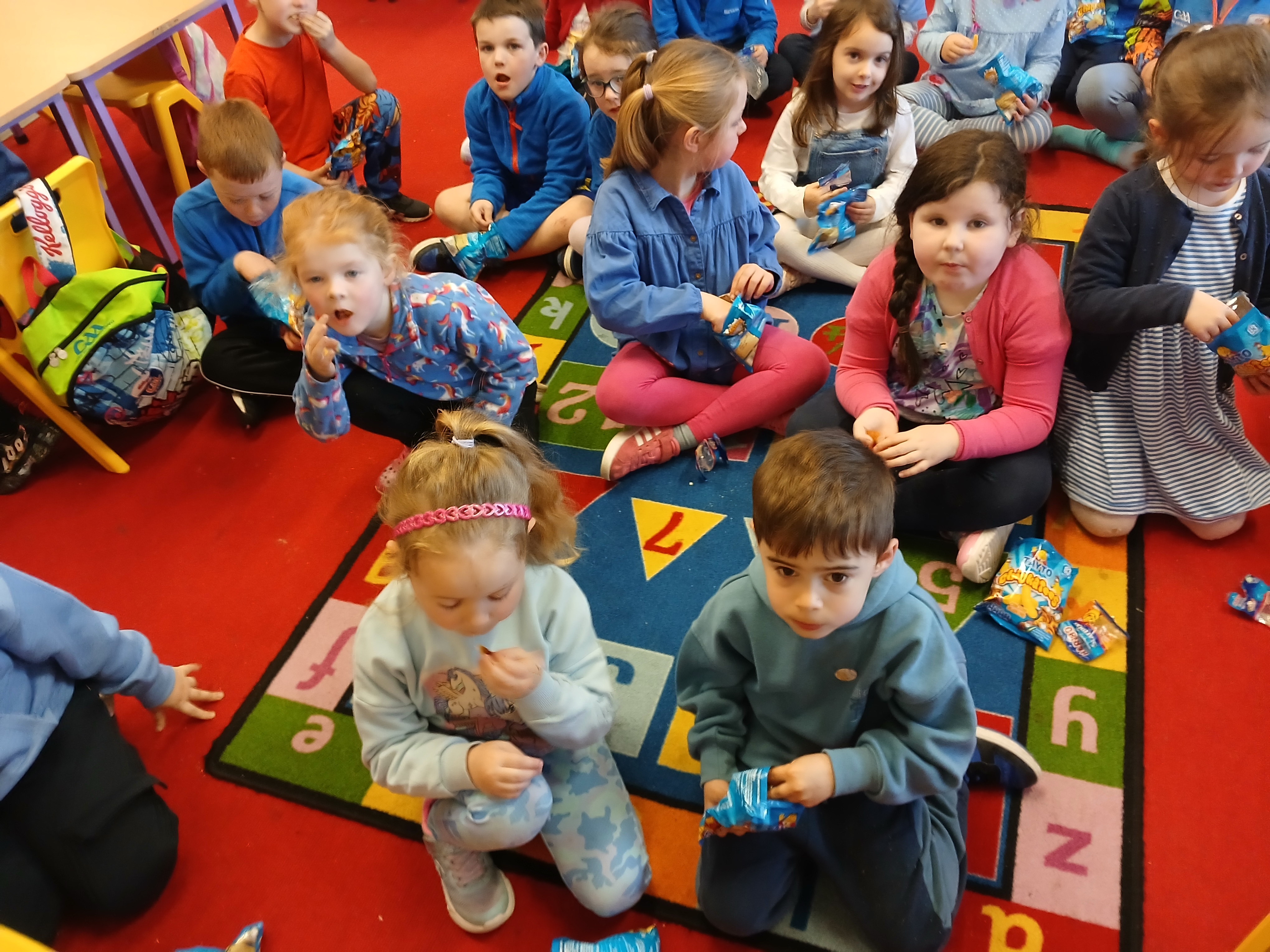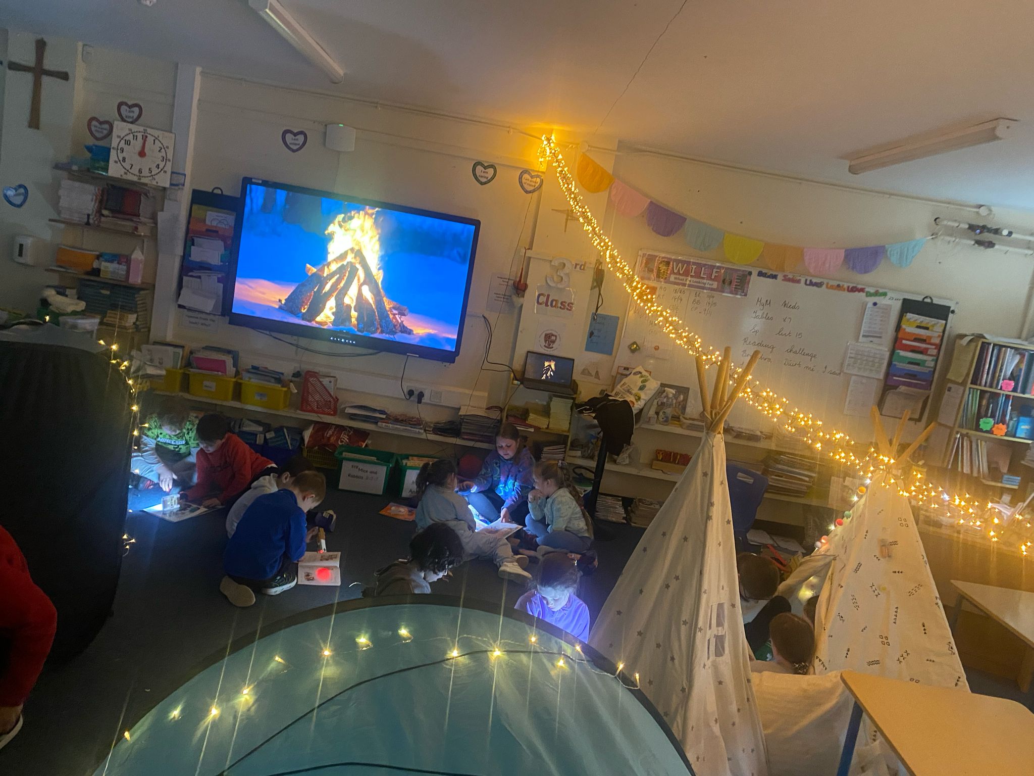 In a delightful twist on a regular school day, the infants were treated to a unique reading session in 3rd class, led by the wonderful Ms. Lyttleton and the ever-enthusiastic 3rd class students. The classroom was transformed into a cozy, enchanting space where the atmosphere was set for an unforgettable storytelling adventure.