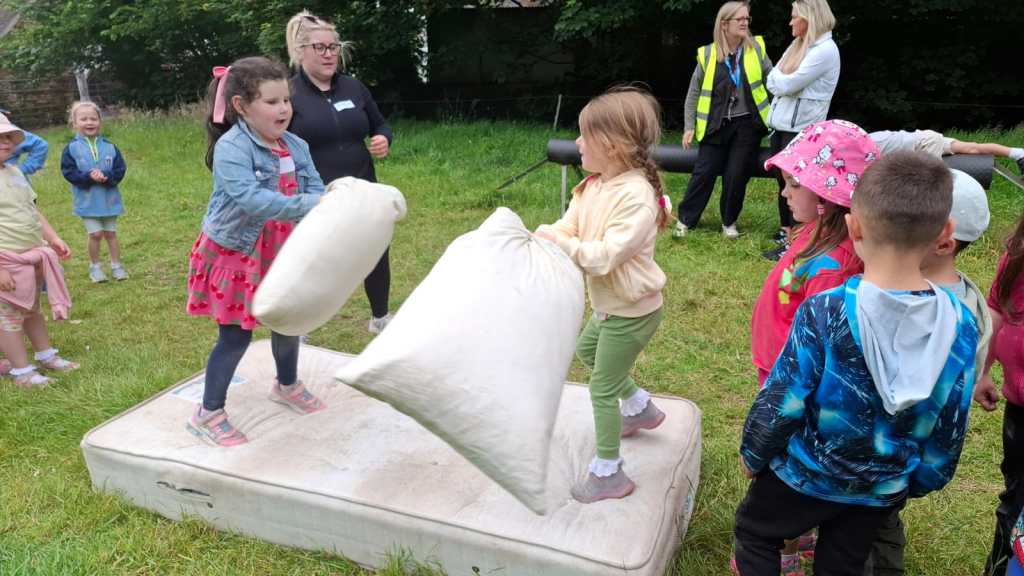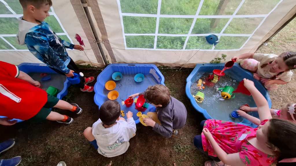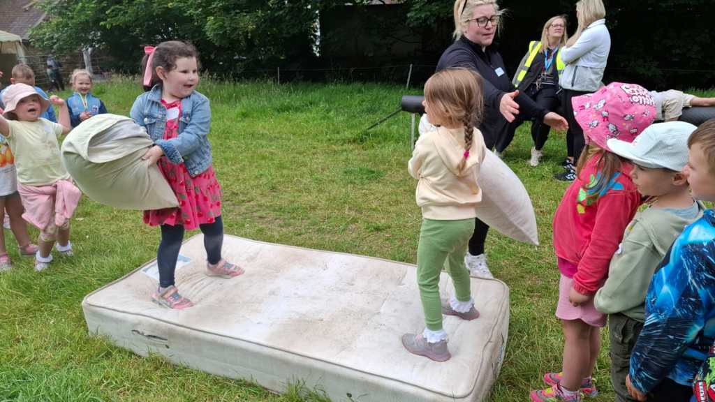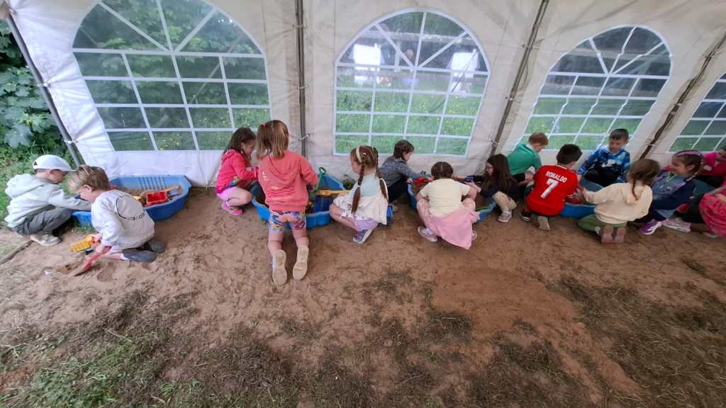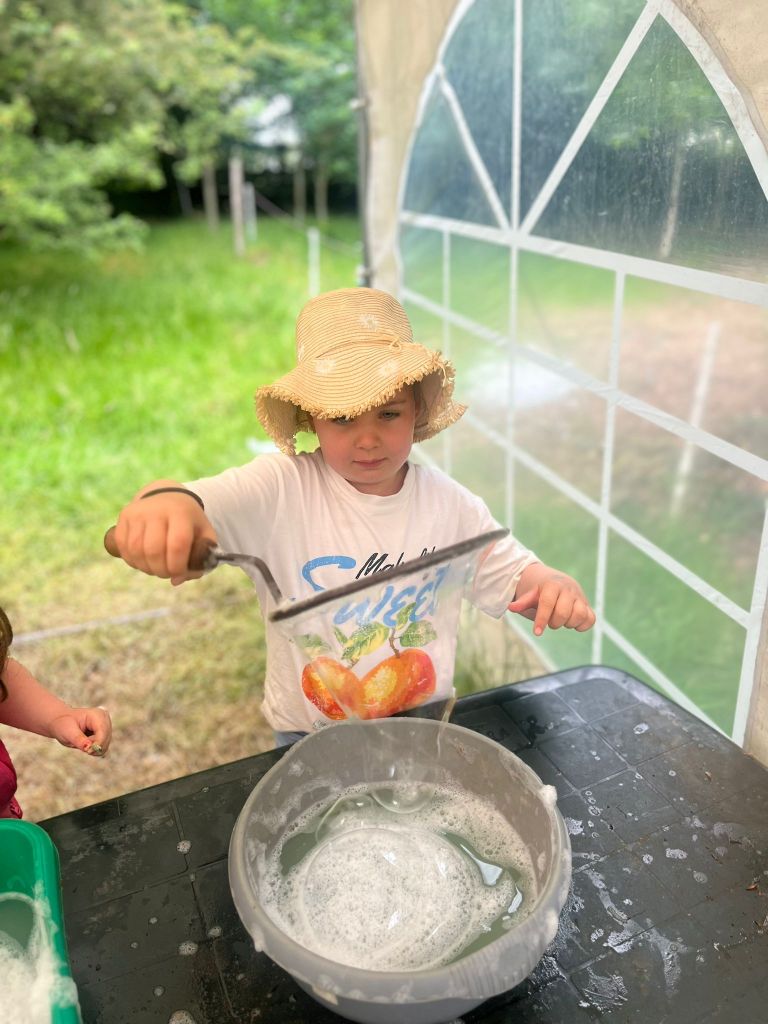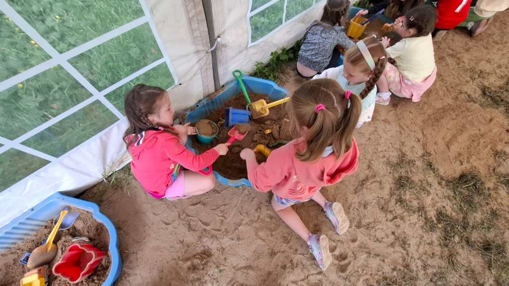 The afternoon began with plenty of energy and excitement as the children danced to our songs we had learned about teddies…lucky coincidence. Of course, no teddy bear picnic would be complete without the teddies themselves, so all the students brought along their cuddly companions, ready for an afternoon of fun and games. Special treats for the children were supplied: teddy bear jelly, teddy bear crisps and delicious cakes to enjoy while relaxing in the sun. The children laid out their blankets and settled in the tranquil outdoor space, making the most of the beautiful day. The children had a blast exploring the outdoor play area, where they had endless fun on the wobbly bridge and spinner.