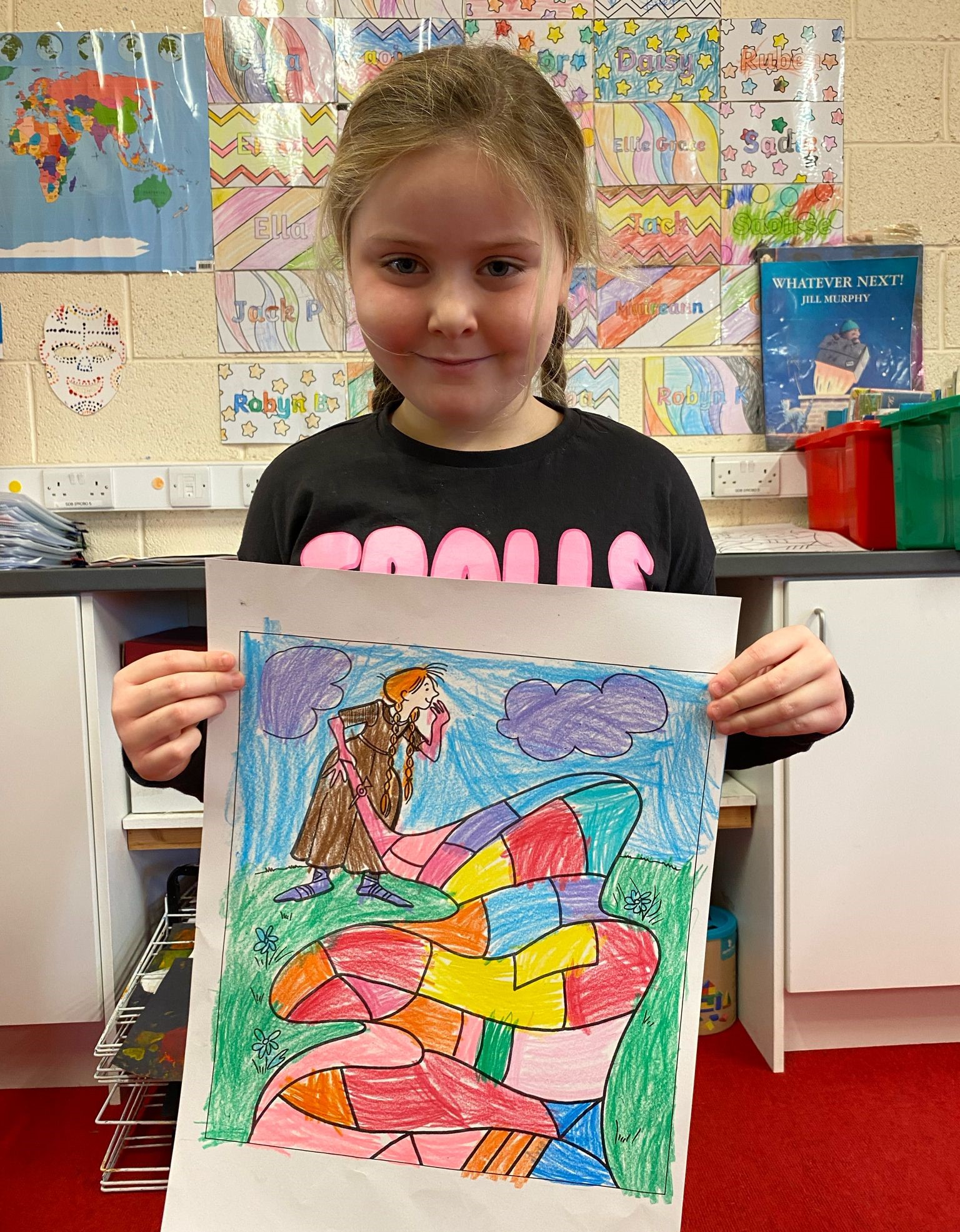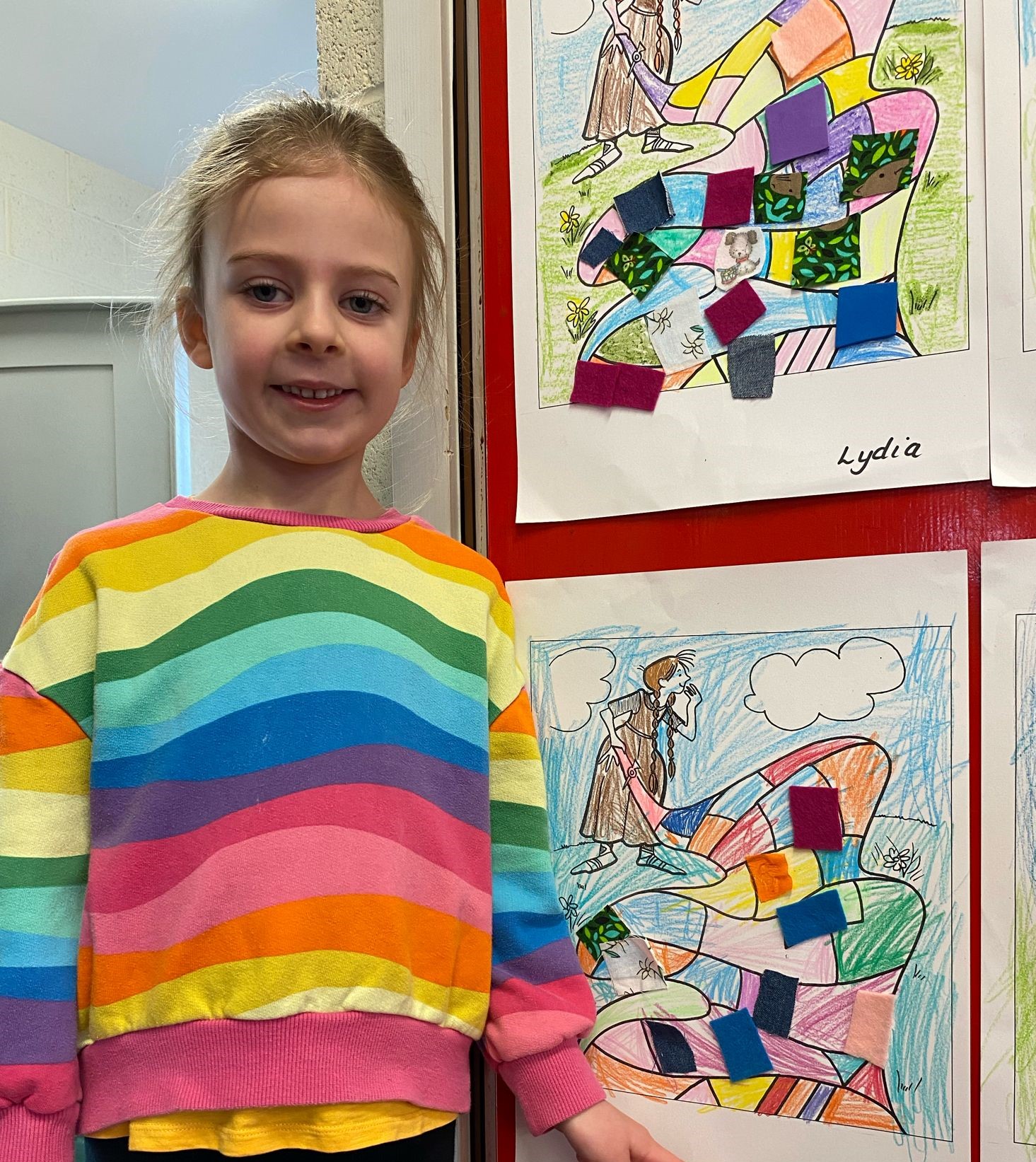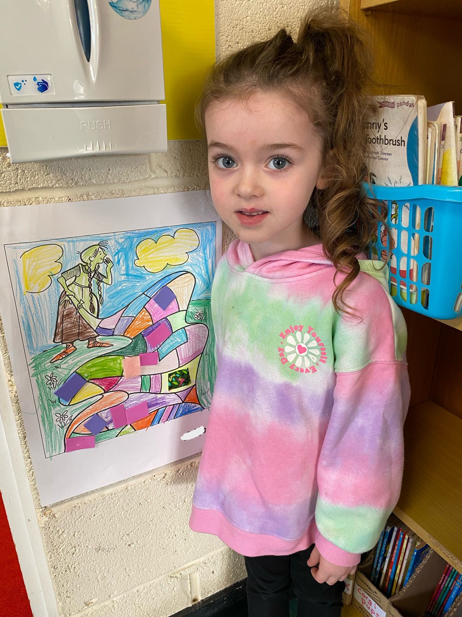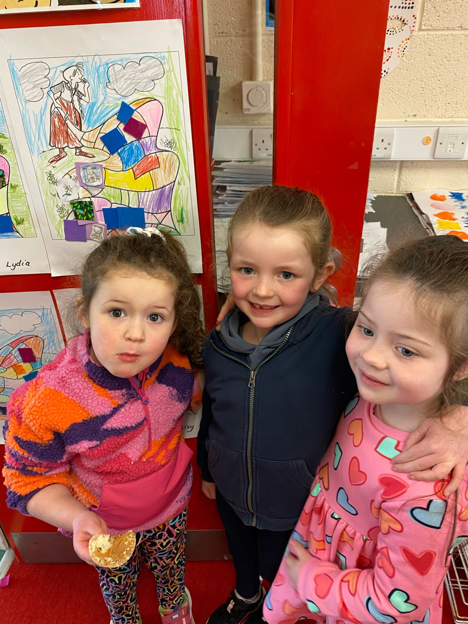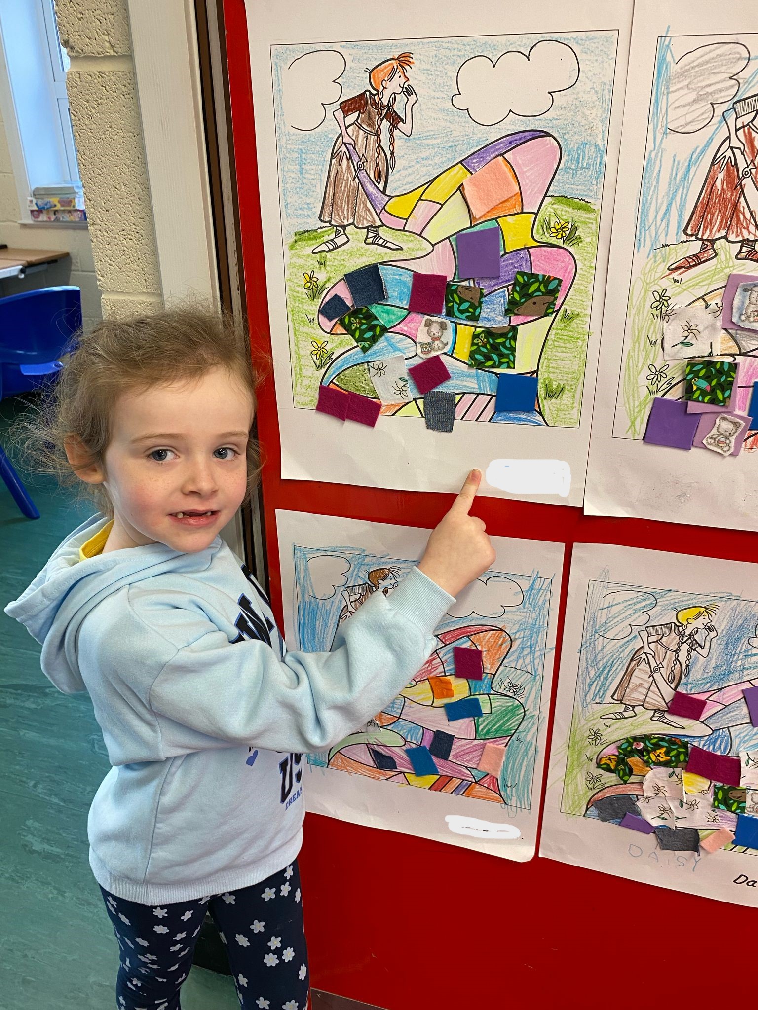 Junior Infants immersed themselves in the history and traditions of Saint Brigid today to celebrate her feast day. They were enthralled in the story of her cloak and loved decorating their own with colours and fabrics.