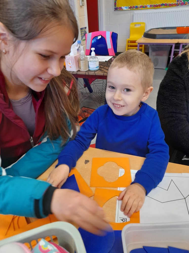 Junior Infants enjoyed all the magic of Christmas this December. Along with the ordinary, everyday learning they got to enjoy the Carol Service rehearsal and big event on the evening of the 13th December, hot chocolate rewards and North Pole Aistear.