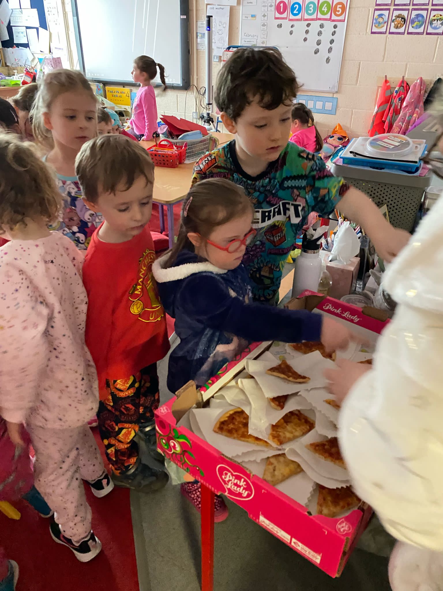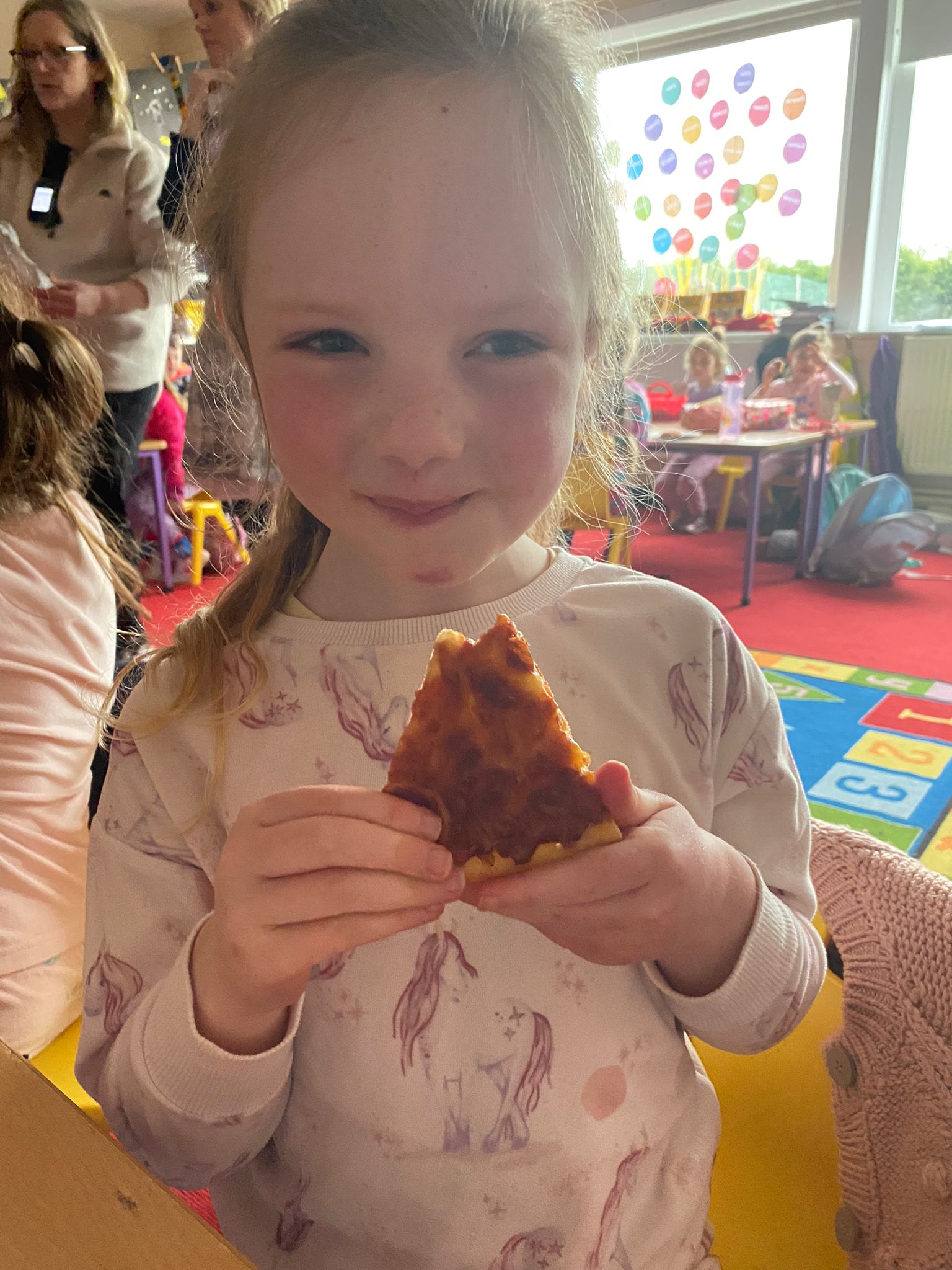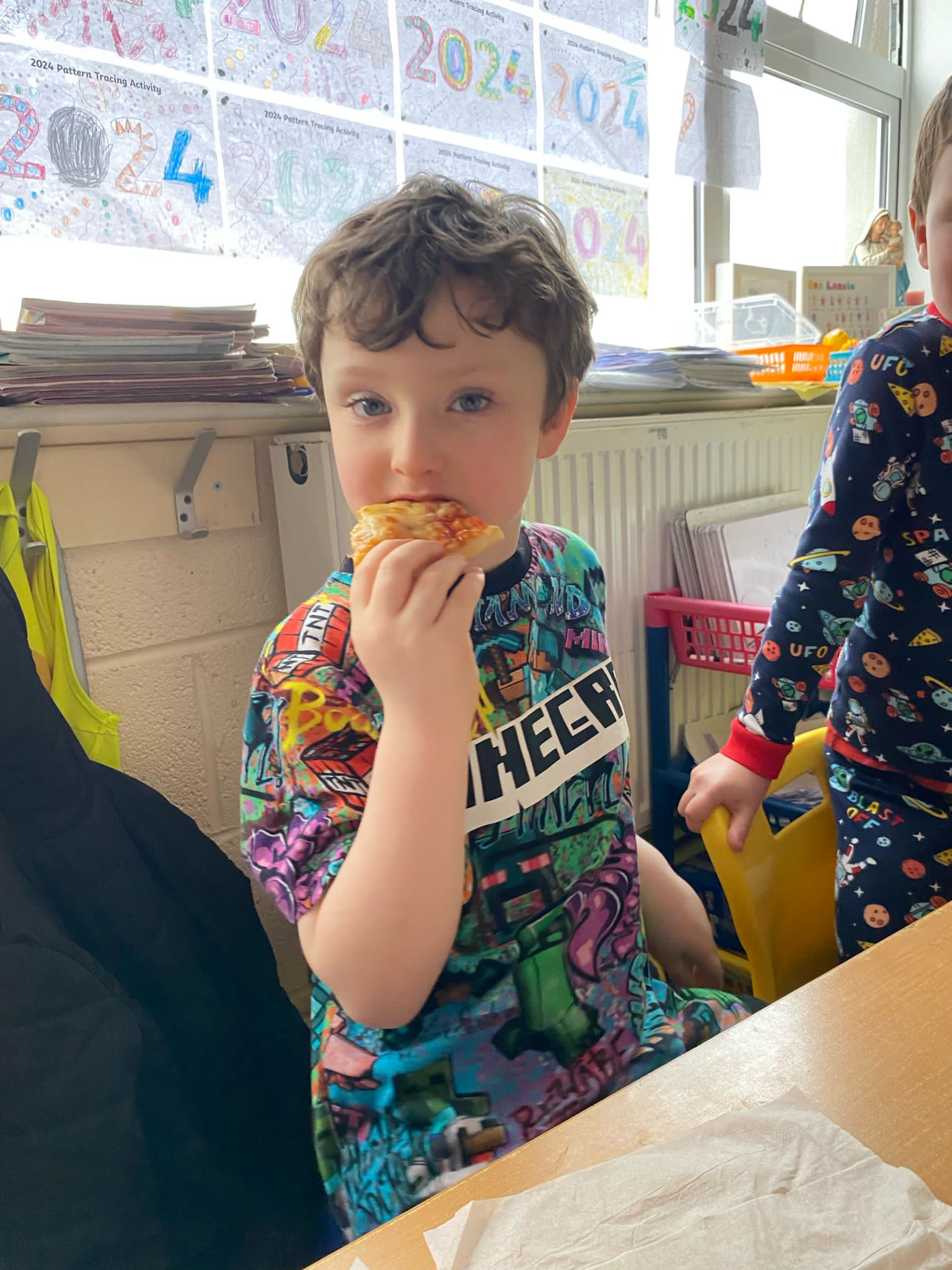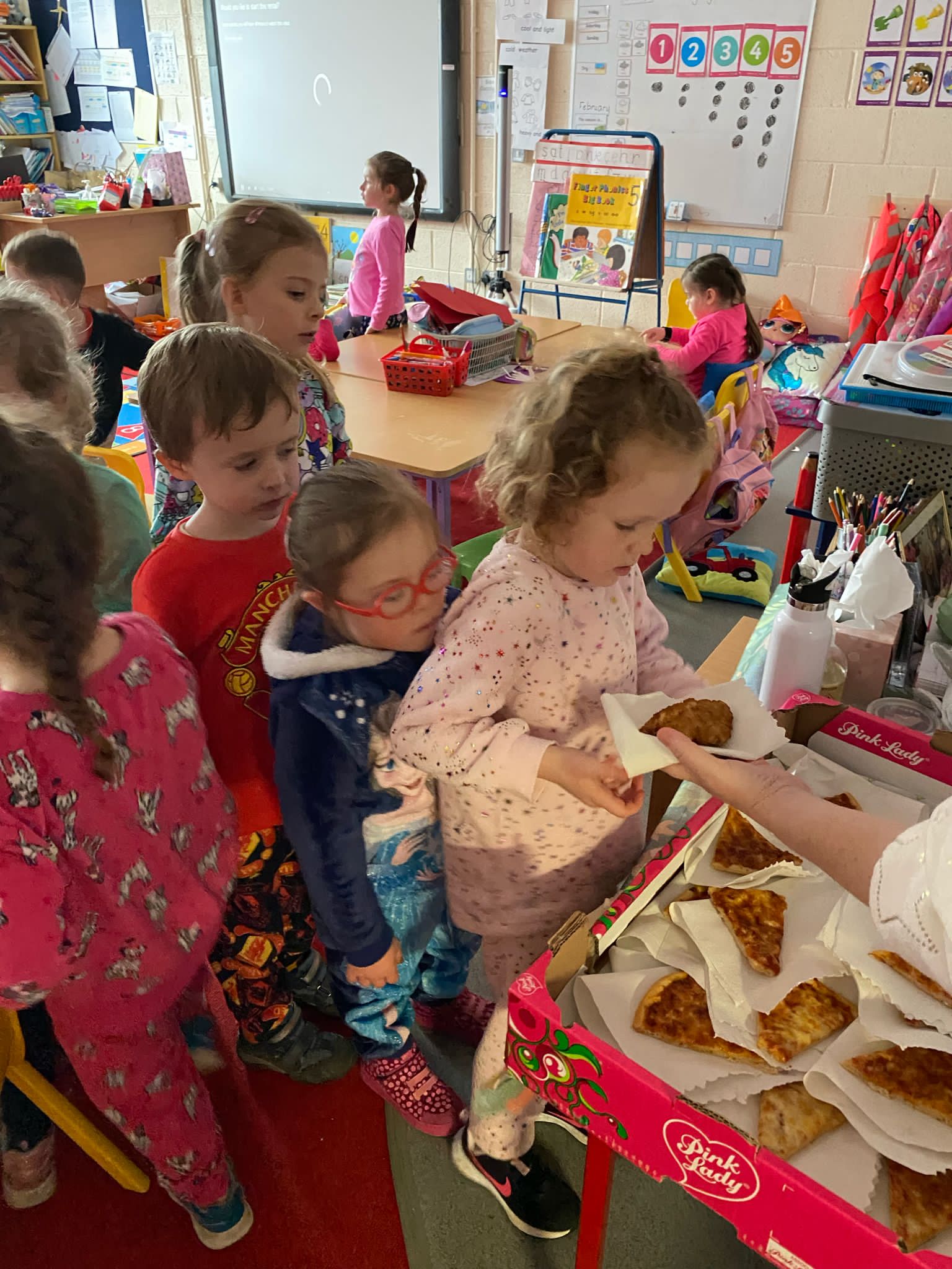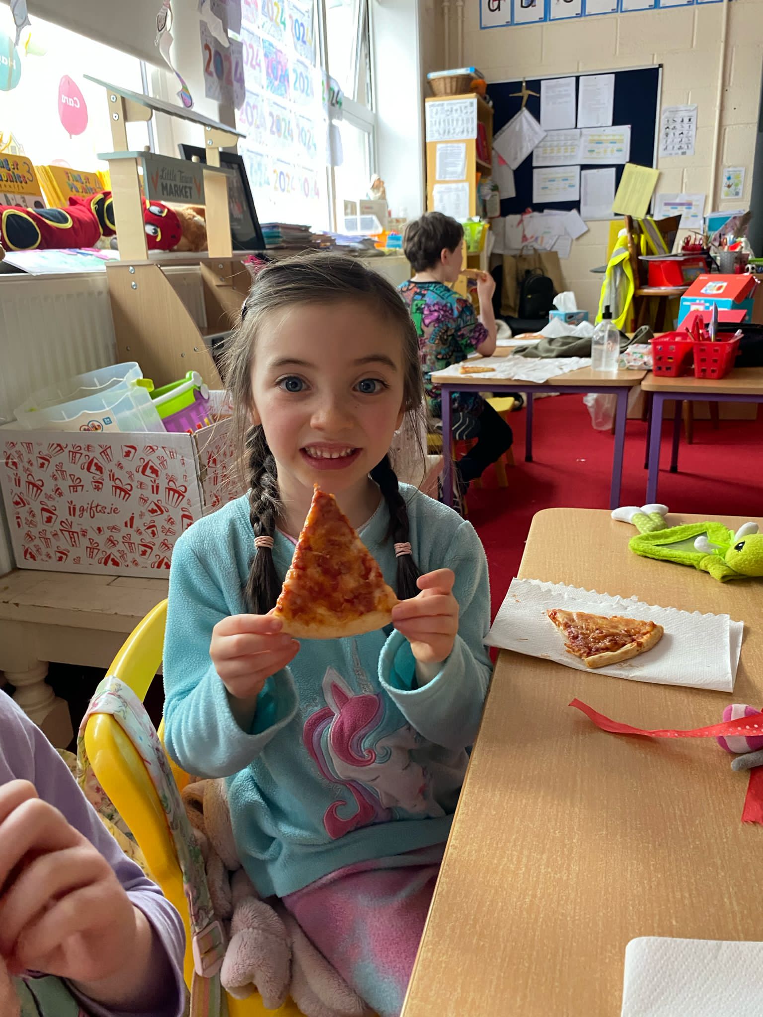 Junior Infants worked diligently for the month of October and were awarded a PIZZA PARTY for being Class of the Month. They had a great afternoon stuffing themselves with pizza, popcorn and treats!