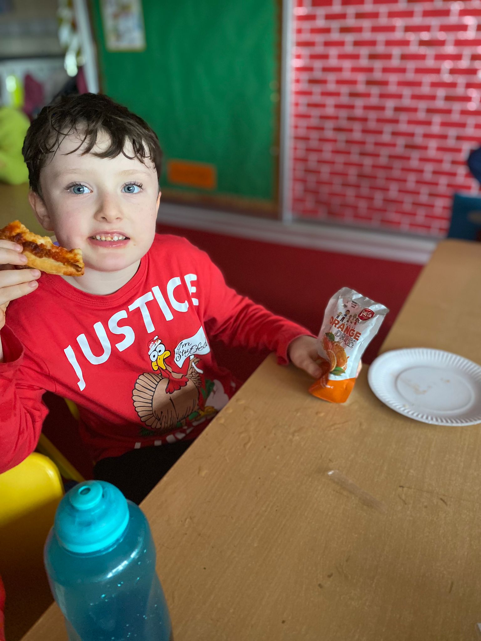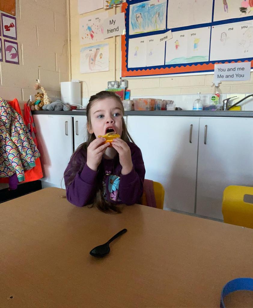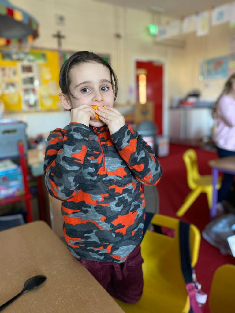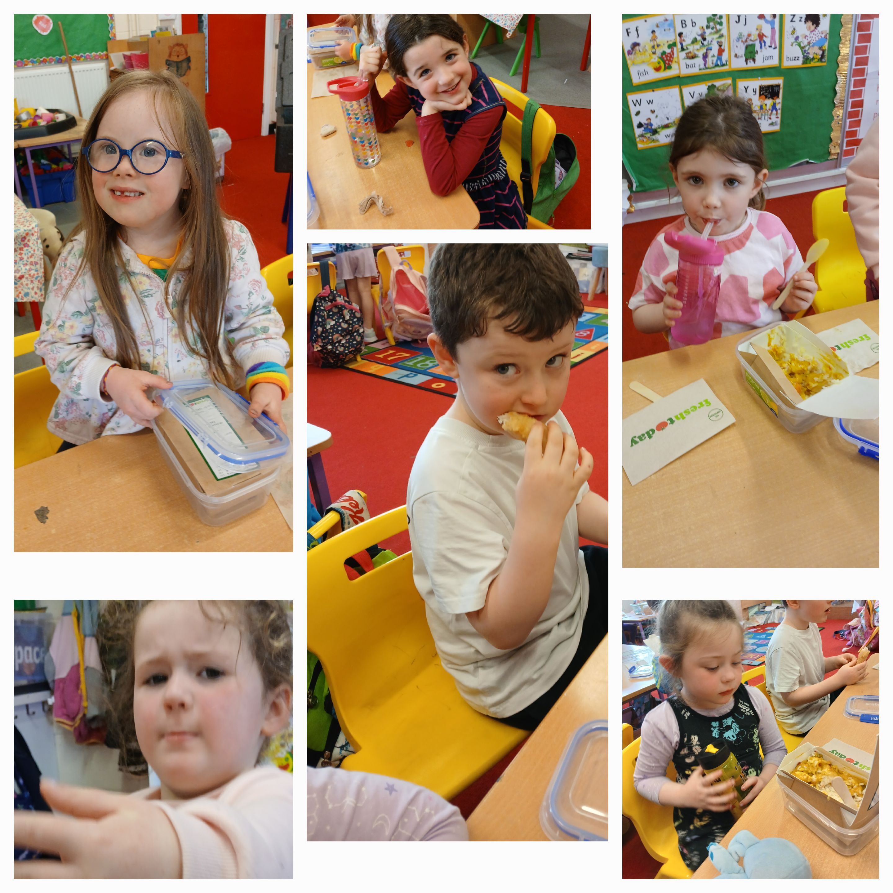 Thankfully Elizabeths’s version of events wasn’t what the children in Junior Infants experienced when they received their very first hot school lunch! It was (almost) smiles all round and a huge thumbs up from them all. Hopefully the novelty won’t wear off and we will be sending them home with full bellies each day!