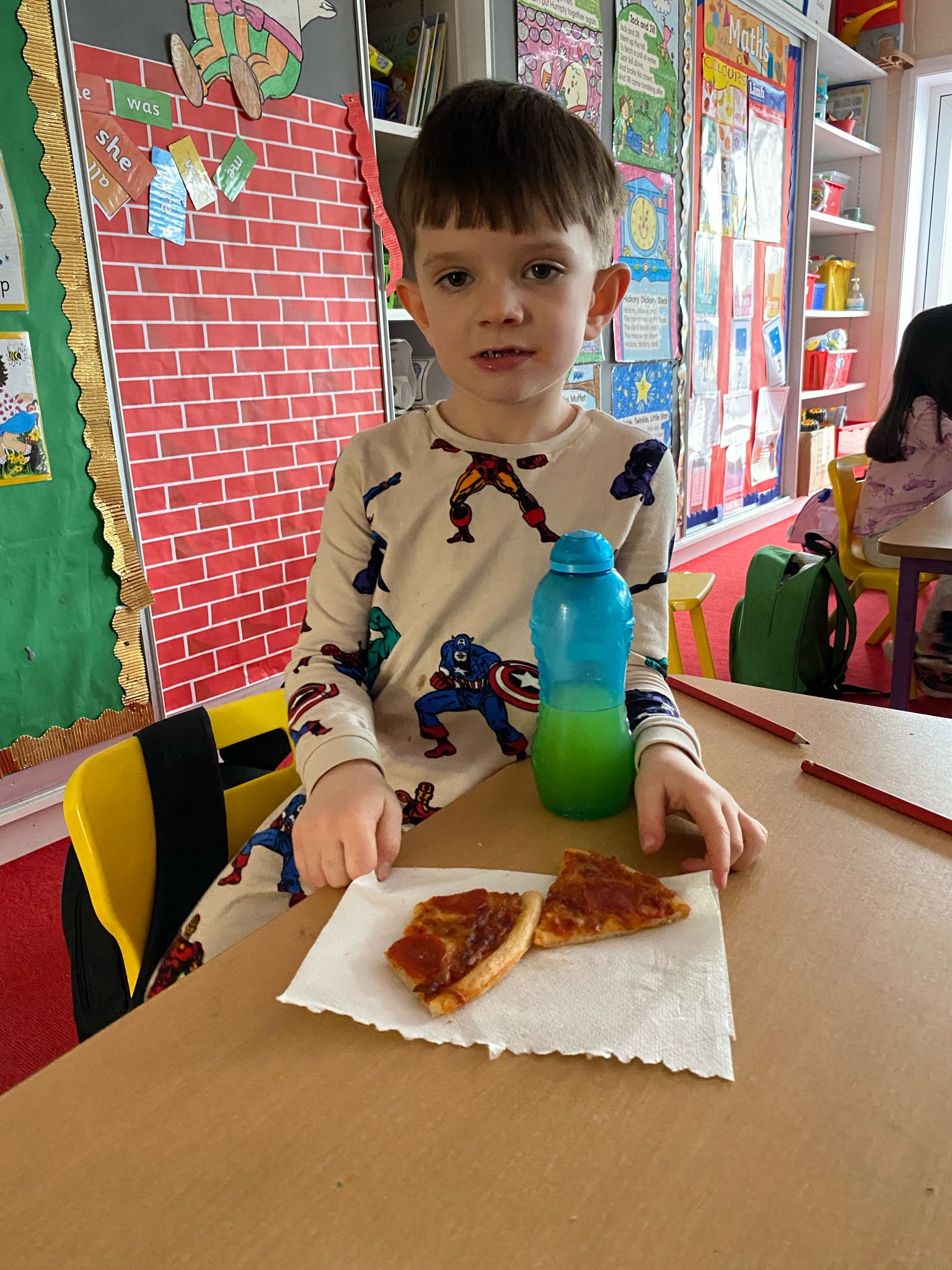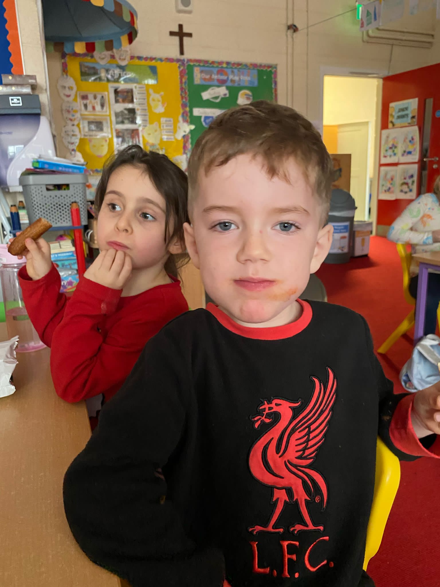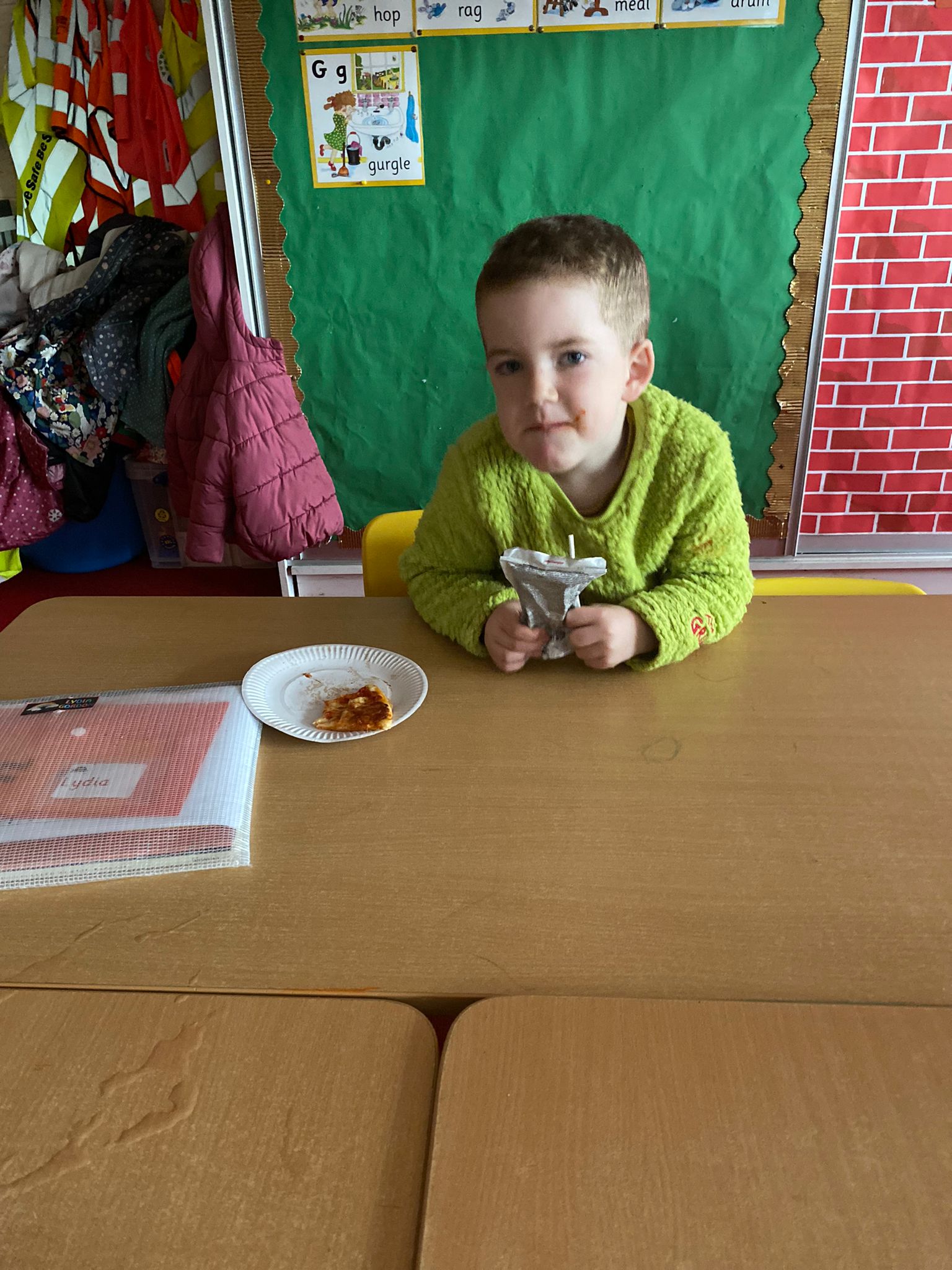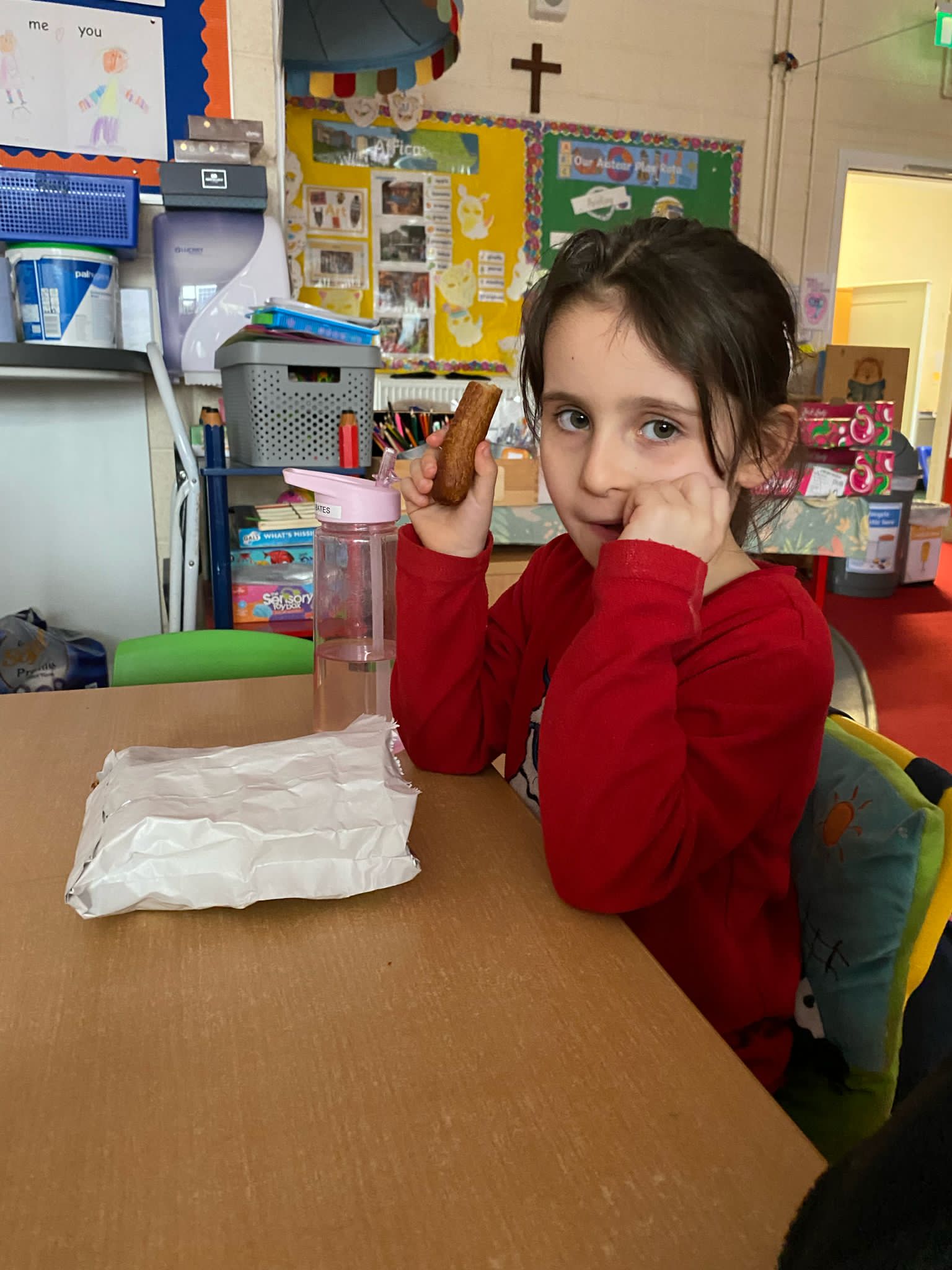 Thankfully Elizabeths’s version of events wasn’t what the children in Junior Infants experienced when they received their very first hot school lunch! It was (almost) smiles all round and a huge thumbs up from them all. Hopefully the novelty won’t wear off and we will be sending them home with full bellies each day!
