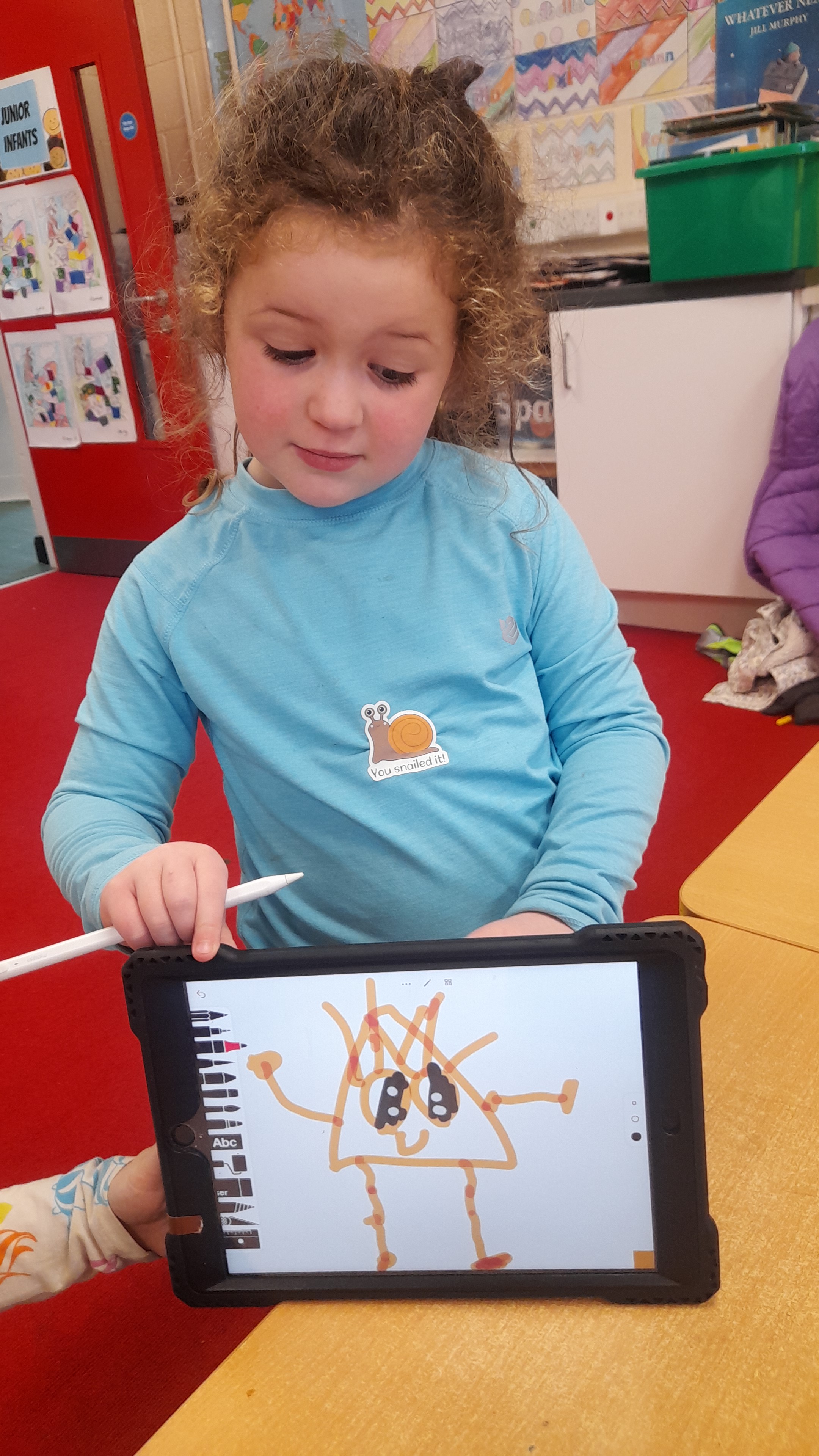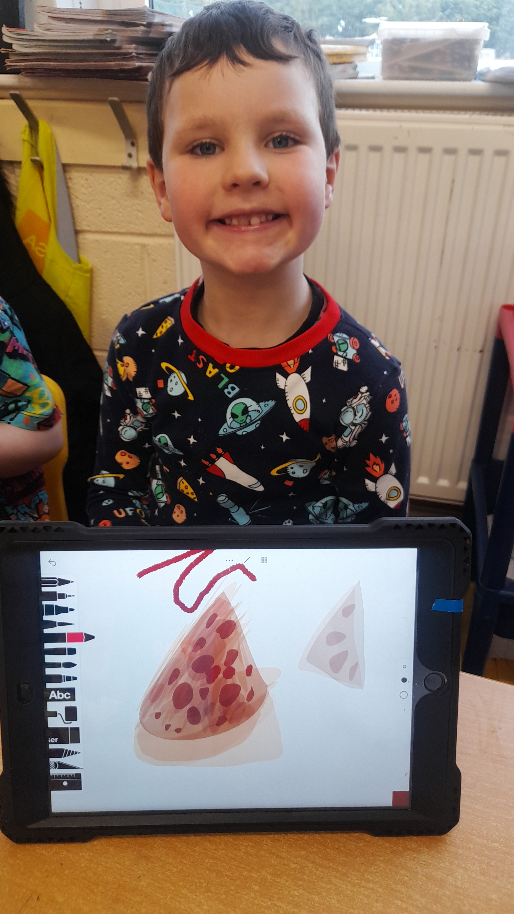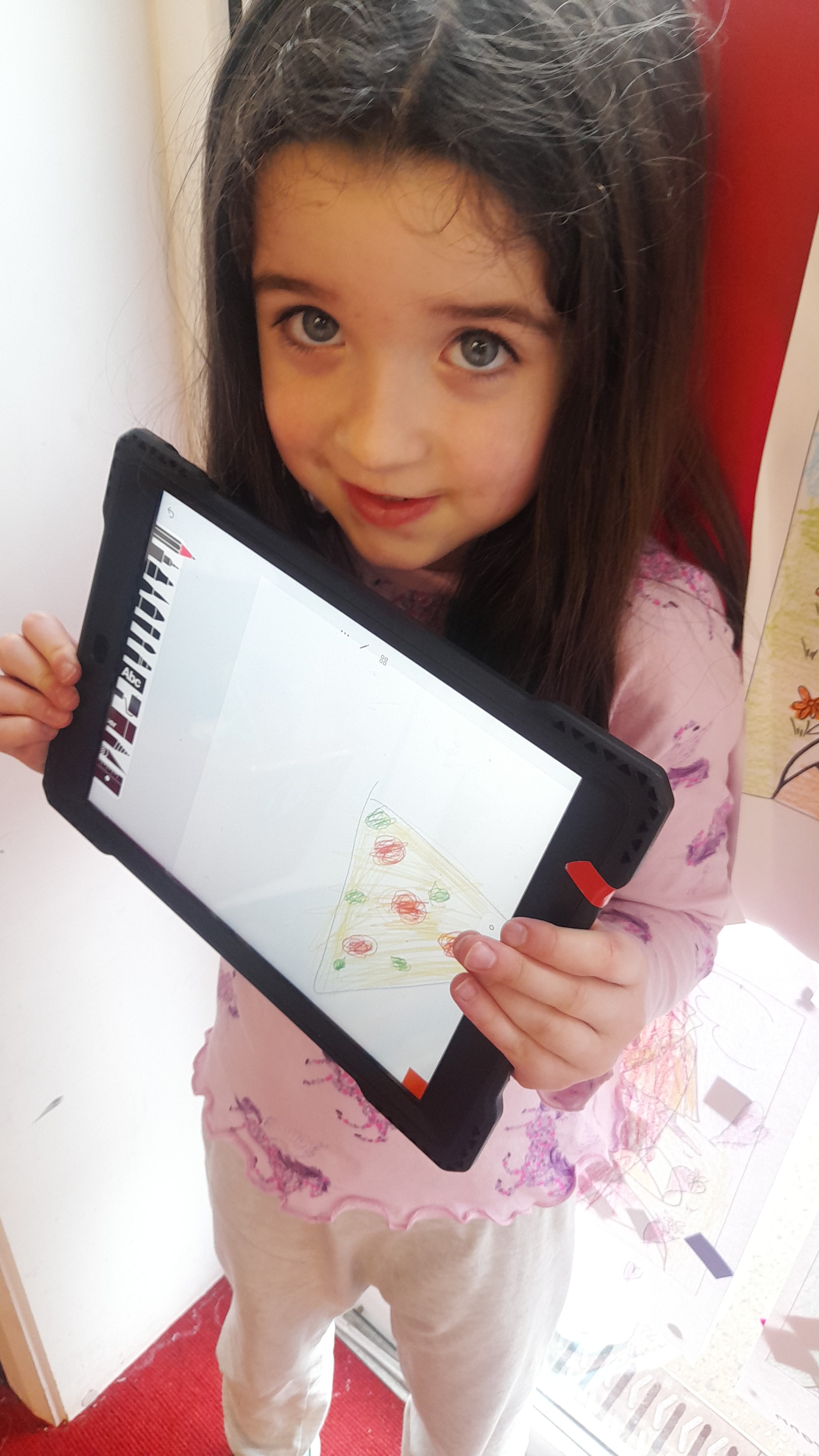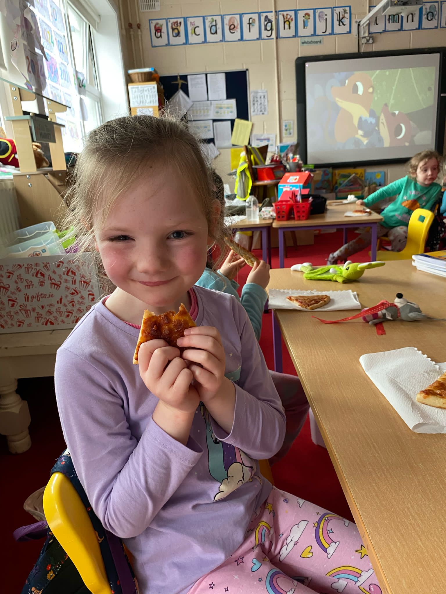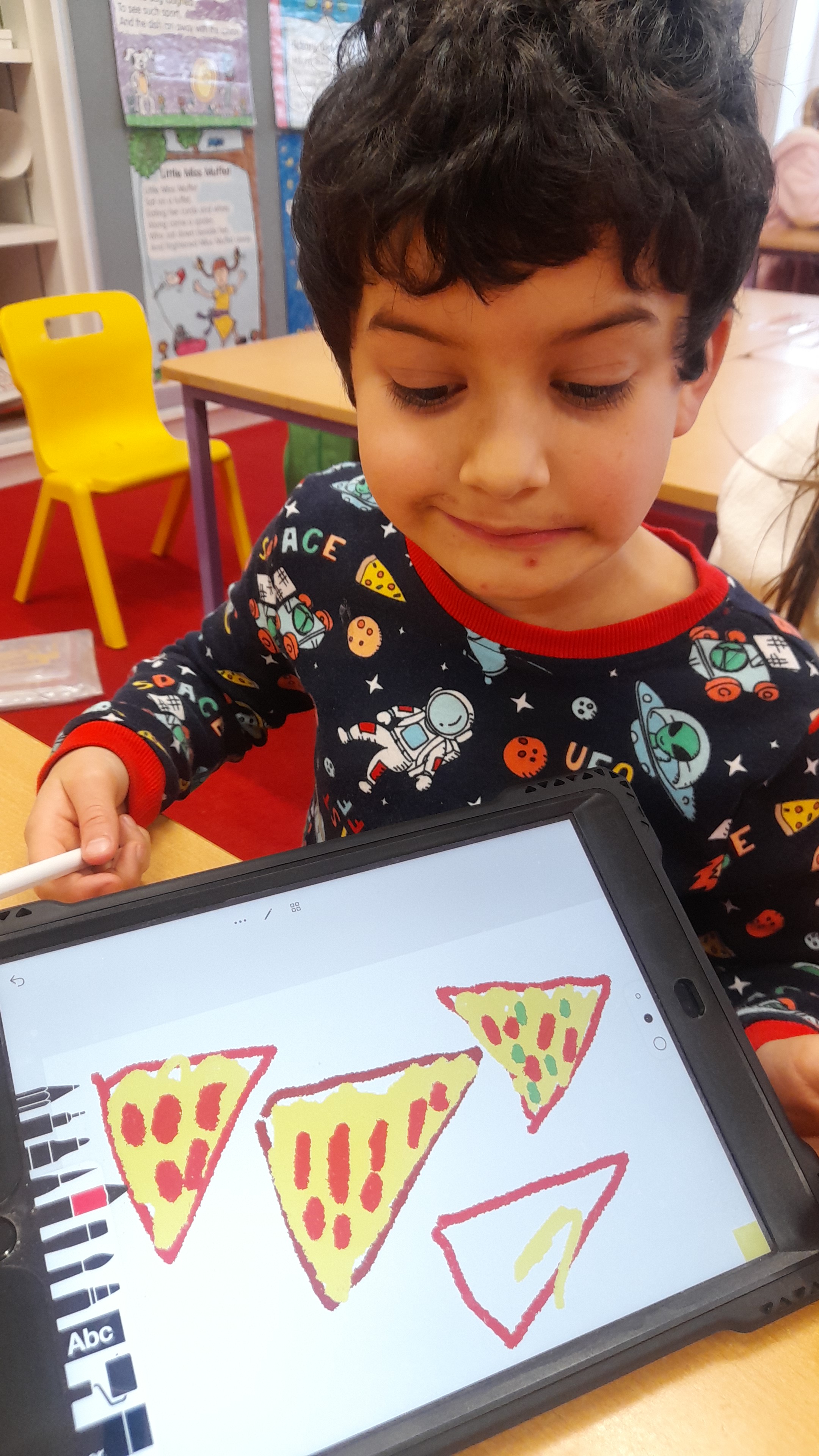 Junior Infants only went and did it again! For the second time this year we have won Class of the Month! It was pjs at the ready for another fun-filled day. After a morning of hard work, which might have involved learning about melting chocolate in order to make hot chocolate (thank you Teresa for the tasty samples) the children were ready to kick back a little and enjoy the fruits of their labour. The iPads had been fully charged, just like the infants, and so we decided that instead of our usual handwriting, we would use the Sketchpad app to draw pizza! The children had a lot of fun experimenting with tools and colours to create the coolest drawings. They were ready for pizza by that stage and accompanied their lunch with a movie.