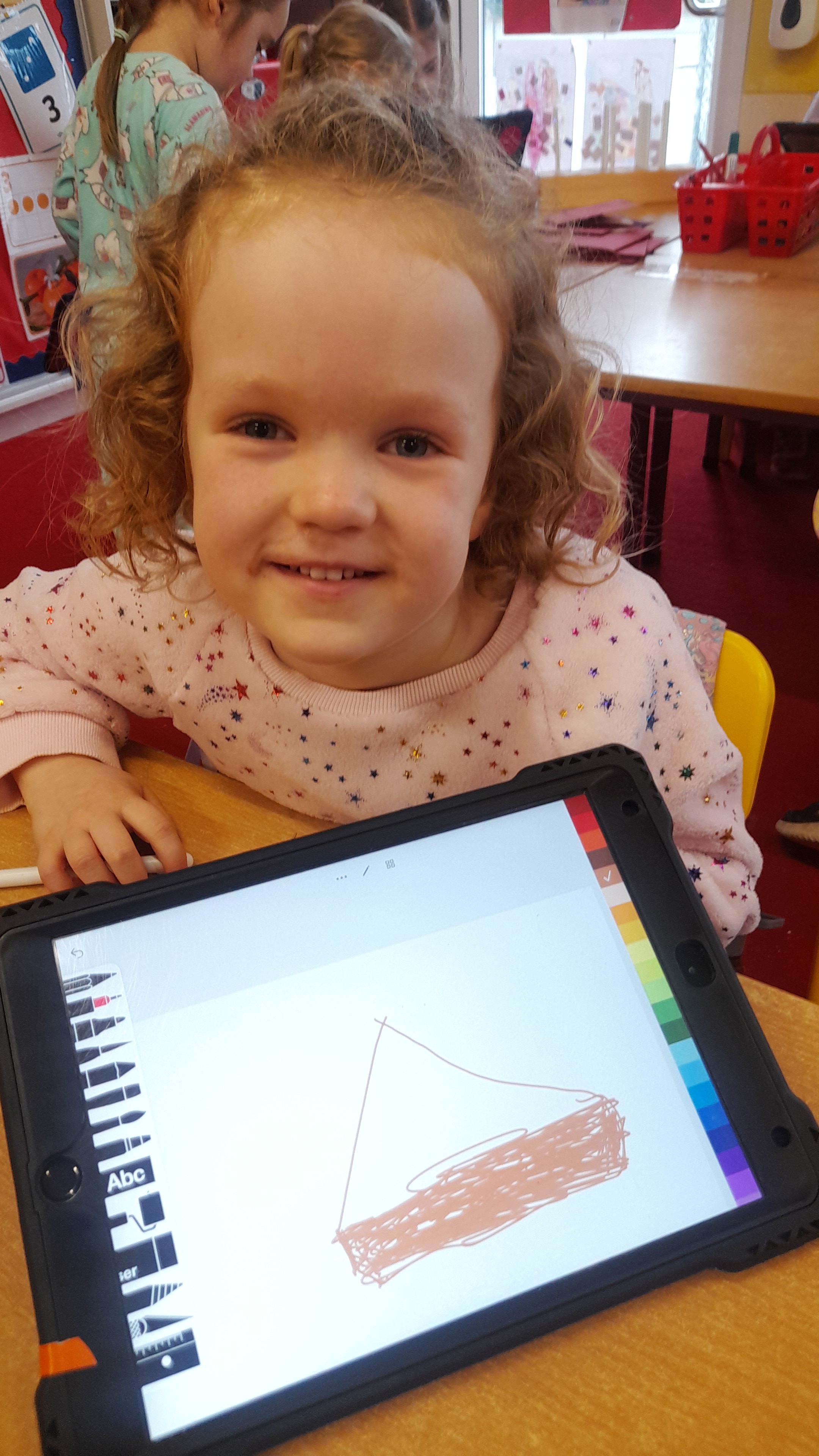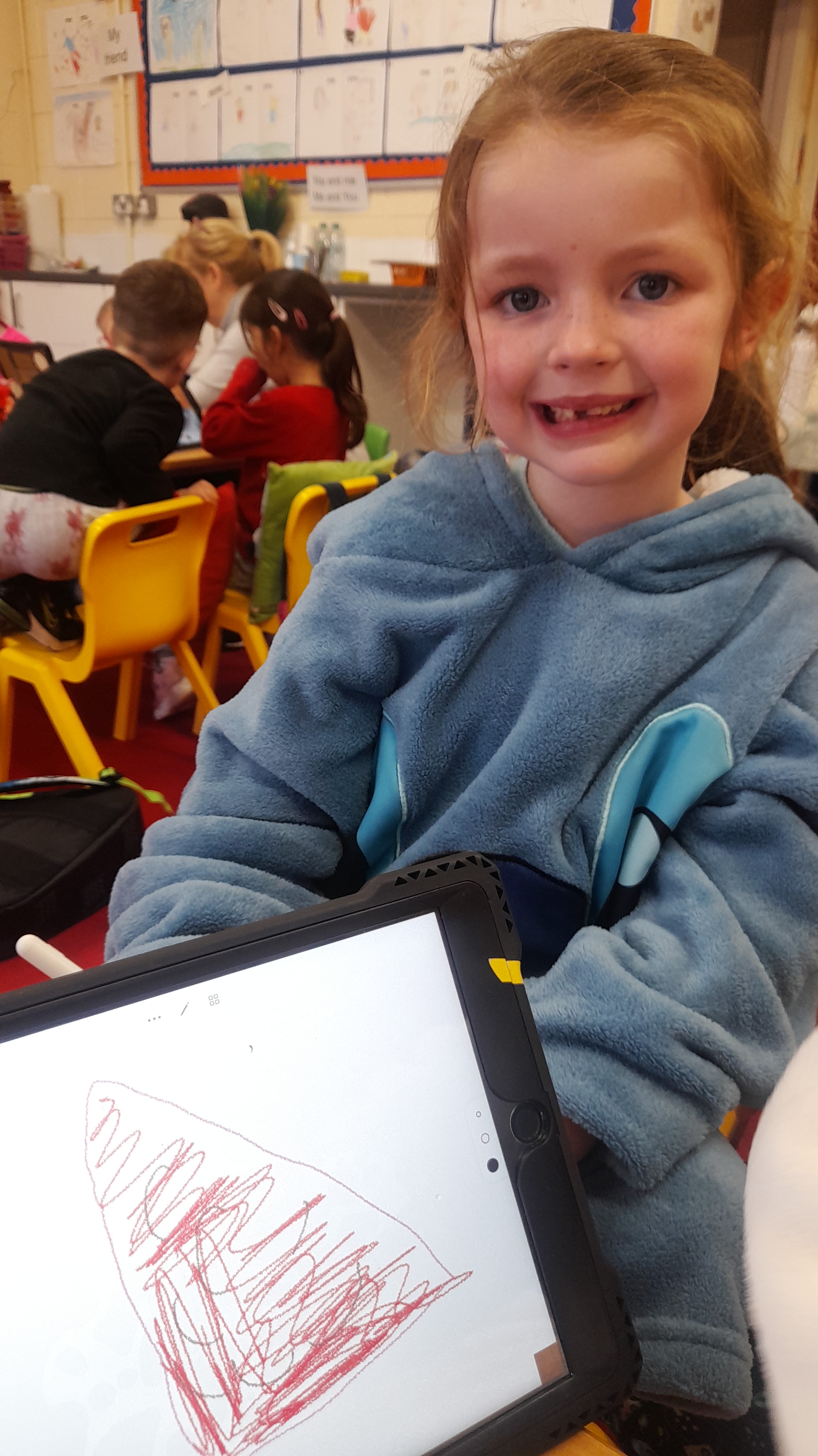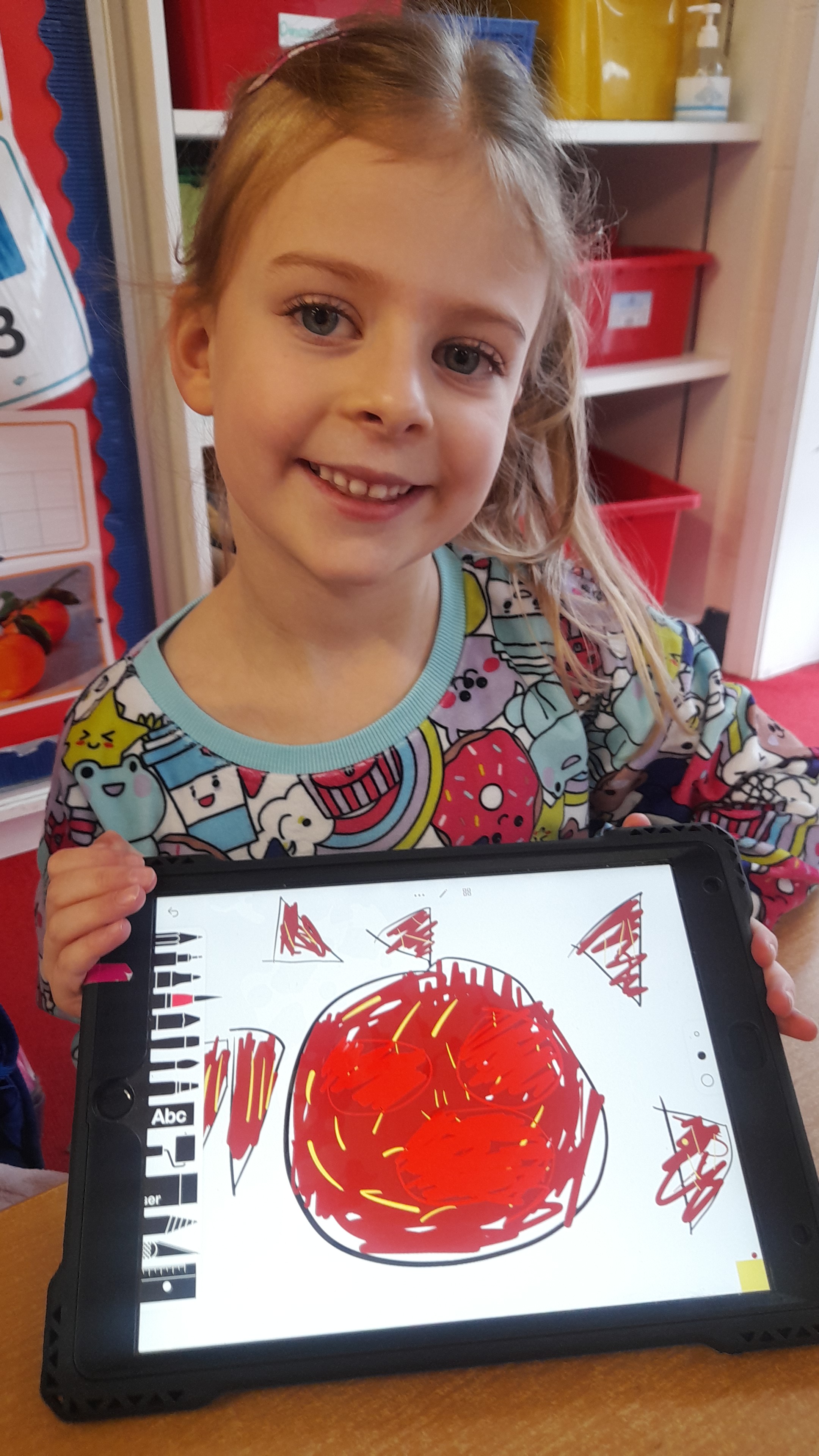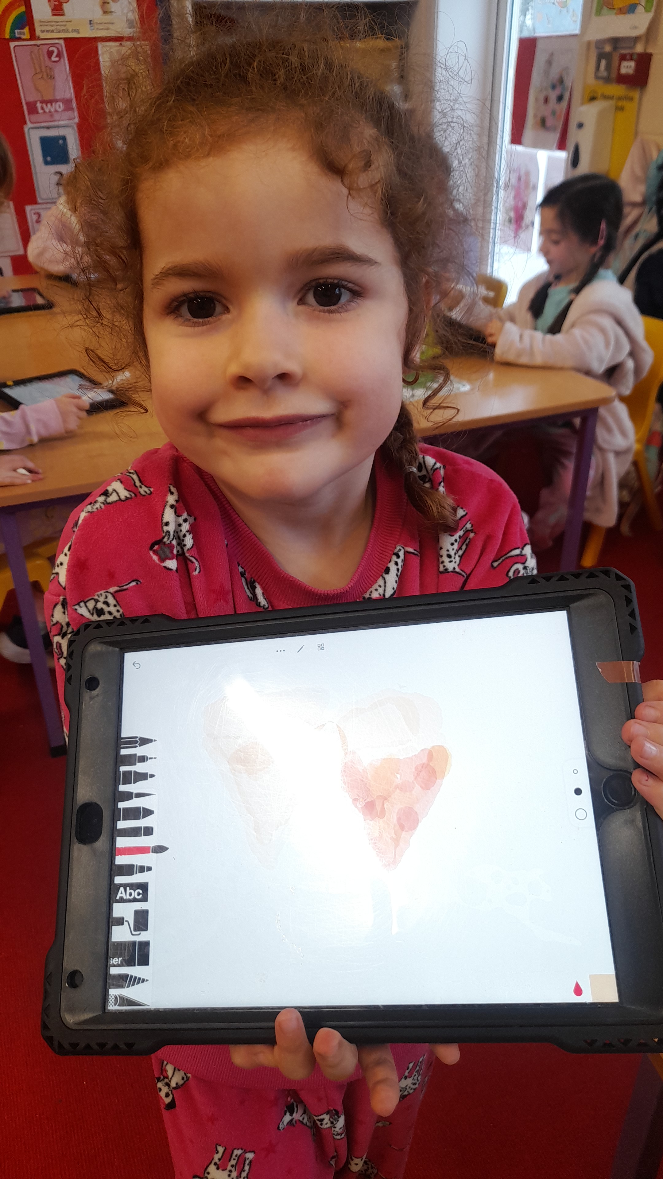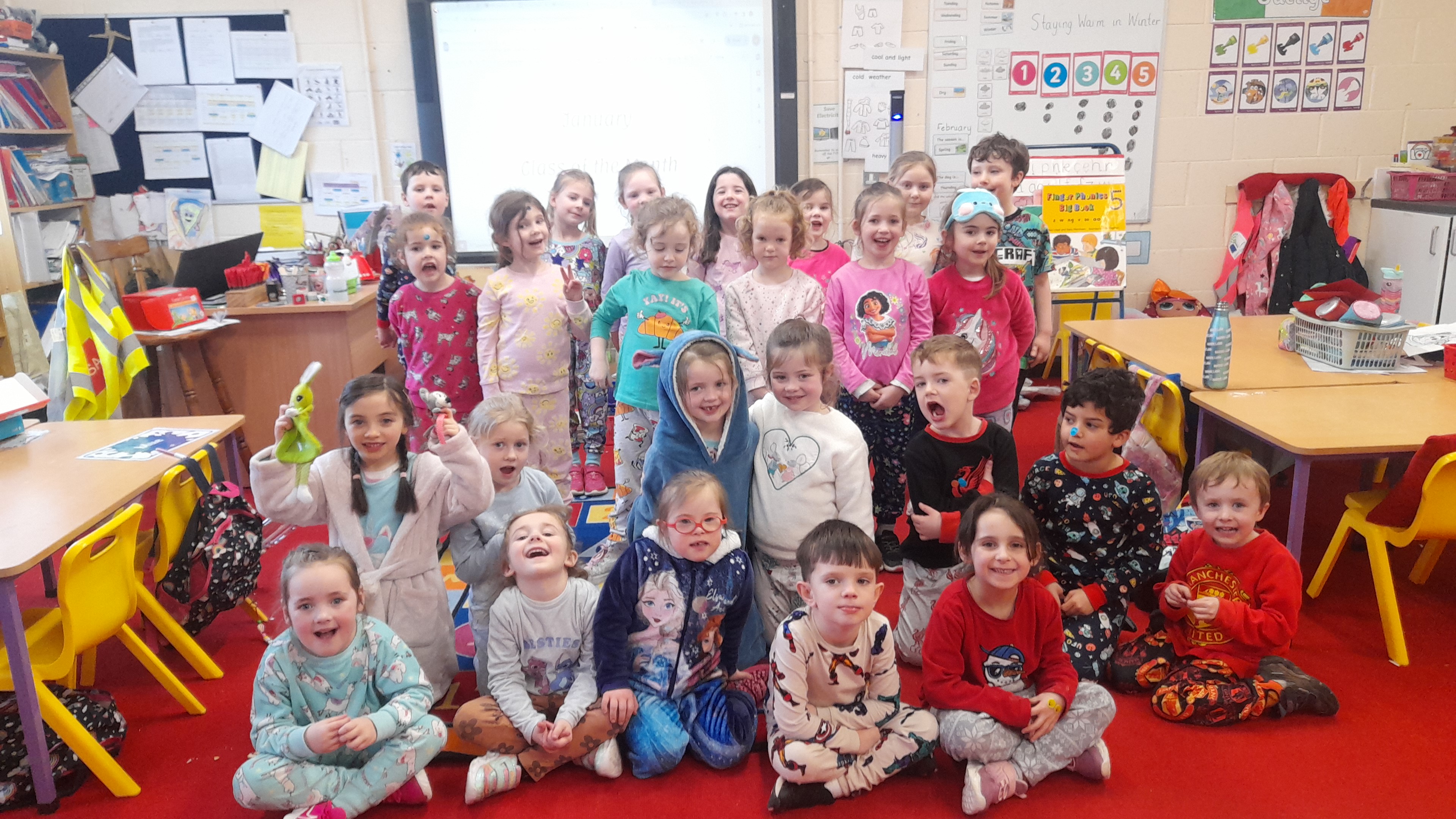 Junior Infants only went and did it again! For the second time this year we have won Class of the Month! It was pjs at the ready for another fun-filled day. After a morning of hard work, which might have involved learning about melting chocolate in order to make hot chocolate (thank you Teresa for the tasty samples) the children were ready to kick back a little and enjoy the fruits of their labour. The iPads had been fully charged, just like the infants, and so we decided that instead of our usual handwriting, we would use the Sketchpad app to draw pizza! The children had a lot of fun experimenting with tools and colours to create the coolest drawings. They were ready for pizza by that stage and accompanied their lunch with a movie.