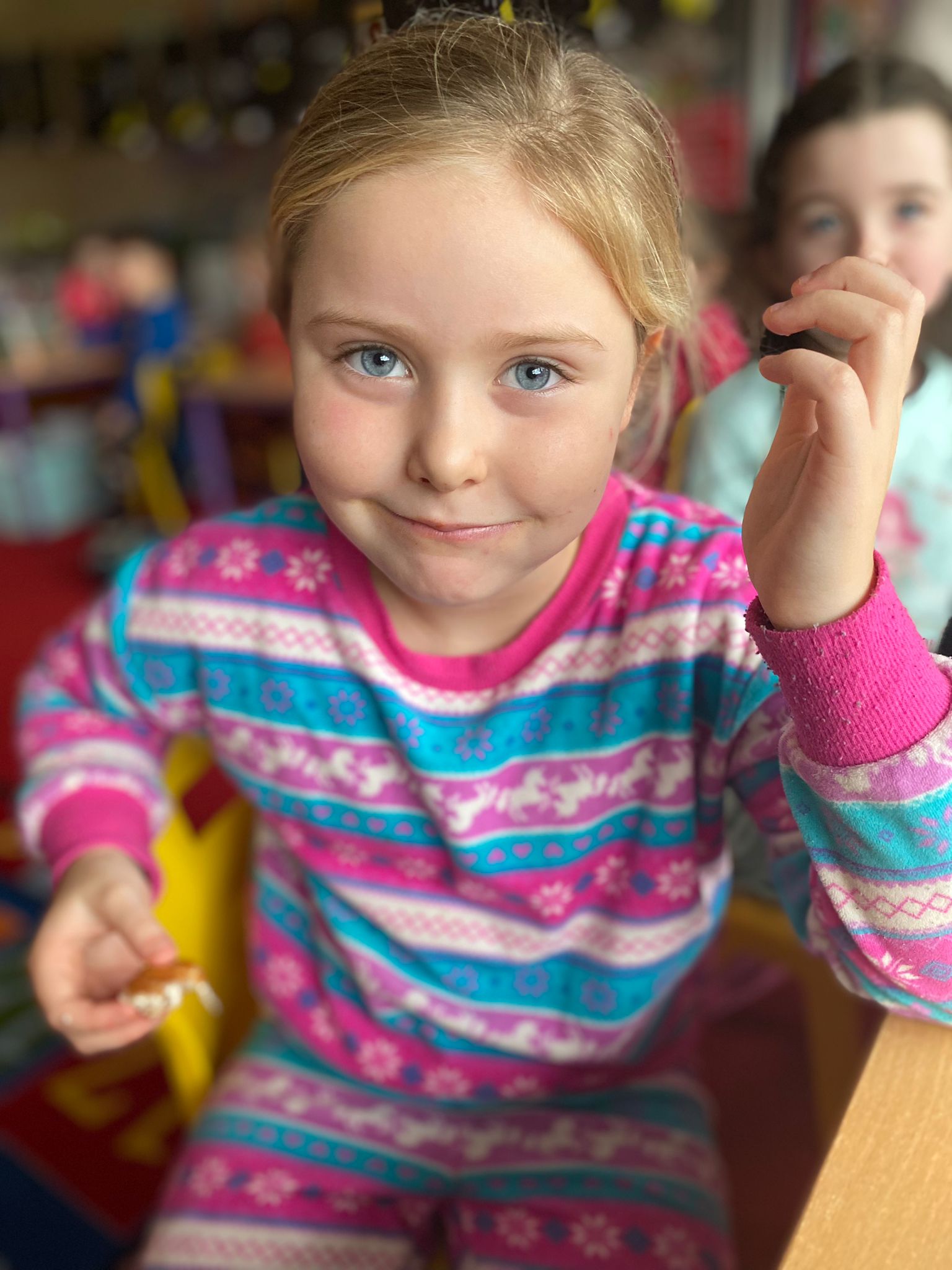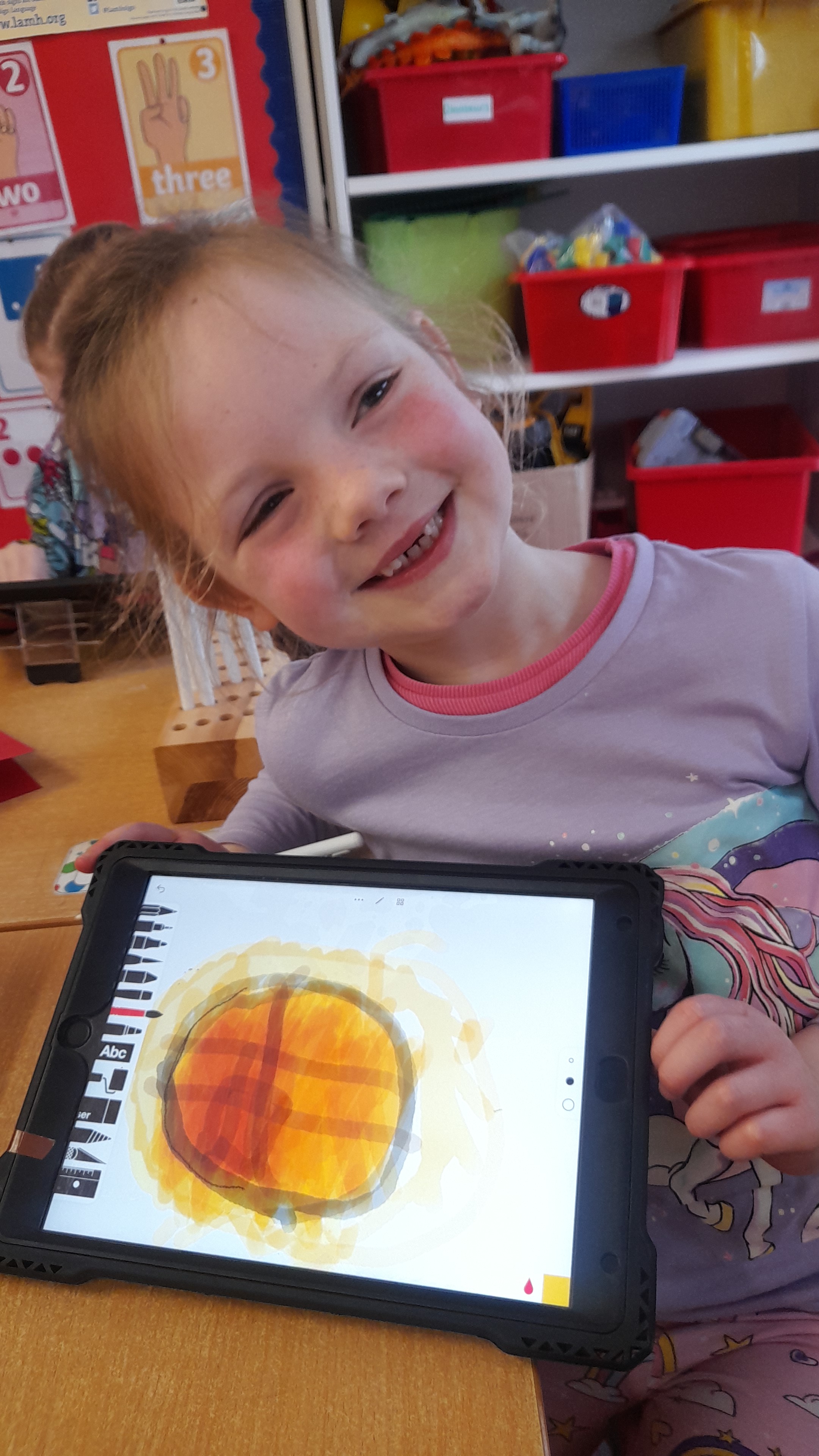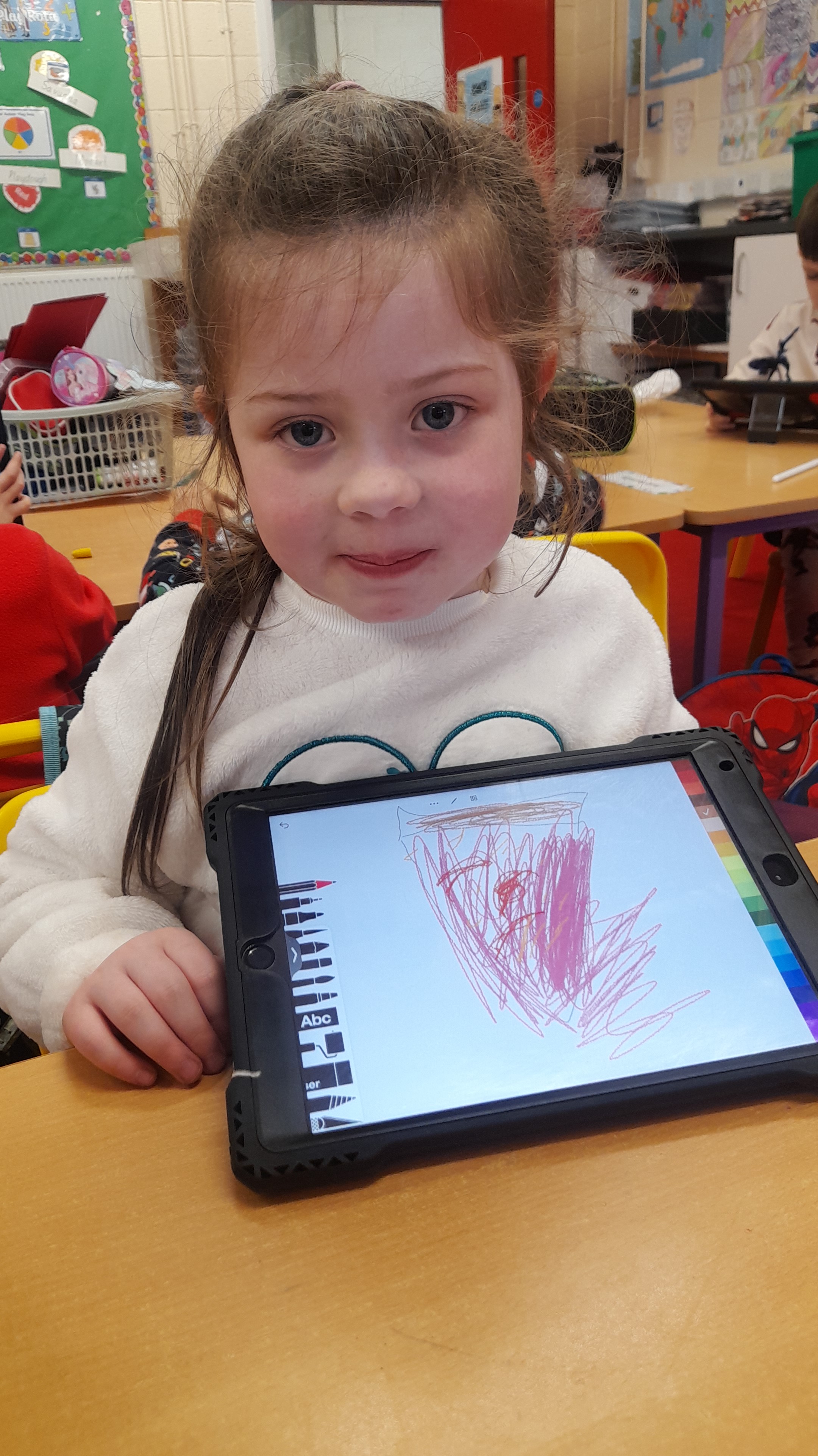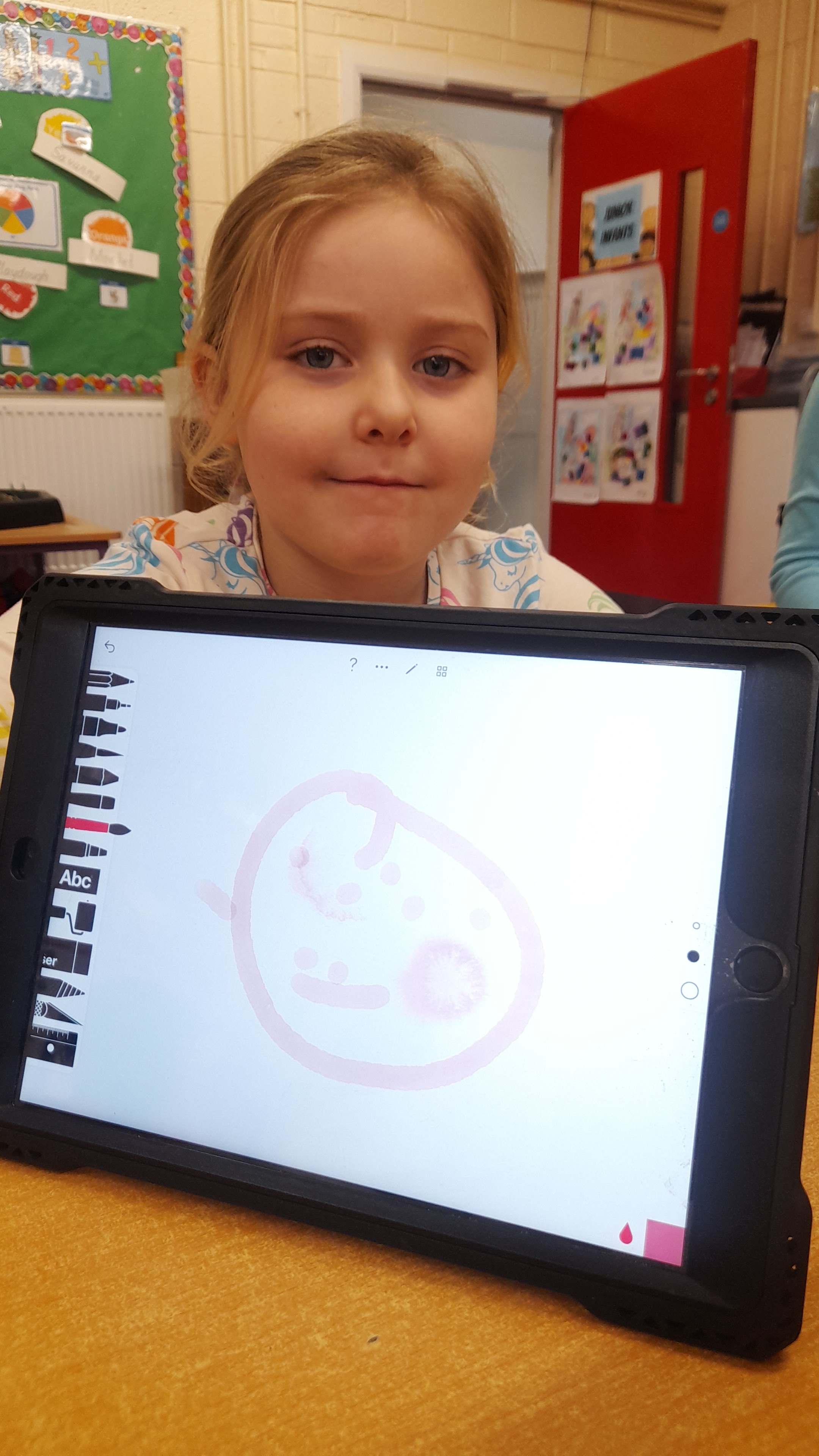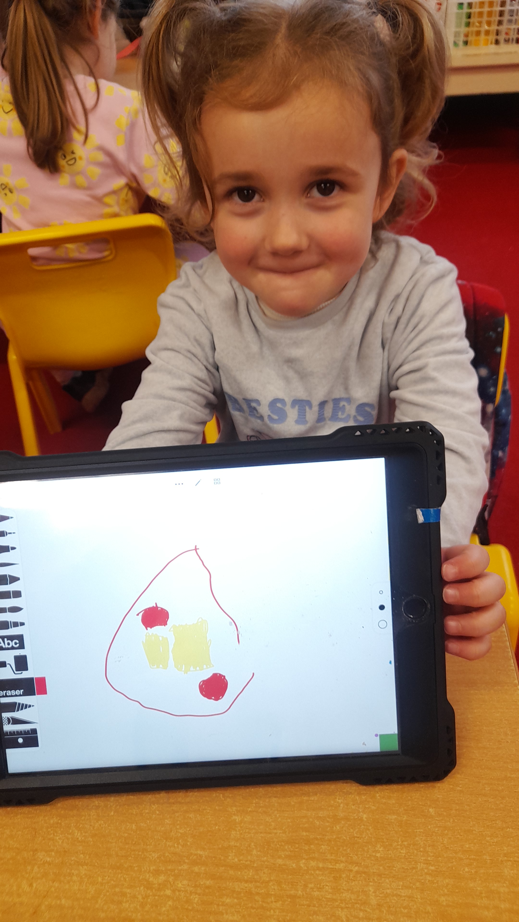 Junior Infants only went and did it again! For the second time this year we have won Class of the Month! It was pjs at the ready for another fun-filled day. After a morning of hard work, which might have involved learning about melting chocolate in order to make hot chocolate (thank you Teresa for the tasty samples) the children were ready to kick back a little and enjoy the fruits of their labour. The iPads had been fully charged, just like the infants, and so we decided that instead of our usual handwriting, we would use the Sketchpad app to draw pizza! The children had a lot of fun experimenting with tools and colours to create the coolest drawings. They were ready for pizza by that stage and accompanied their lunch with a movie.