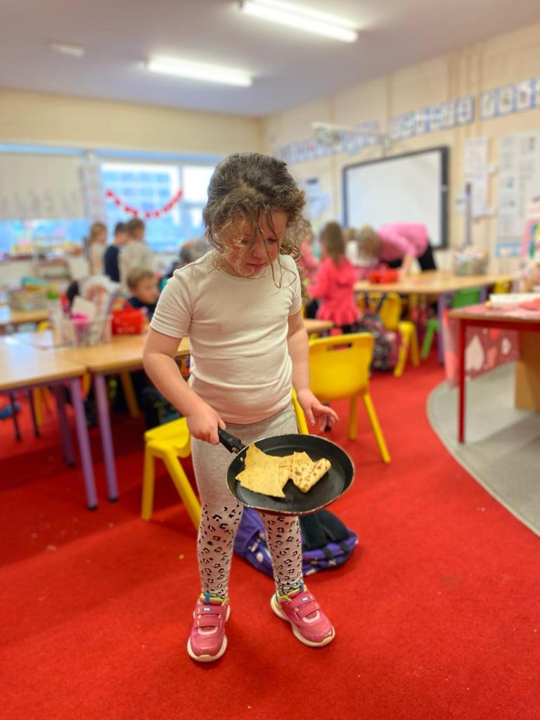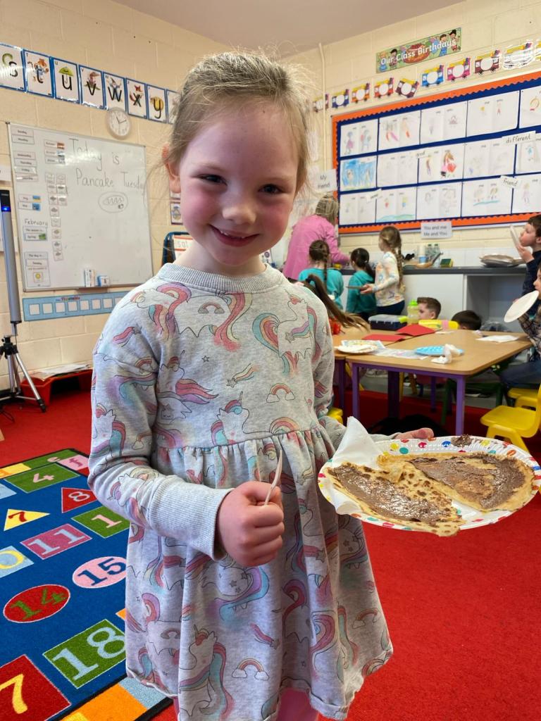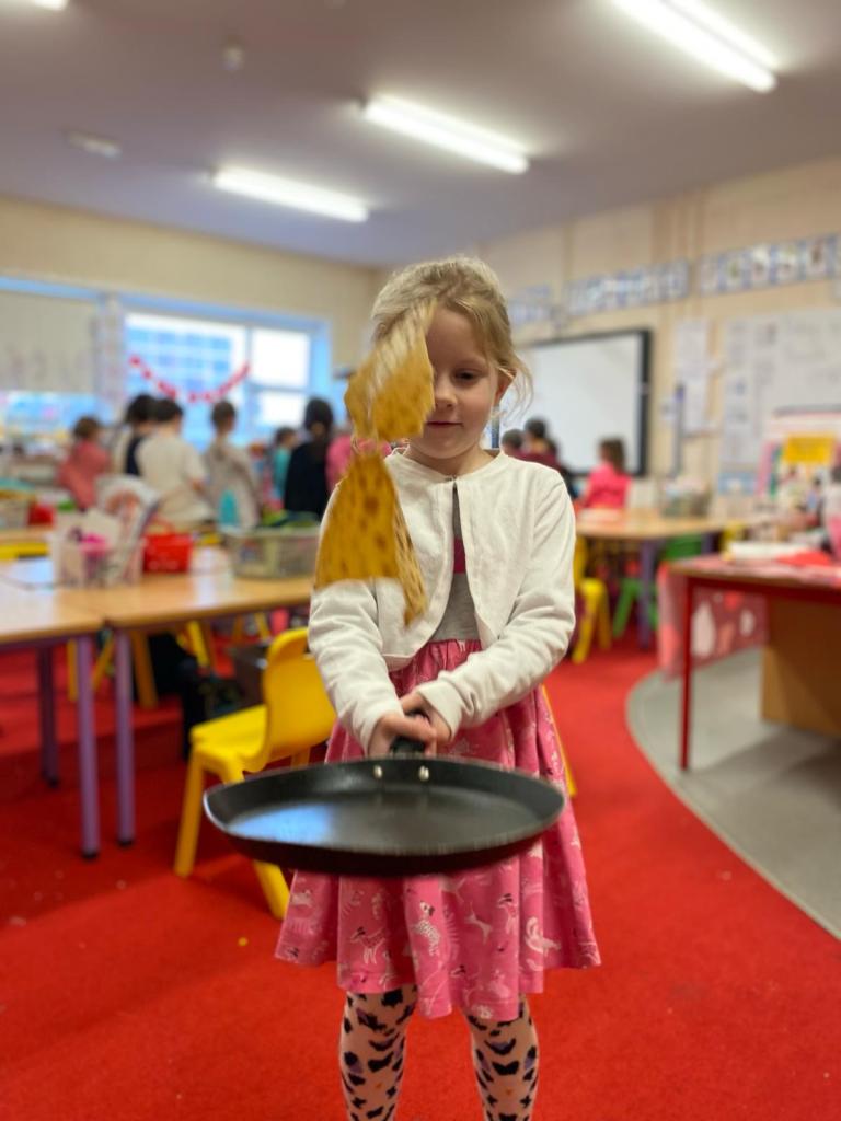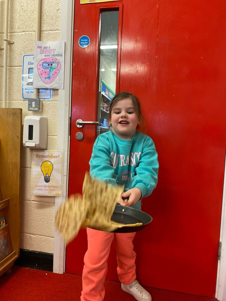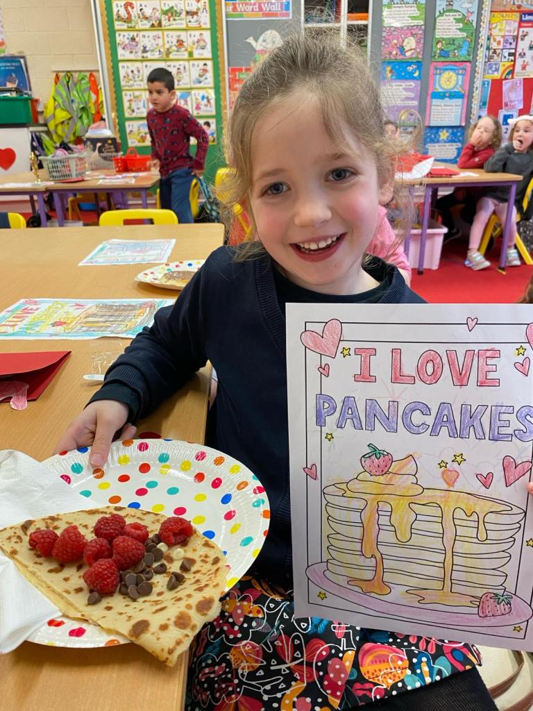 Junior Infants had a great day on Pancake Tuesday sampling as many pancakes, loaded with toppings, as they could! They then turned their hand to flipping pancakes. There were a few casualties, but, worth it for the action shots!