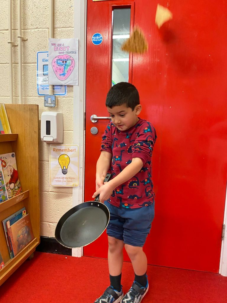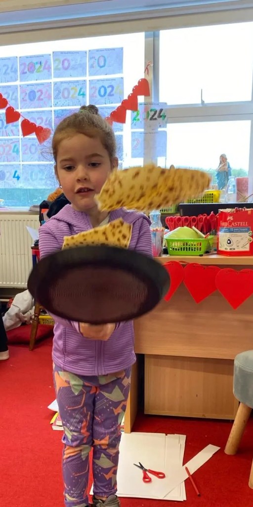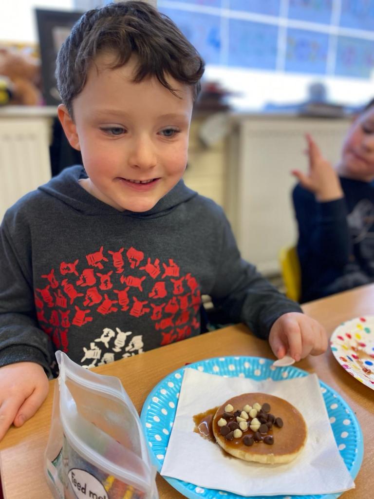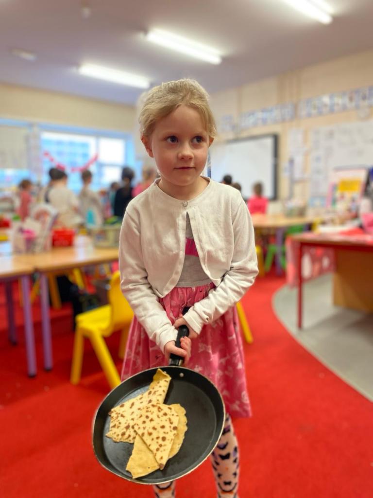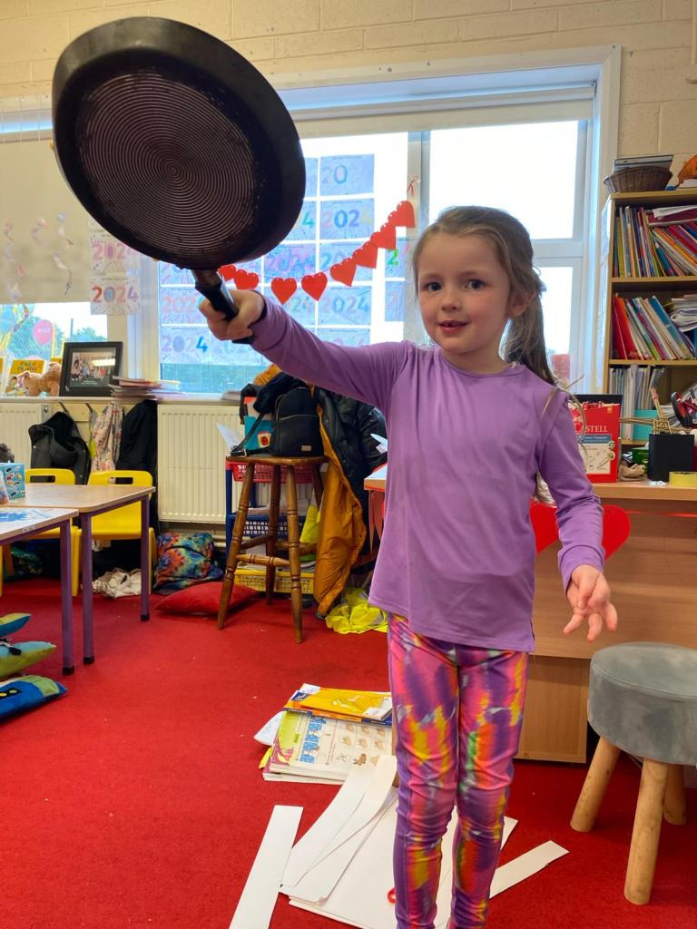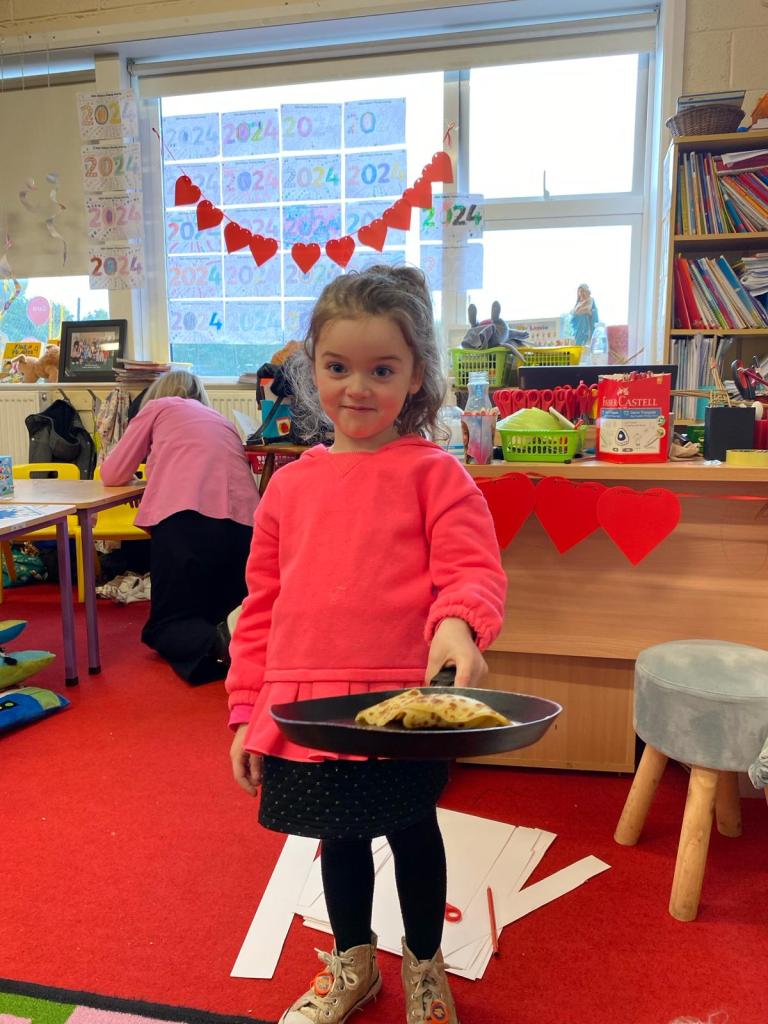 Junior Infants had a great day on Pancake Tuesday sampling as many pancakes, loaded with toppings, as they could! They then turned their hand to flipping pancakes. There were a few casualties, but, worth it for the action shots!