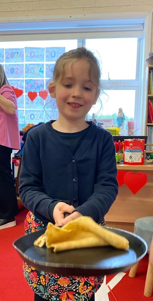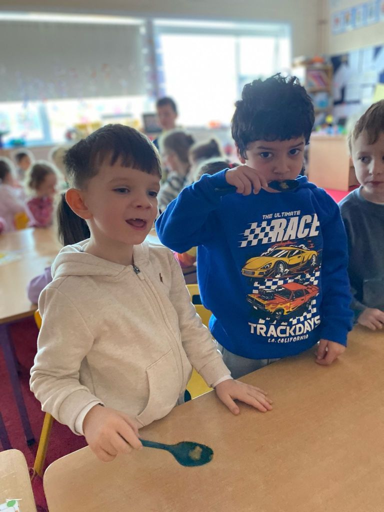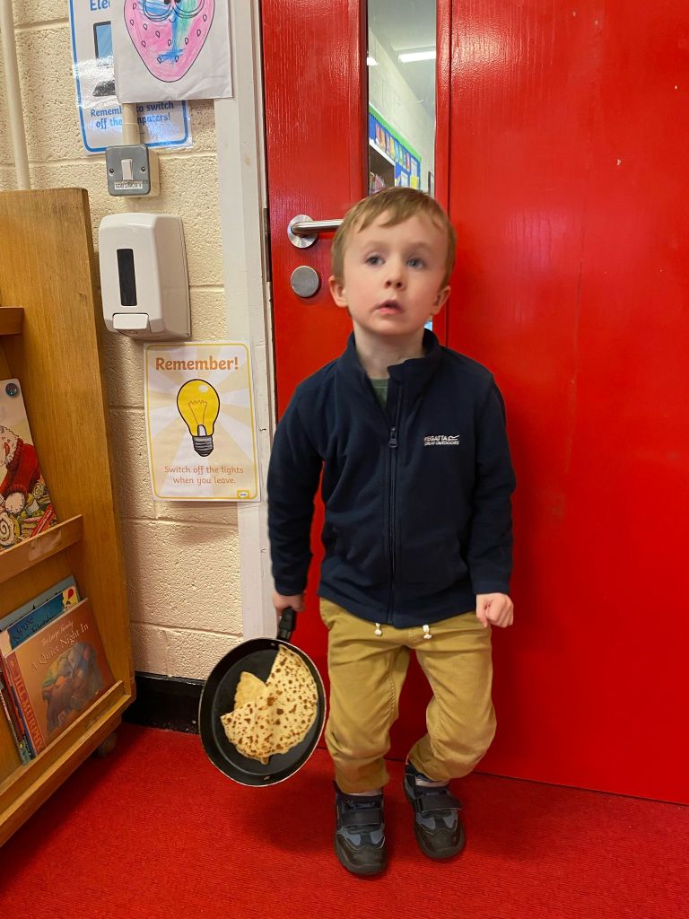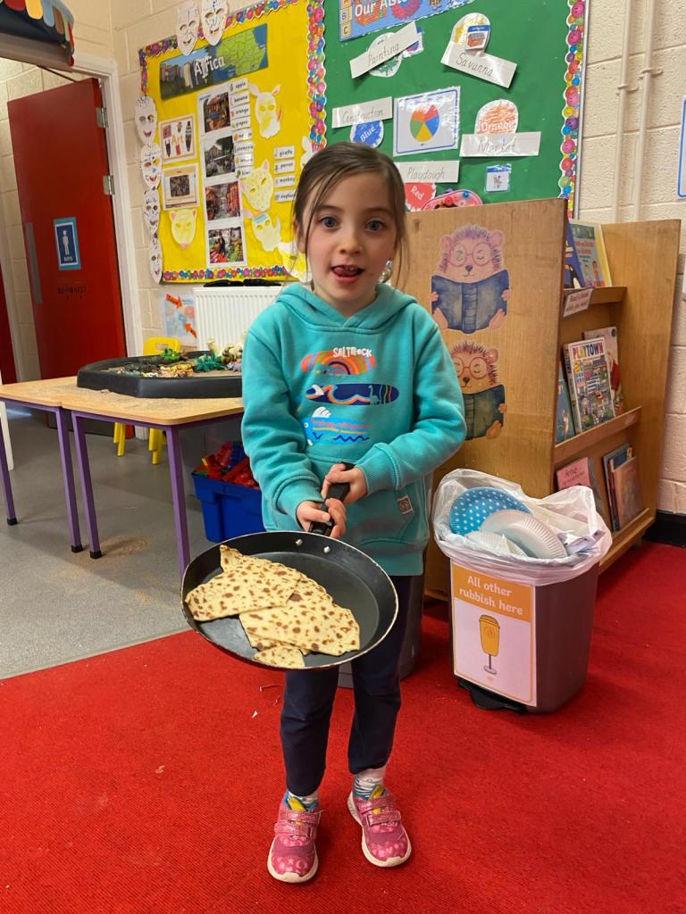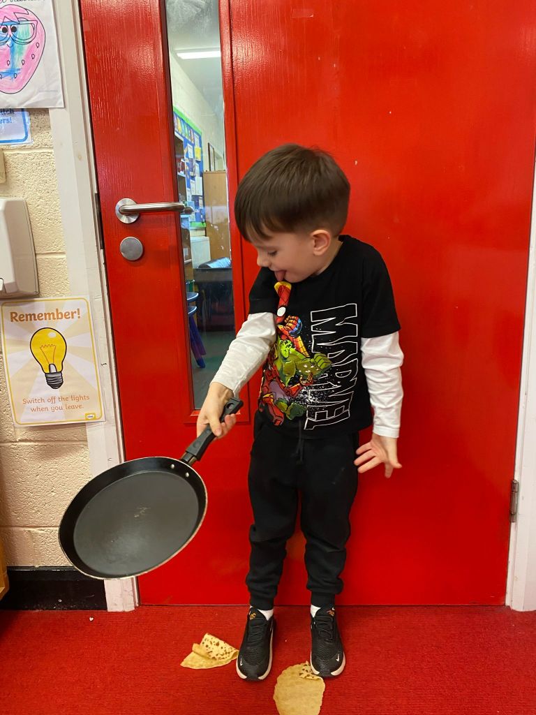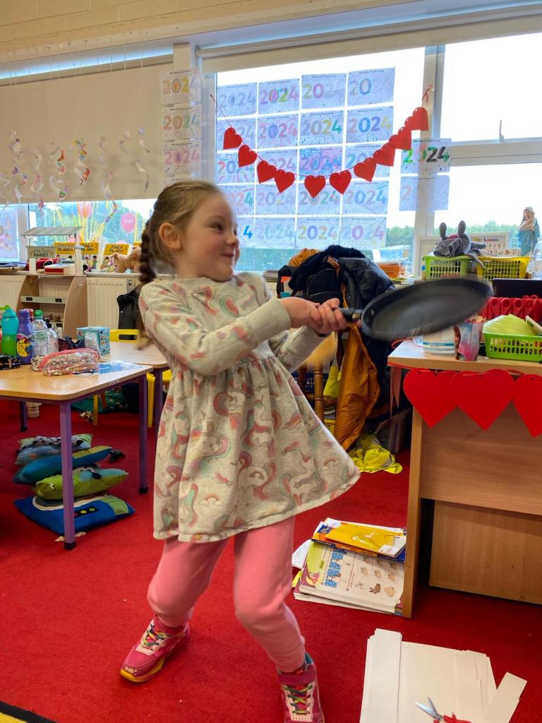 Junior Infants had a great day on Pancake Tuesday sampling as many pancakes, loaded with toppings, as they could! They then turned their hand to flipping pancakes. There were a few casualties, but, worth it for the action shots!